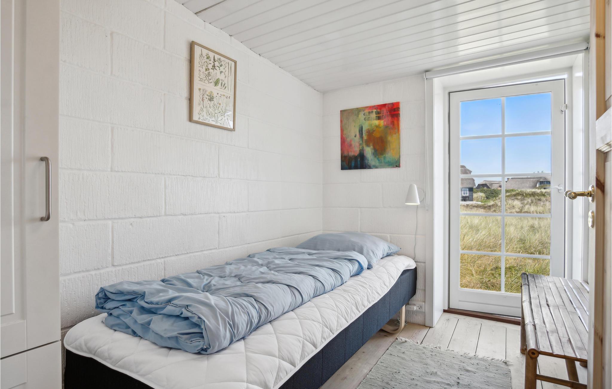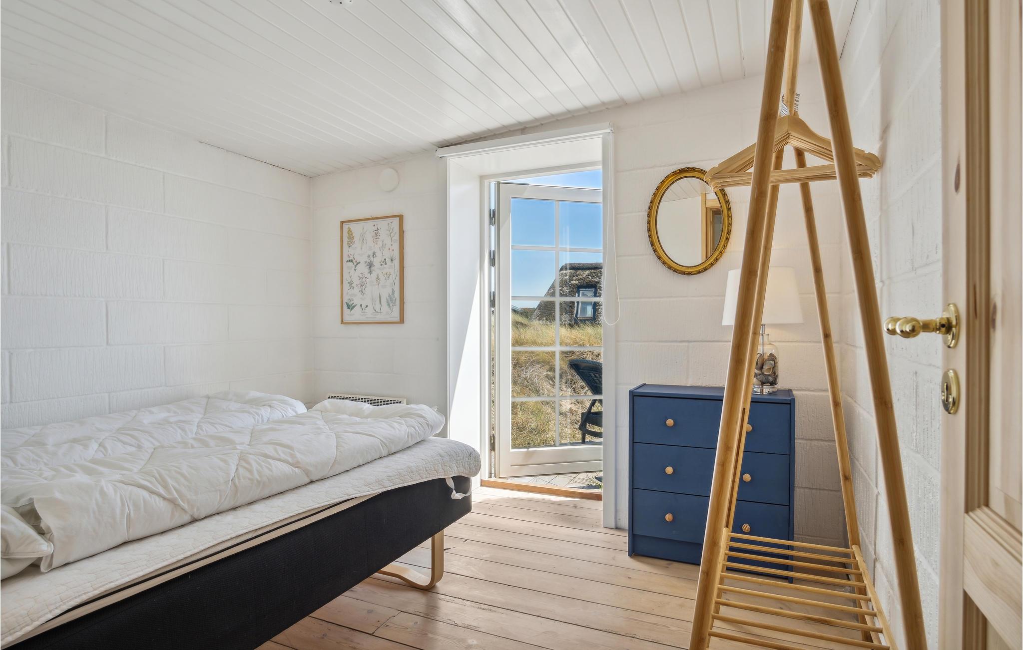 Fra køkkenet og flere af værelserne er der adgang til grunden og terrassen, hvor I kan nyde solen og et spil backgammon i det fri. De omkringliggende klitter giver både læ og privatliv. Hver morgen kan I åbne et vindue eller terrassedøren og nyde den friske havluft, der giver ny energi og inspiration.