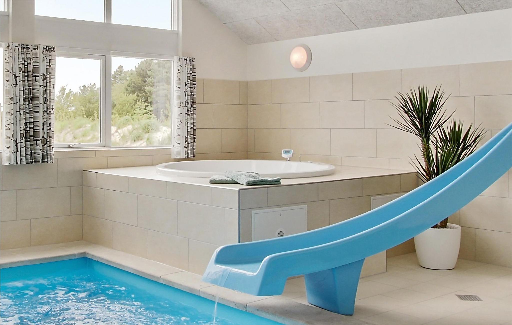 Glæd jer til en skøn ferie ved havet i dette rummelige luksusferiehus med indendørs pool, spa og sauna.