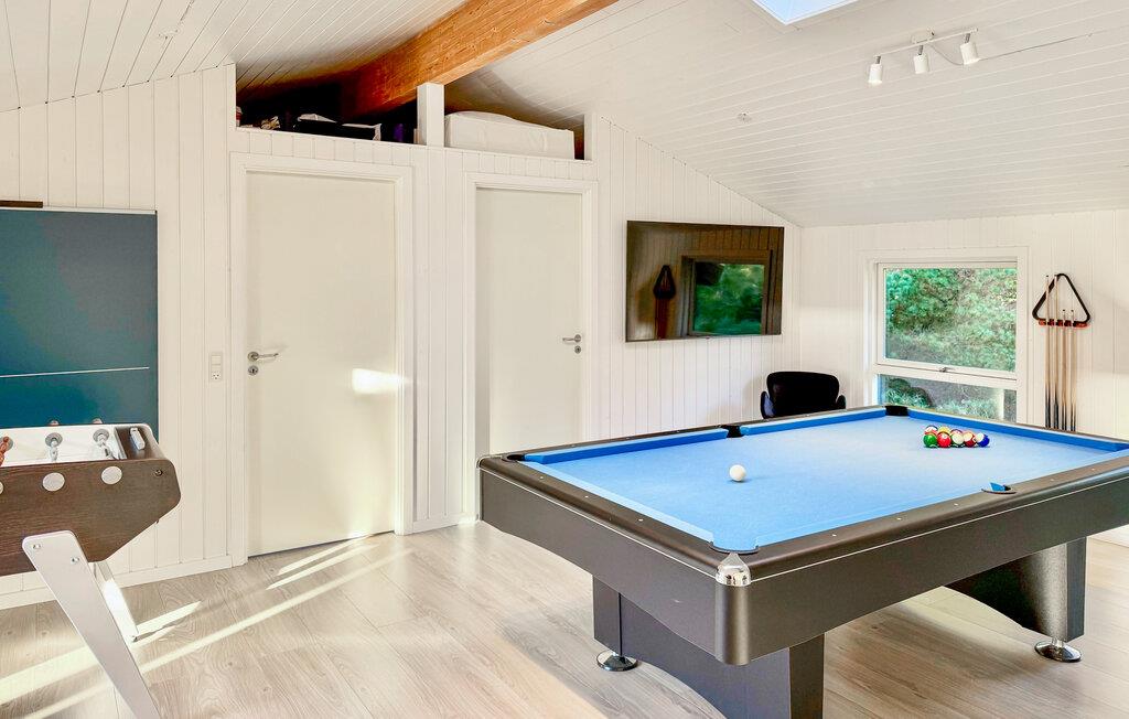 Hvis I er på udkig efter en base for årets bedste uger med den større familie, er dette lækre hus ved Blåvand det helt rette valg. Her får I nemlig, udover beliggenheden og de mange kvadratmeter, en masse fine faciliteter, så ingen kommer til at kede sig. Lad familiens kokke kræse om livretterne i det moderne køkken, mens andre slapper af i sofaen eller duellerer ved pool- og bordfodboldbordet. Efter aftensmaden kan I gøre det lidt ekstra godt for jer selv og nyde lidt god wellness i spabadet eller saunaen, mens I lægger planer for de kommende dage.
