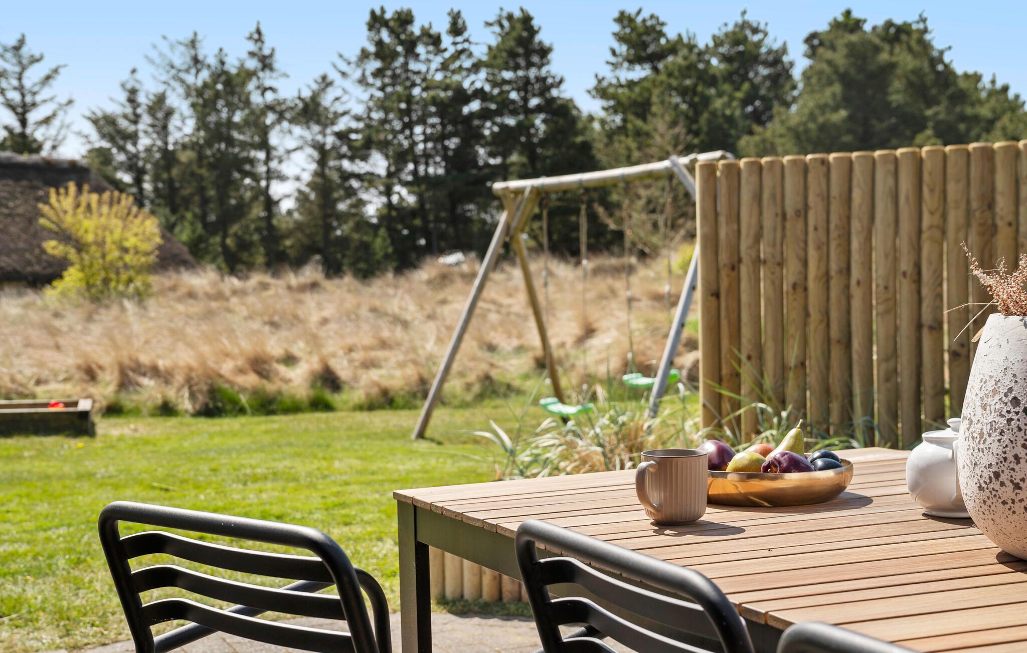På de varme dage kan I trække udenfor og nyde solen fra morgen til aften. For børnene er der en stor have, gynge, sandkasse og masser af legetøj at boltre sig med, og for de voksne er der gode liggestole, hvor I kan nyde solen med en god bog og en kølig drink.