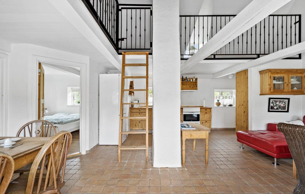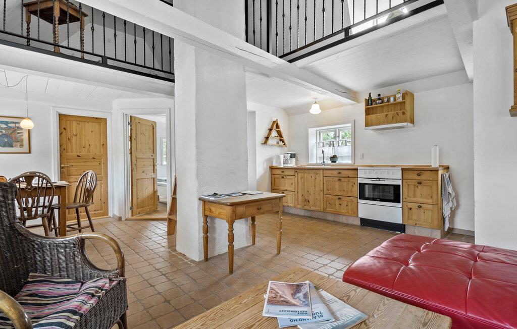 Velkommen til denne flotte trelængede gård, hvor alt tegner til en fantastisk ferie. Her kan I flytte ind i en del af gården og nyde jeres helt egne rammeri den velindrettede bolig. Stuen har en varm atmosfære med bjælker, der fortæller om bygningens historie, pæne træelementer og veludførte moderniseringer som den åbne førstesal.