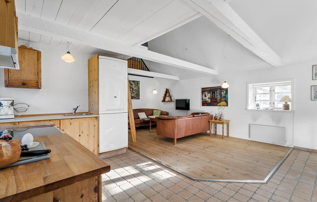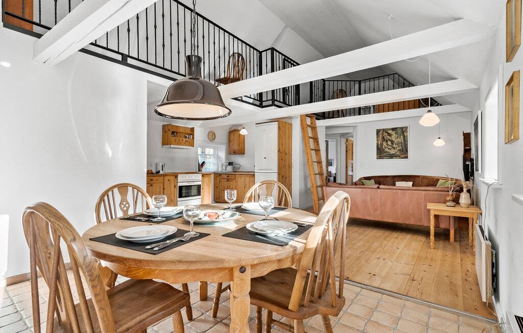 Dette hyggelige rækkehus har en åben førstesal og en lys, indbydende atmosfære. Den smagfulde indretning giver hele familien et midlertidigt hjem, hvor I kan lave mad, spise, lege eller bare slappe af sammen. Den private terrasse indbyder til afslapning, mens den rummelige fælleshave giver mulighed for at møde gæster fra de omkringliggende feriehuse. Den store have er et paradis for børn, der kan lege og tumle frit.