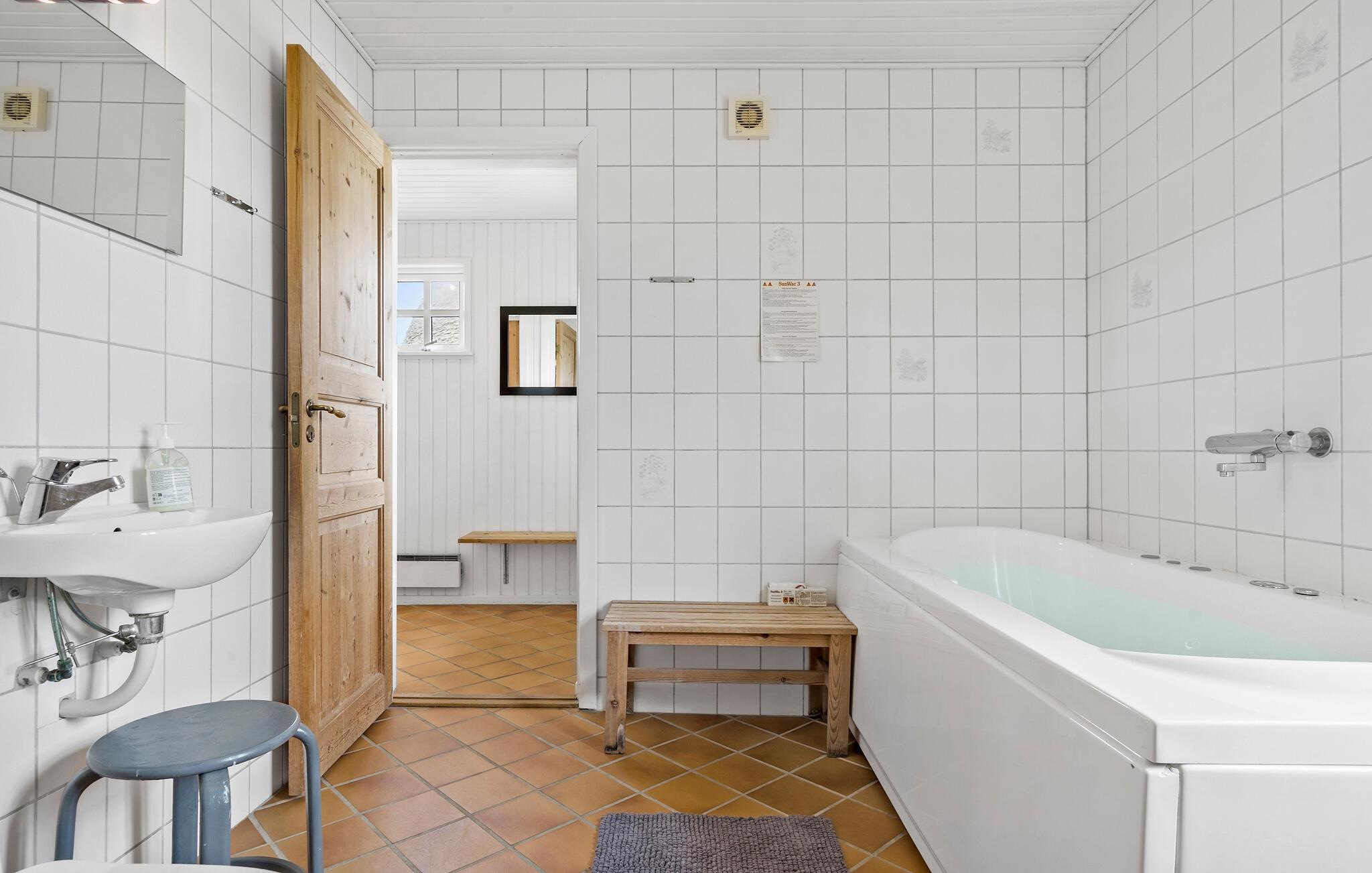 Begynd dagene med en beroligende stund i spabadet og saunaen. Rundt om huset er der en stor grund med masser af plads til leg, og børnene kan have det sjovt med at løbe og lege.