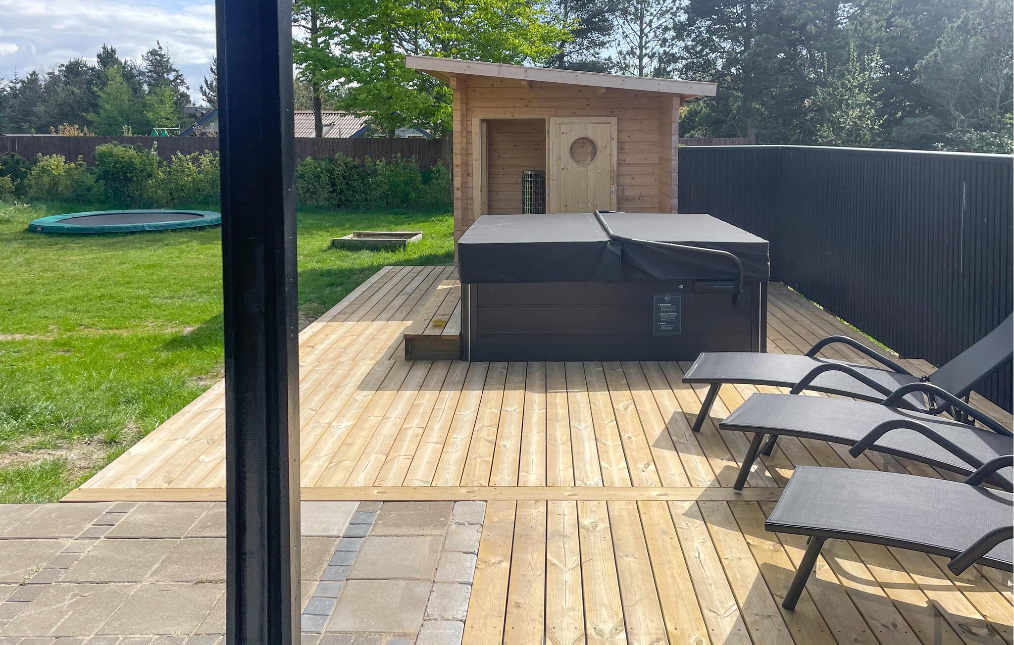 Start jeres dag med et afslappende bad i whirlpoolen, og lad jer derefter forkæle i saunaen. Den store have giver masser af plads til udendørs aktiviteter og er ideel til at nyde omgivelsernes ro. Her kan jeres børn boltre sig, mens I tilbringer uforglemmelige øjeblikke med jeres kære.