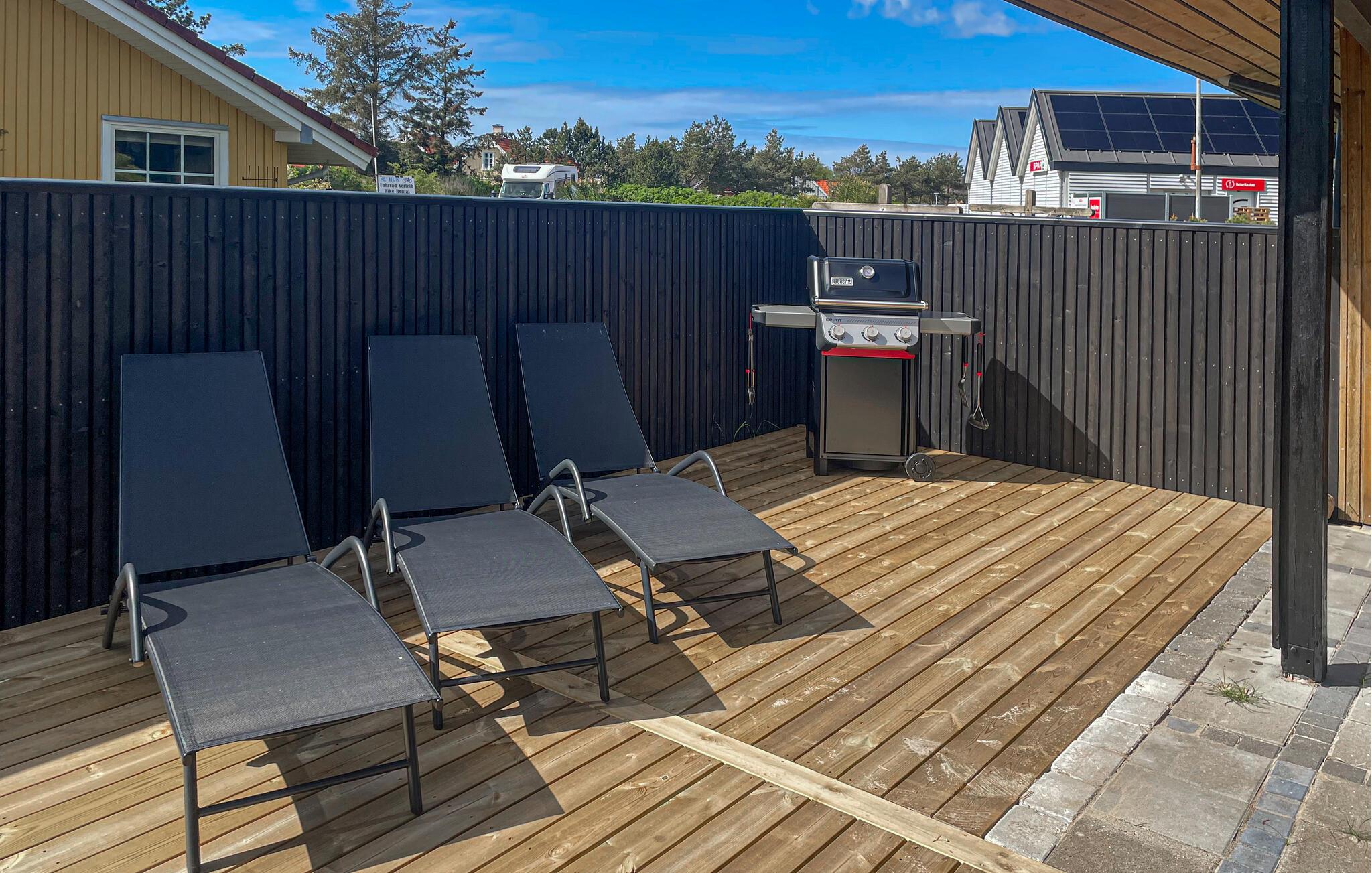 Nyd et afslappende ophold i dette charmerende feriehus, som er præget af sin maleriske beliggenhed i Blåvand. Den rummelige stue tilbyder komfortable siddepladser og en vidunderlig udsigt over den velplejede have. Det åbne køkken indbyder til fælles madlavningsaftener, og på terrassen kan I nyde jeres måltider i den friske luft, mens I mærker den friske vestkystbrise.