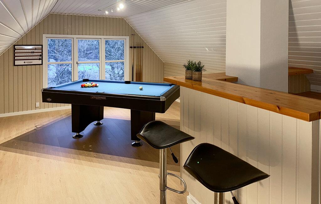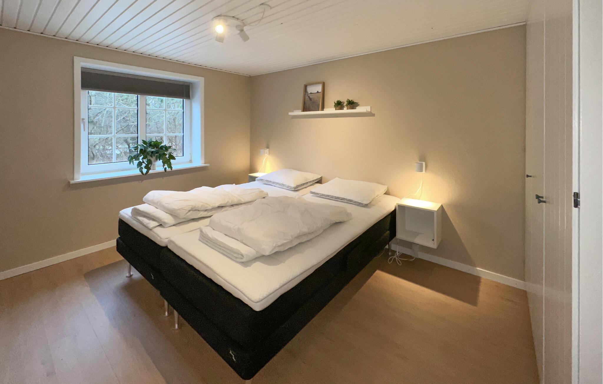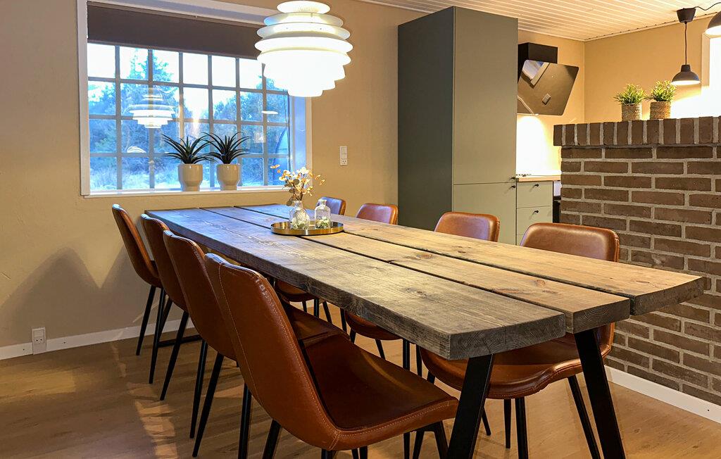Dette rummelige feriehus i hjertet af Blåvand giver jer den ideelle base til at kombinere afslapning med sjove aktiviteter for hele familien. Det omhyggeligt renoverede interiør giver jer en indbydende atmosfære, hvor I kan hygge jer med madlavning, måltider og spil med familien. Snup en sjov dyst ved poolbordet, sæt jer og fordøj dagens indtryk foran brændeovnen eller fordyb jer i en god feriebog.