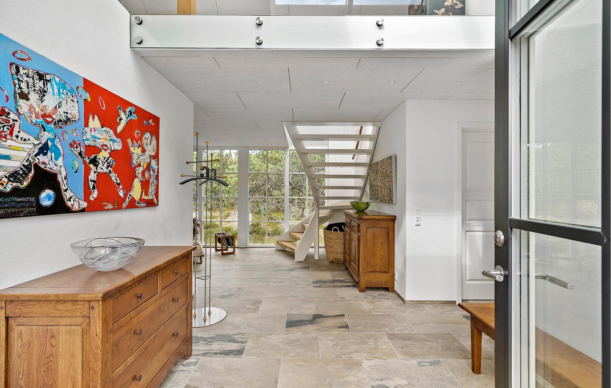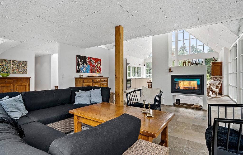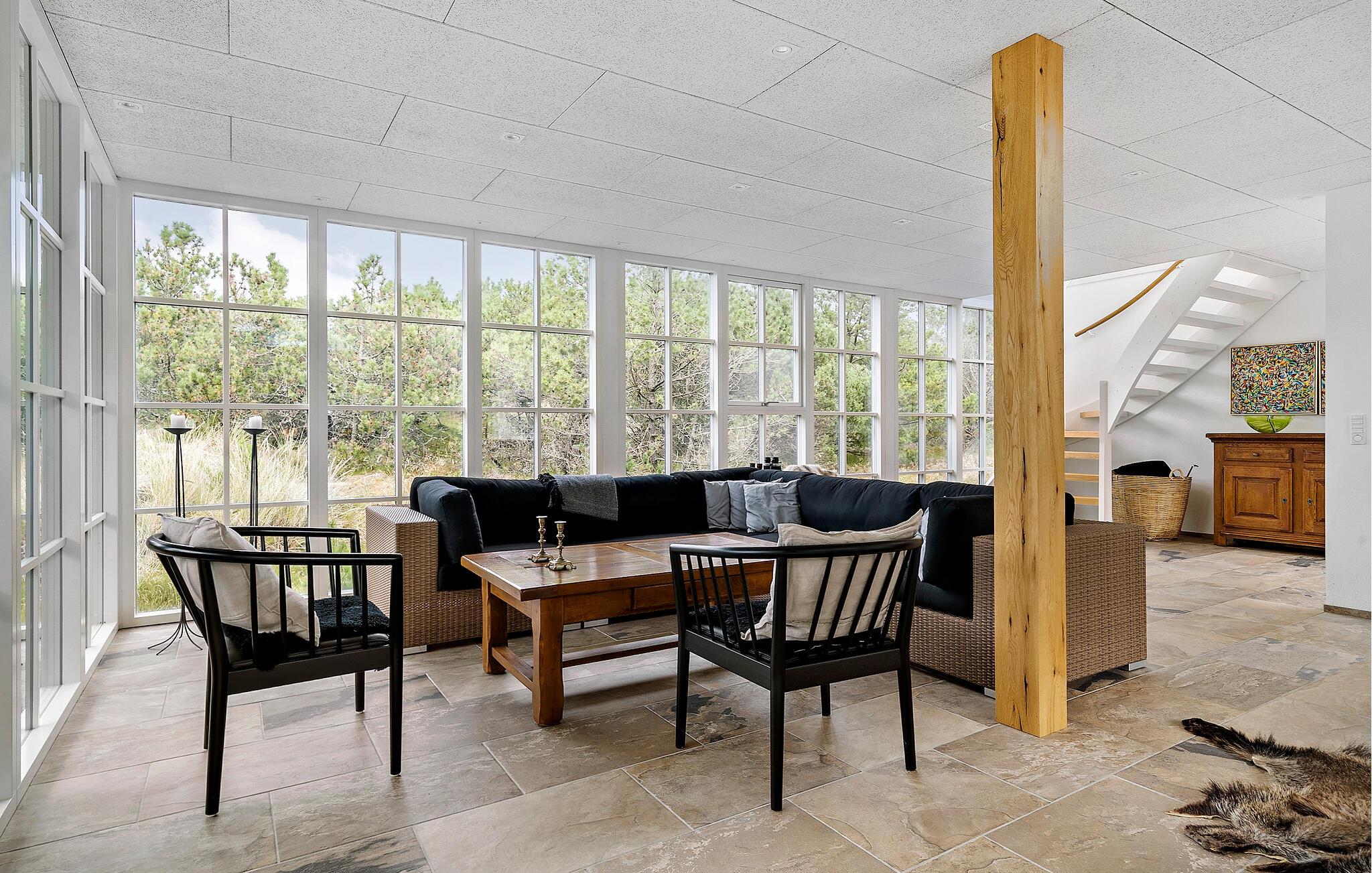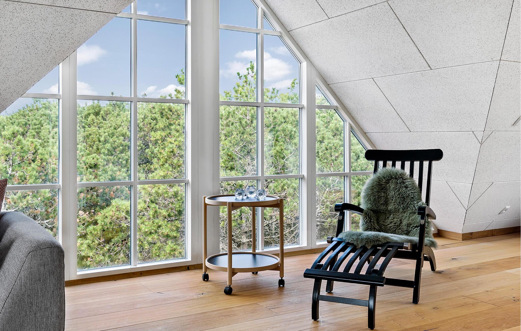 Dette indbydende hus er perfekt til en afslappende pause fra hverdagen. De store vinduer lukker masser af varmt naturligt lys ind og skaber en lys og luftig atmosfære, mens I nyder udsigten til haven. Tilbring en afslappende filmaften på sofaen, find sammen omkring det store spisebord til et spil kort eller lav mad sammen i det moderne køkken.