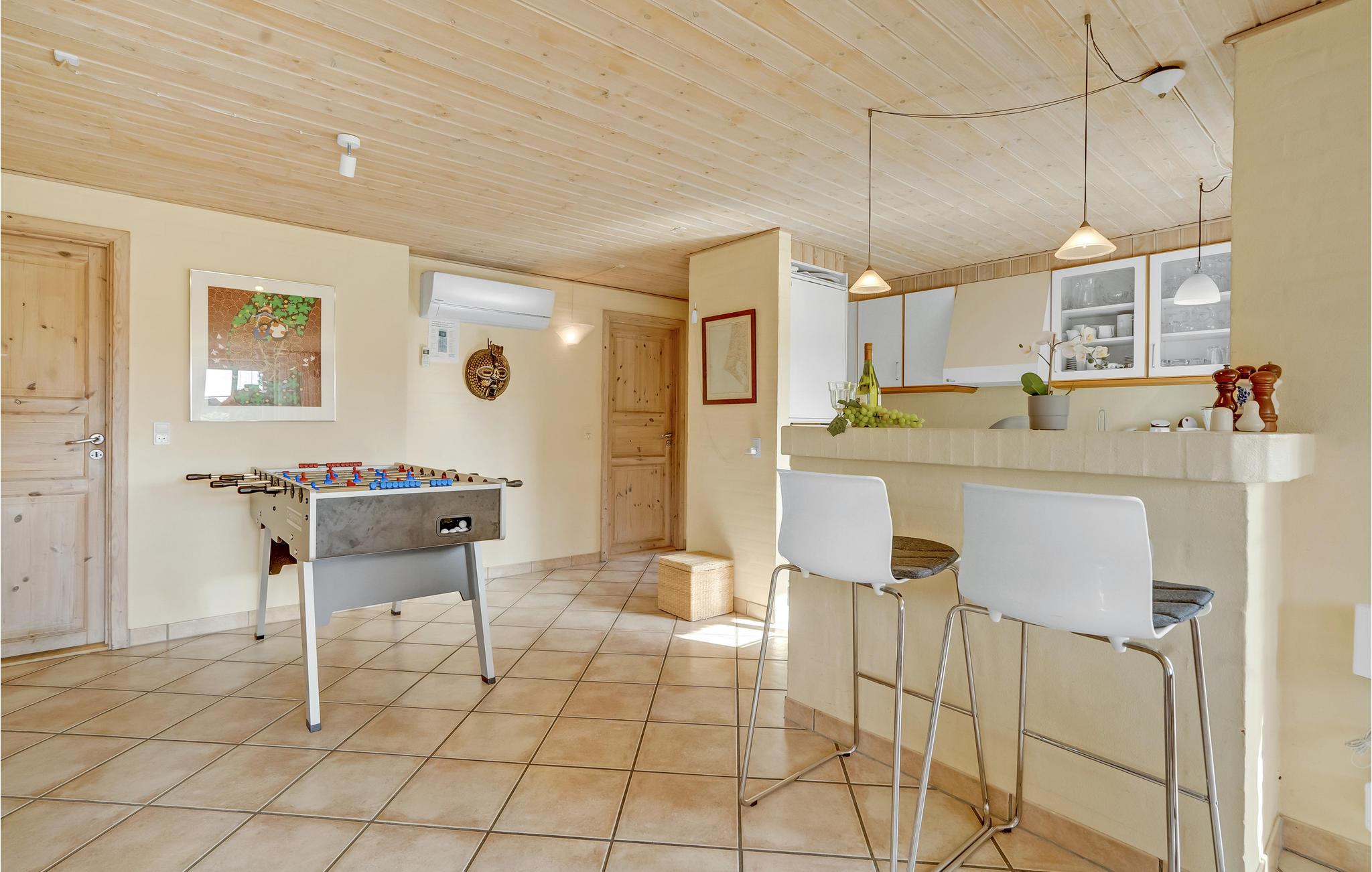 Sommerhuset tilbyder diverse underholdningsmuligheder i form af blandt andet en trampolin, en trækvogn og muligheden for at spille frisbee og bordfodbold.