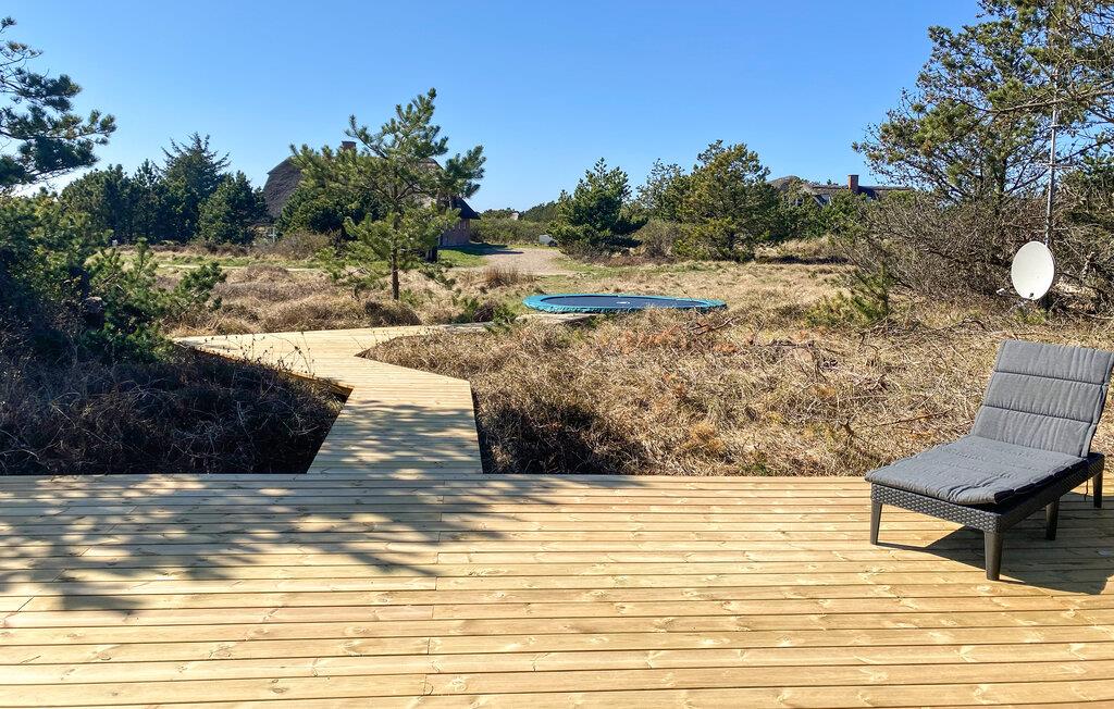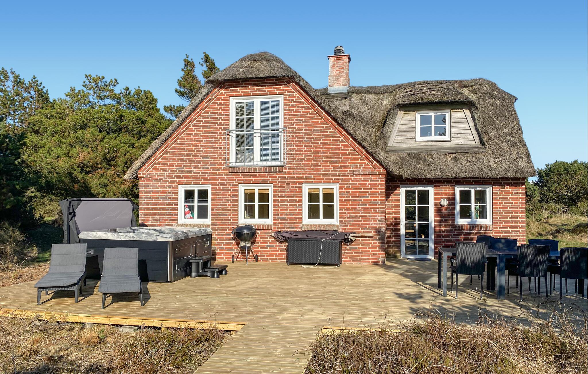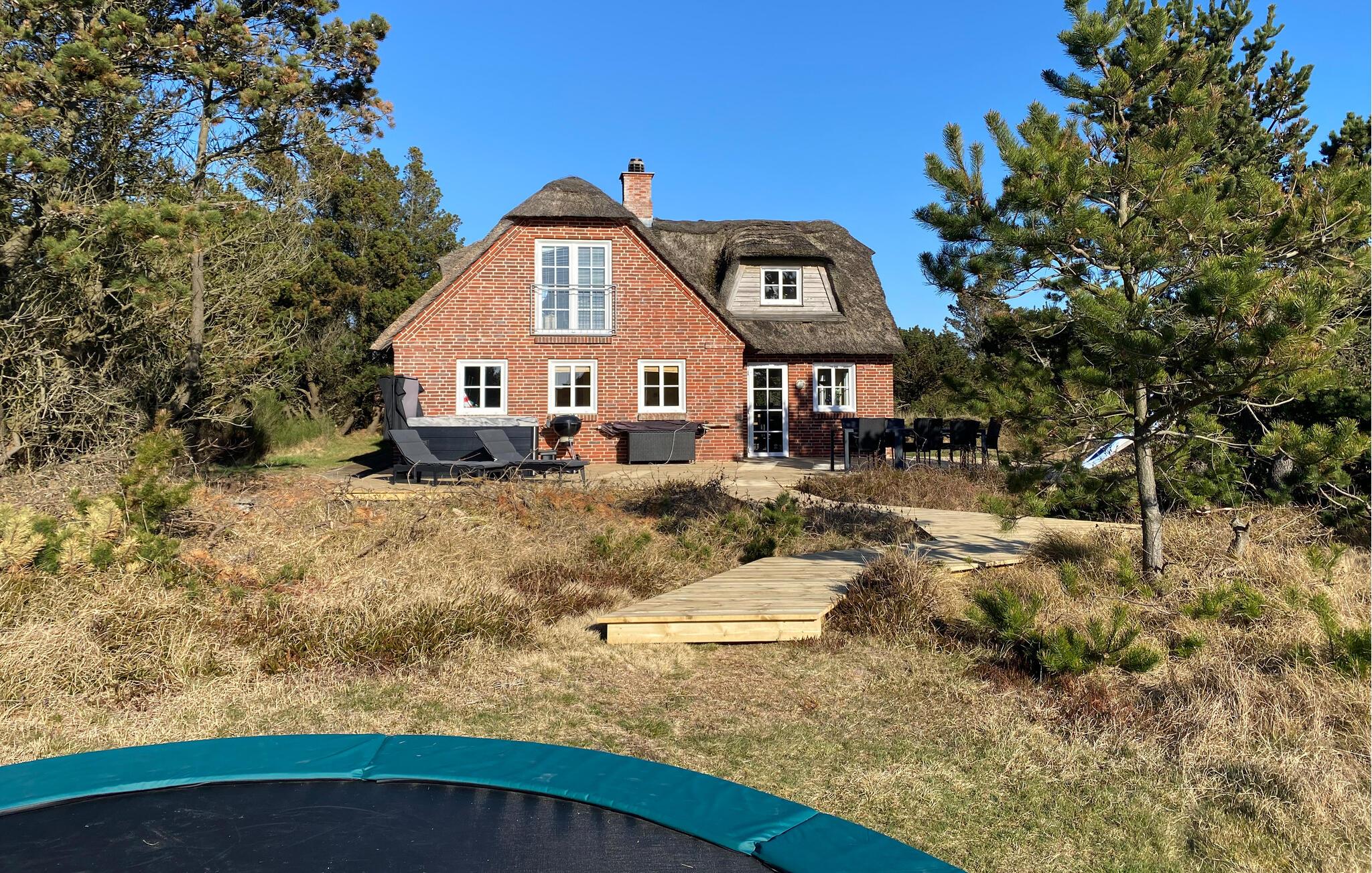 Charmerende sommerhus nær Blåvand Strand med trampolin, spa, sauna og ladestander til elbil.