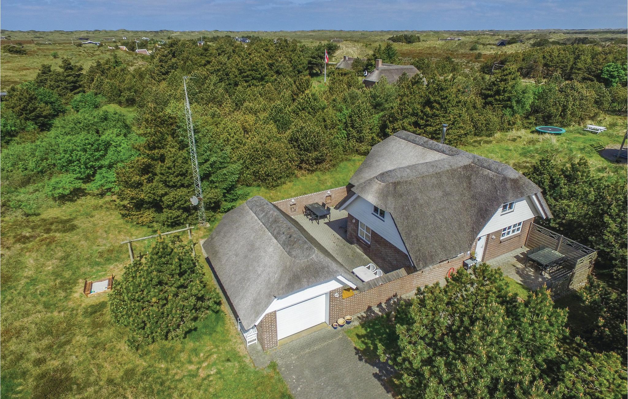 Et hyggeligt, stråtækt stenhus der ligger i gåafstand til stranden, midt i det skønne hede- og klitområde med flere afmærkede vandrestier. Huset har en spændende indretning i to plan med opholdsstue både i stueplan og på førstesalen. I stueetagen er der, foruden opholdstuen med brændeovn, en spisestue i forbindelse med køkkenet. Huset har tre soveværelser og to badeværelser, hvilket er helt oplagt, hvis I rejser to familier sammen. På førstesalen er der et dejligt barområde med barstole, hvor I kan nyde en lækker drink efter en lang vandretur. Desuden kan I nyde at sidde i den velgørende sauna efter en lang dag på stranden. Huset er omkranset af flere terrasser, som gør at I kan nyde solen det meste af dagen. Blåvand har en af de bedste sandstrande, og der er mange spændende butikker i byen.