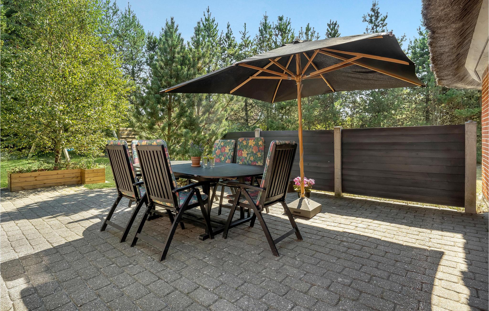 Velkommen til dette dejlige og velindrettede feriehus. Uanset årstiden vil I få en skøn ferie her. Huset indeholder en hyggelig stue der ligger i forbindelse med køkkenet og spiseafdelingen og hvor brændeovnen giver en behagelig varme. Fire soveværelser samt to badeværelser, hvoraf det ene ligger i forbindelse med poolrummet, hvor I rigtig kan boltre jer i den forfriskende pool, få massage i spabadet og efterfølgende en tur i den velgørende sauna. I huset er der installeret en energibesparende varmepumpe. På terrassen kan I nyde et glas vin eller en kop kaffe mens I griller et lækkert aftensmål tid. Området Blåvand indbyder også på mange timers underholdning, her kan man spille minigolf på nok en af danmarks flotteste baner, her er minizoo, med klappevenlige dyr, her er den spændende Tirpitz-bunker fra krigens tid, der er de dejlige strande med det skønne Vesterhav, og selvfølgelig Blåvand by, med de mange gode butikker og spisesteder og så selvfølgelig naturen som er noget helt for sig selv.