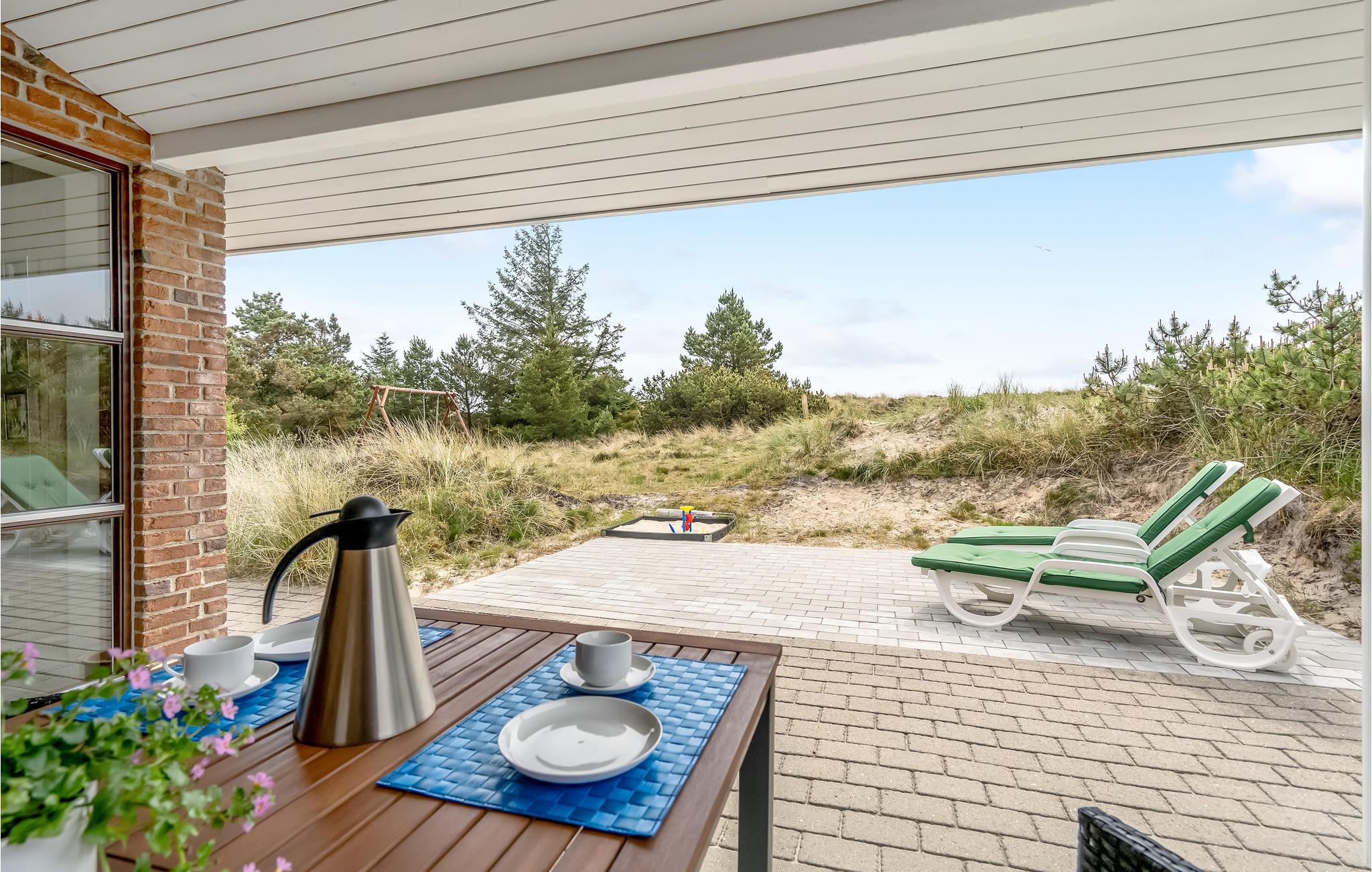 Super hyggeligt og dejligt sommerhus, der er velholdt og personligt indrettet. Husets hjerte er det store køkken/alrum, hvor I kan nyde udsigten til klitterne lige udenfor, samtidig med at flammerne giver hygge i brændeovnen. Udover de tre store soveværelser, vil børnene elske hemsen både som soveplads og hyggekrog. Huset er samtidig praktisk indrettet og gennemtænkt, med f.eks. en god entre, hvor der er ekstra plads til at stille sko, jakker og tasker fra sig. Huset ligger på en kuperet klitgrund, men da der samtidig er terrasse hele vejen rundt om huset, kan I rigtig nyde naturen omkring huset, og her specielt på de to overdækkede terrasser, hvor de lange sommer aftener kan nydes.