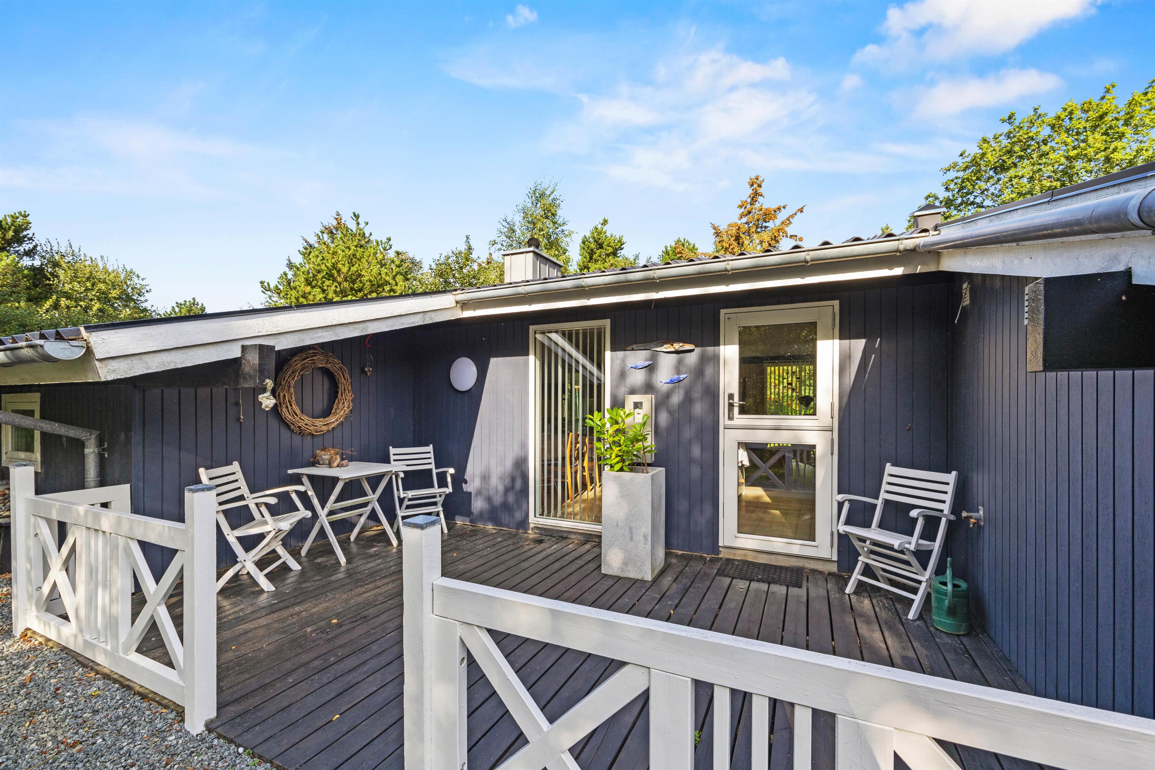 Sommerhuset har 2 gode terrasser, og den ene er delvist overdækket. Her står havemøbler og liggestole klar til jer. Til aften kan I tænde op i grillen og nyde middagen på terrassen, mens I snakker om, hvad morgendagen skal byde på af aktiviteter.