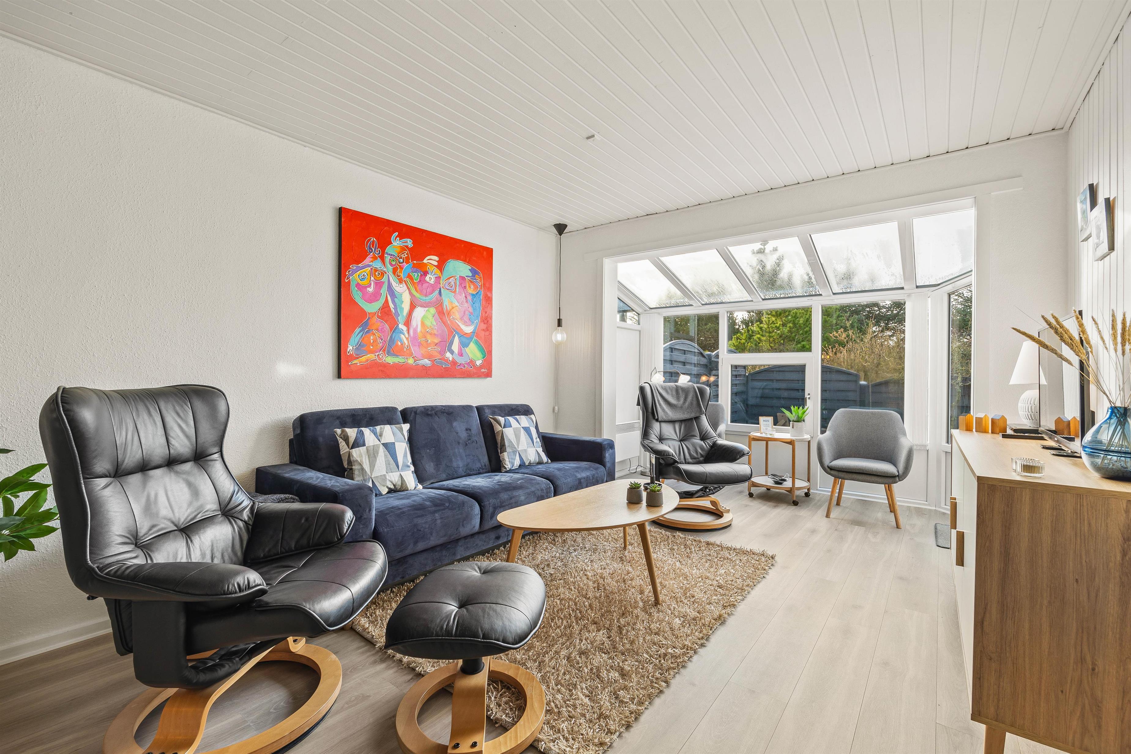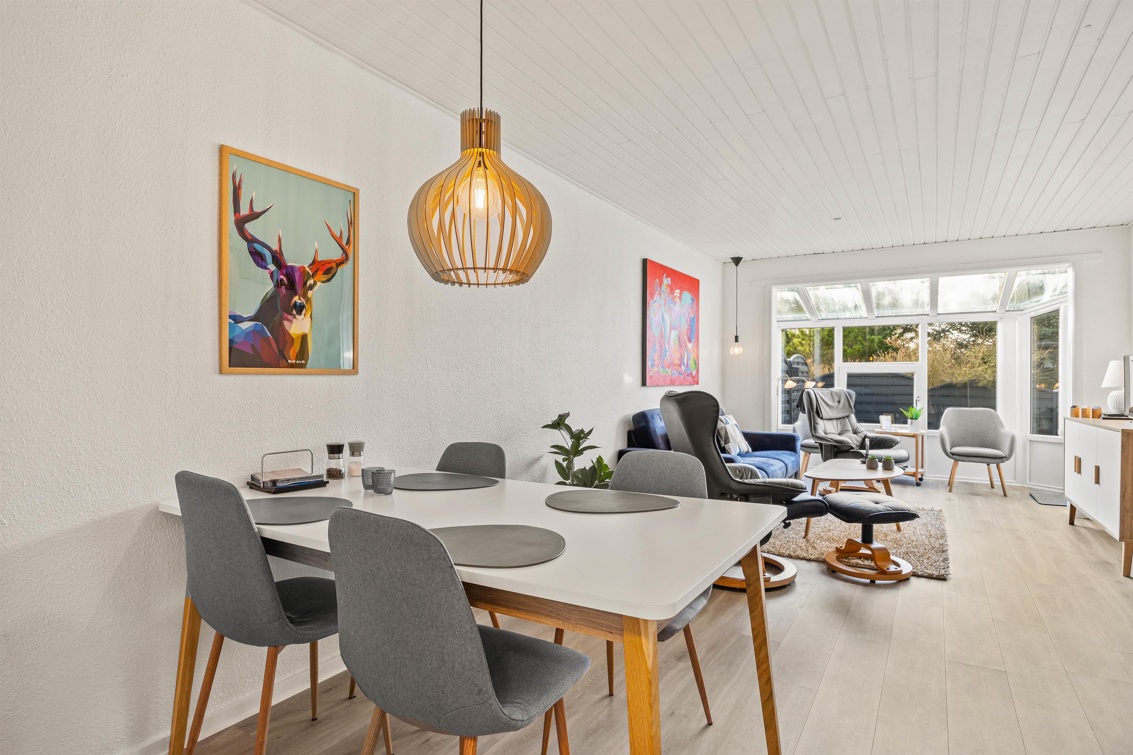 I alrummet sørger brændeovnen med sine knitrende flammer for, at feriestemningen er helt i top, og samtidig spreder den en dejlig varme i rummet. Derudover har I en energivenlig varmepumpe i sommerhus, der sørger for behagelige temperaturer indendørs.