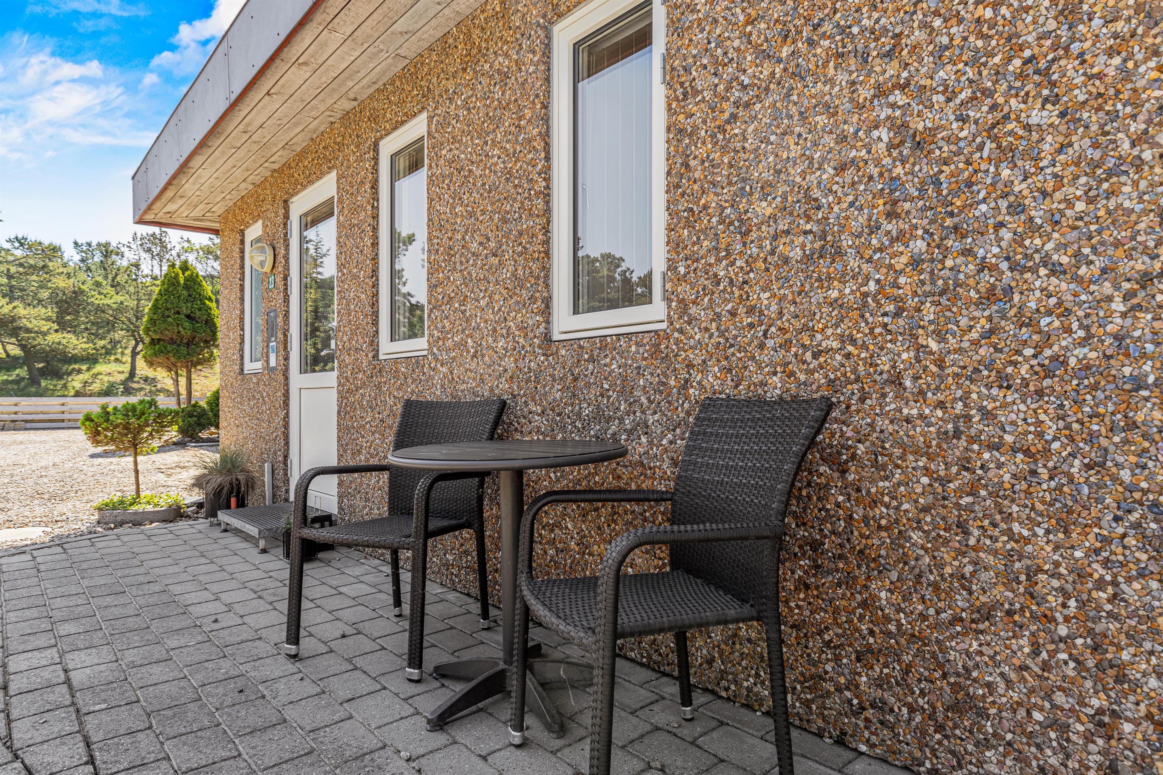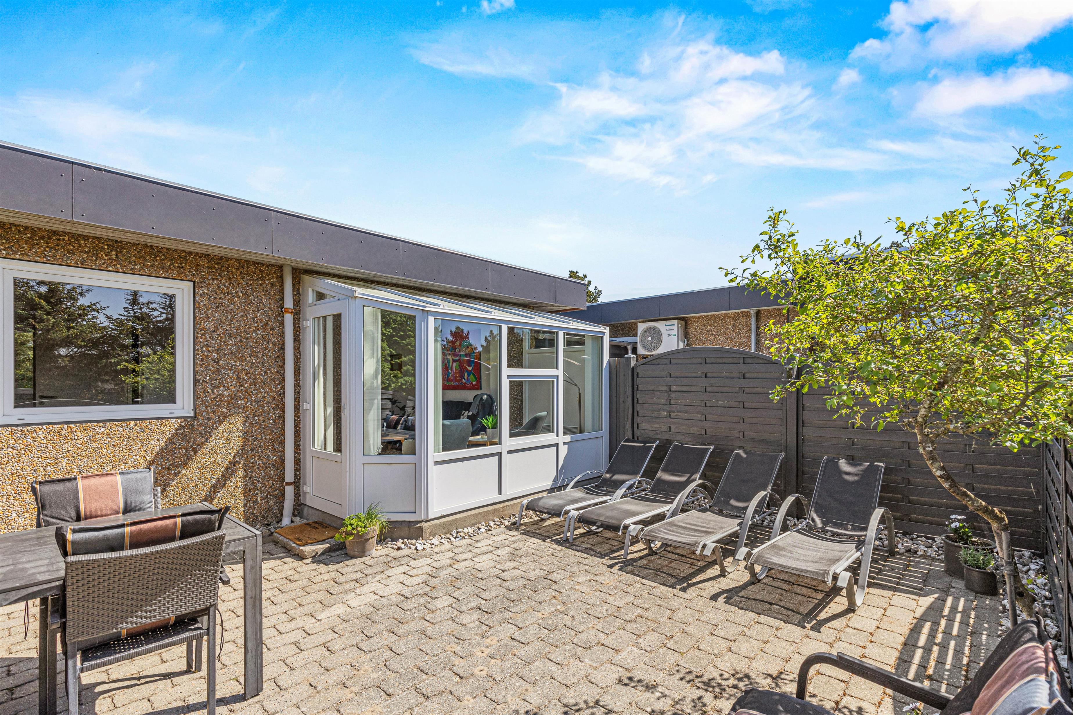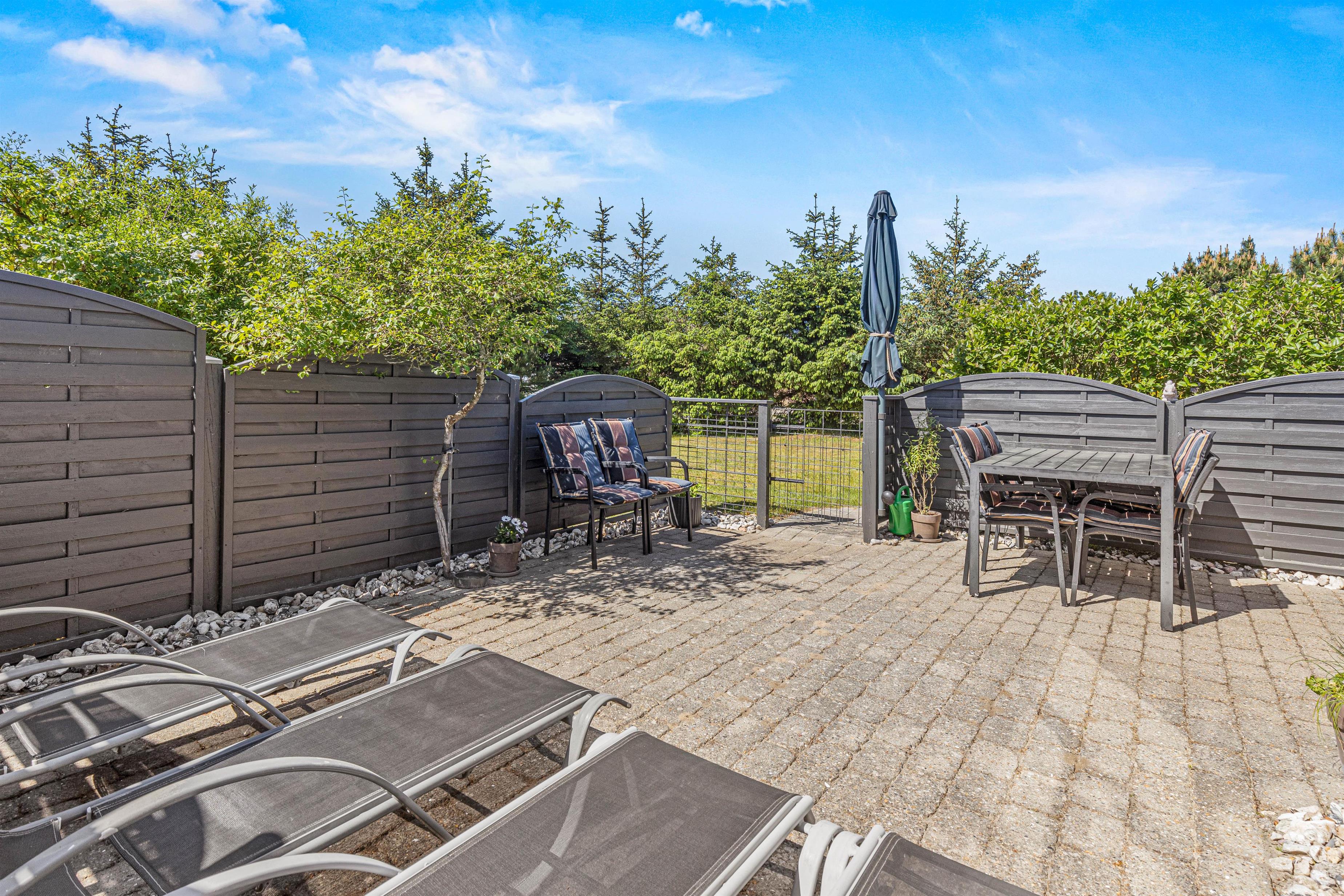Når ferievejret er i top, kan I rykke jeres ferie ud på sommerhusets terrasse, der er lukket. På terrassen kan I finde jer til rette i havemøblerne og liggestolene, hvorfra I kan nyde solens varme stråler. I har desuden en grill til rådighed, så I kan nyde de lune ferieaftener på terrassen med lækker grillmad.