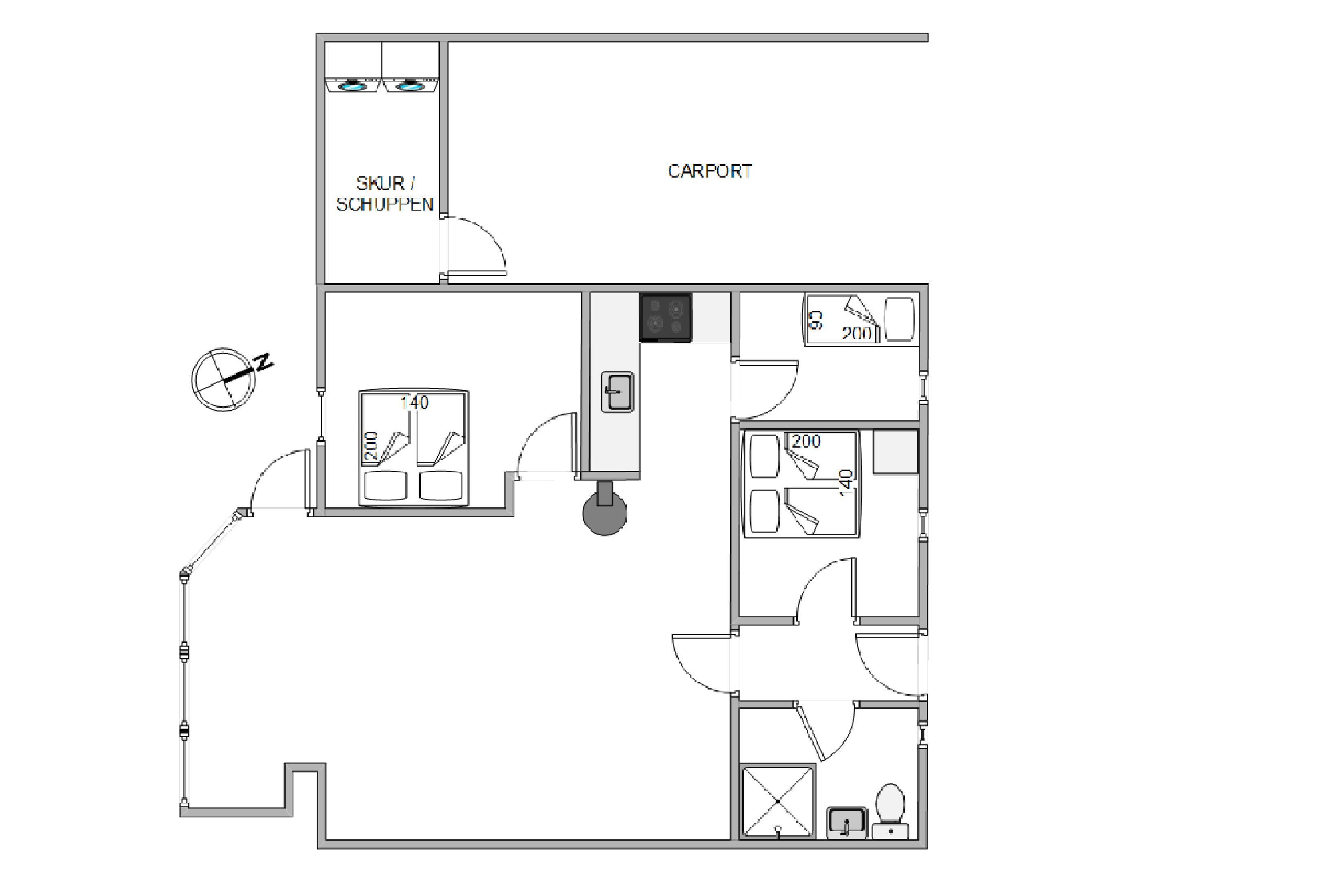 I det 72 kvadratmeter store sommerhus har I desuden 3 soveværelser, som I kan søge mod, når I trænger til at få jer en god nats søvn. De 3 soveværelser er indrettet med i alt 2 dobbeltsenge og 1 enkeltseng. Derudover er der 1 badeværelse i sommerhuset.