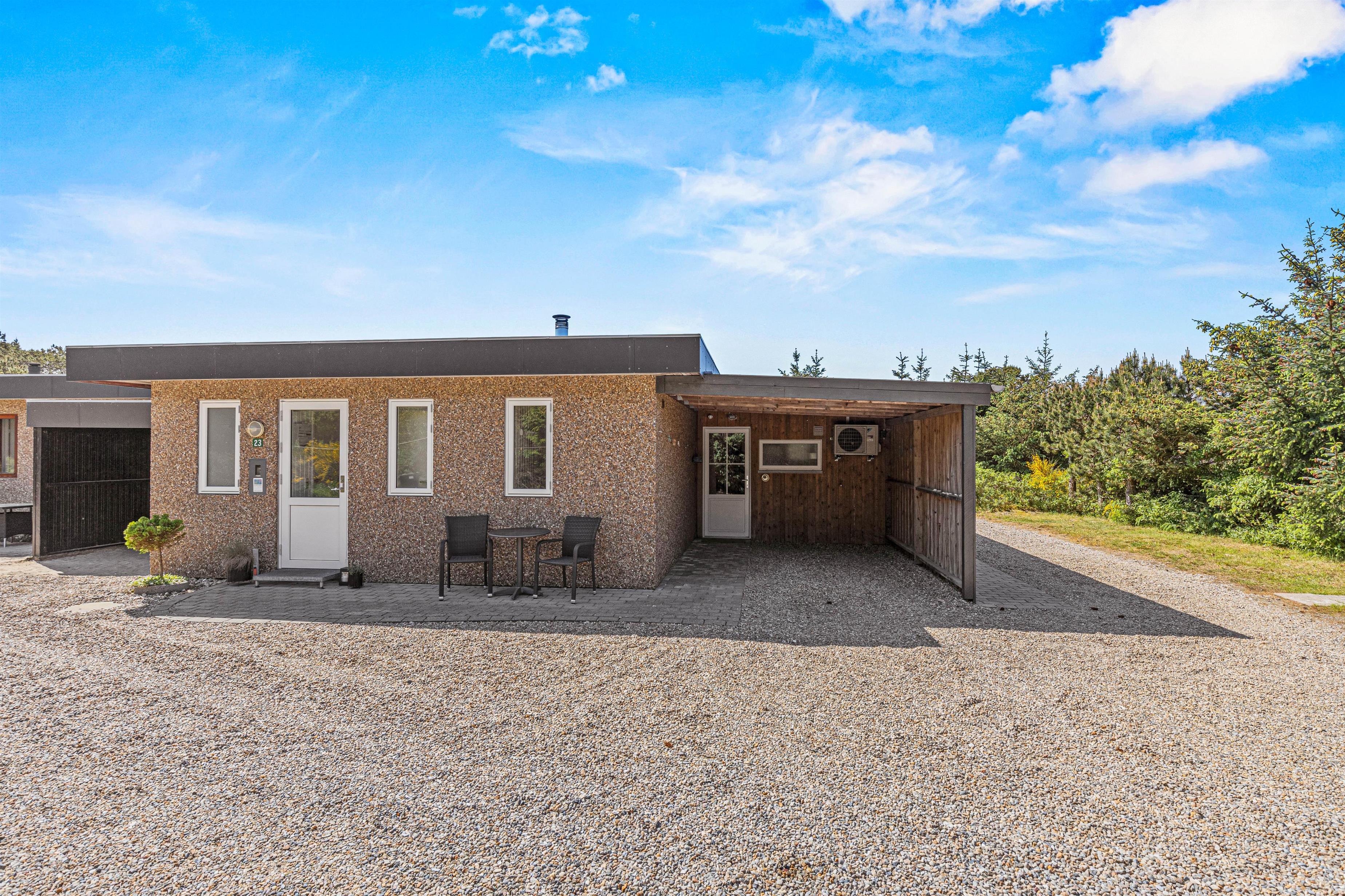 Sommerhuset på Fyrgården 23 har en god beliggenhed i Blåvand. Herfra har I blot 150 meter til jeres nærmeste indkøbsmulighed, og i Blåvand er der både supermarkeder og specialbutikker, I kan klare jeres ferieindkøb hos.