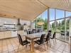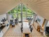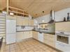 Sommerhusets alrum, hvor køkken, stue og spiseafdeling er forenet i ét, bliver jeres samlingspunkt på ferien. Her er der lagt op til mange sjove og hyggelige feriestunder med alt fra madlavning og planlægning til spil og film. Brændeovnen sørger for god varme og stemning med sin knitren i baggrunden.