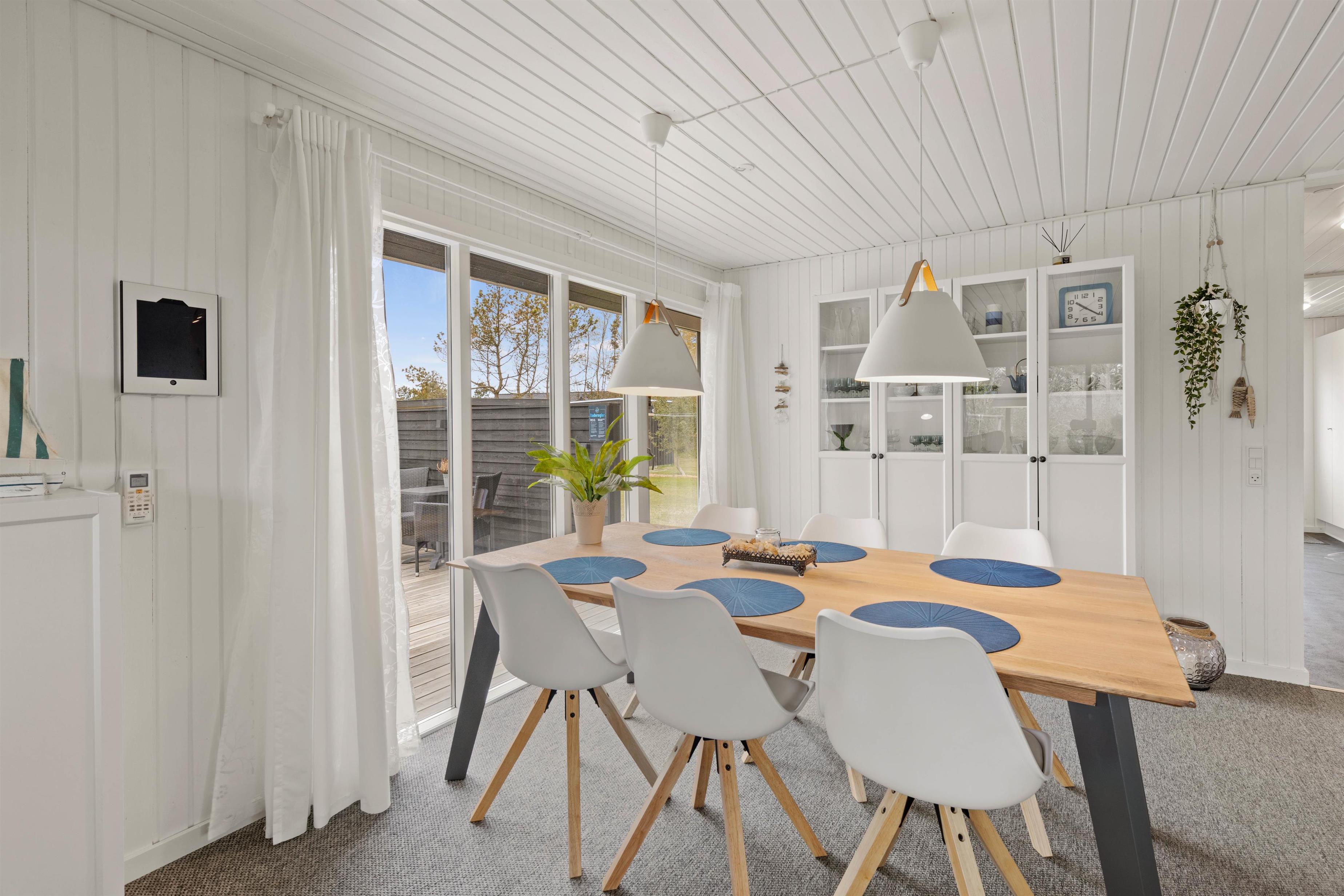 I dette skønne sommerhus vil I have muligheden for at nyde den vestjyske natur i alt slags vejr. I kan nemlig slappe af i det varme udendørs spabad – det er da luksus! Derudover rummer feriehuset en stor, delvist overdækket og afskærmet terrasse med terrassevarmer, som strækker sig rundt om sommerhuset. Her er der altid mulighed for at finde en solstråle.