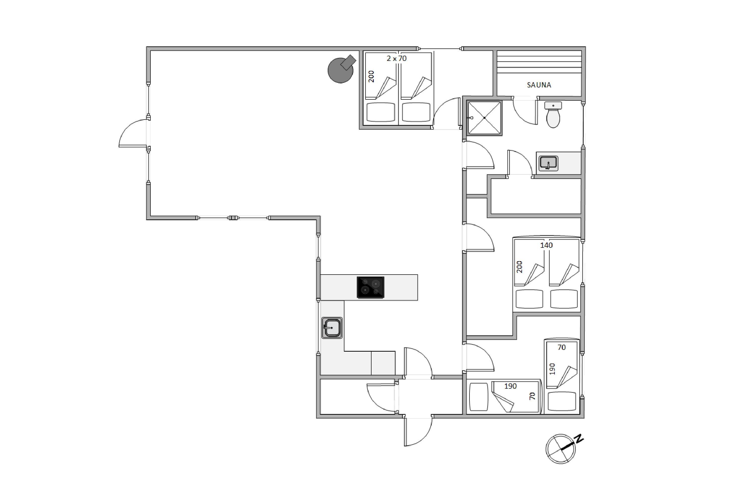Sommerhuset med den gode indretning er til maksimalt 4 personer og 1 hund. Det åbne køkken er kombineret med stuen og spiseafdelingen og udgør et stort opholdsrum, hvor I har god plads til at være sammen. Hjælp hinanden med aftensmaden eller tag et spil kort rundt om stuebordet - her er alle muligheder for hyggeligt samvær.