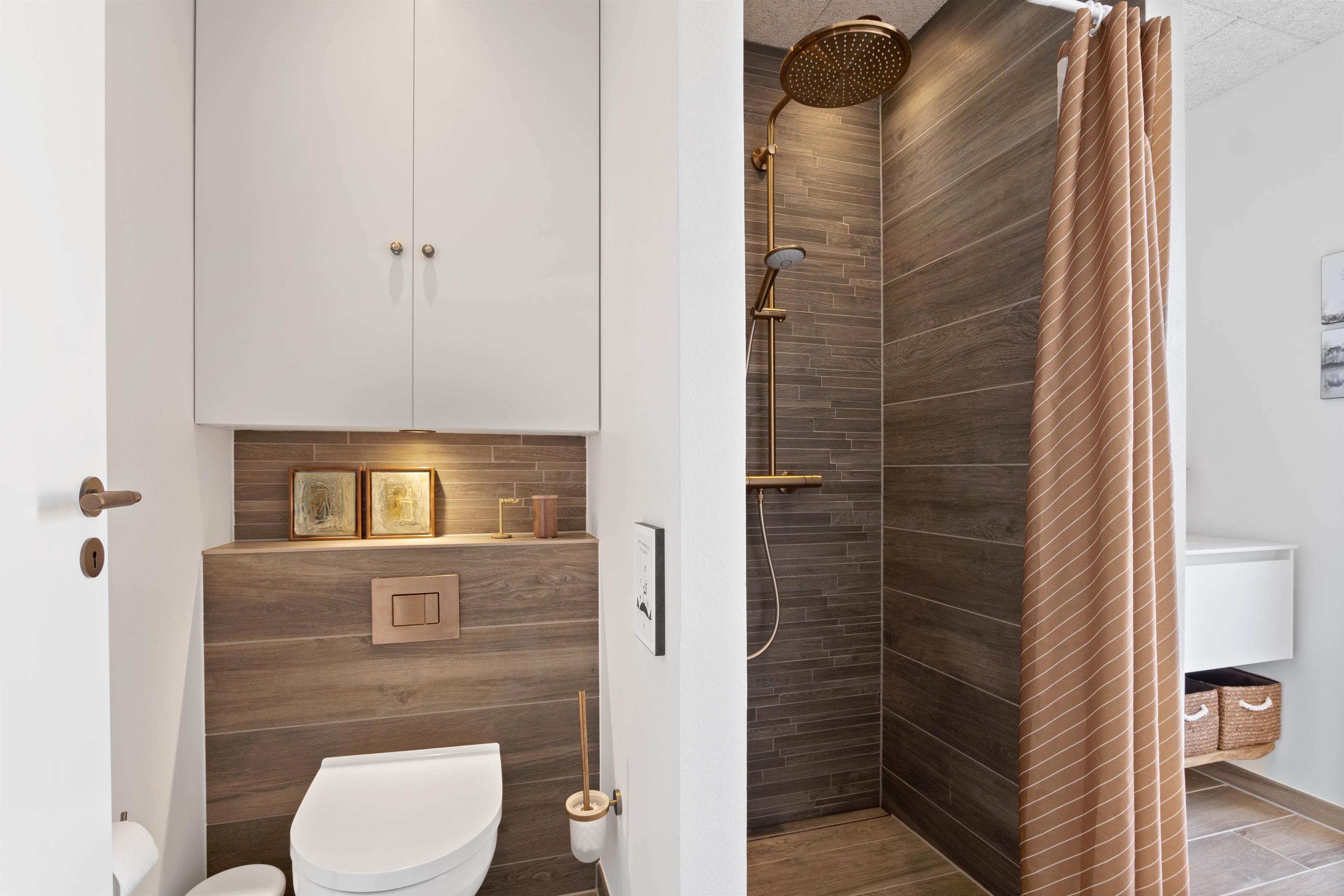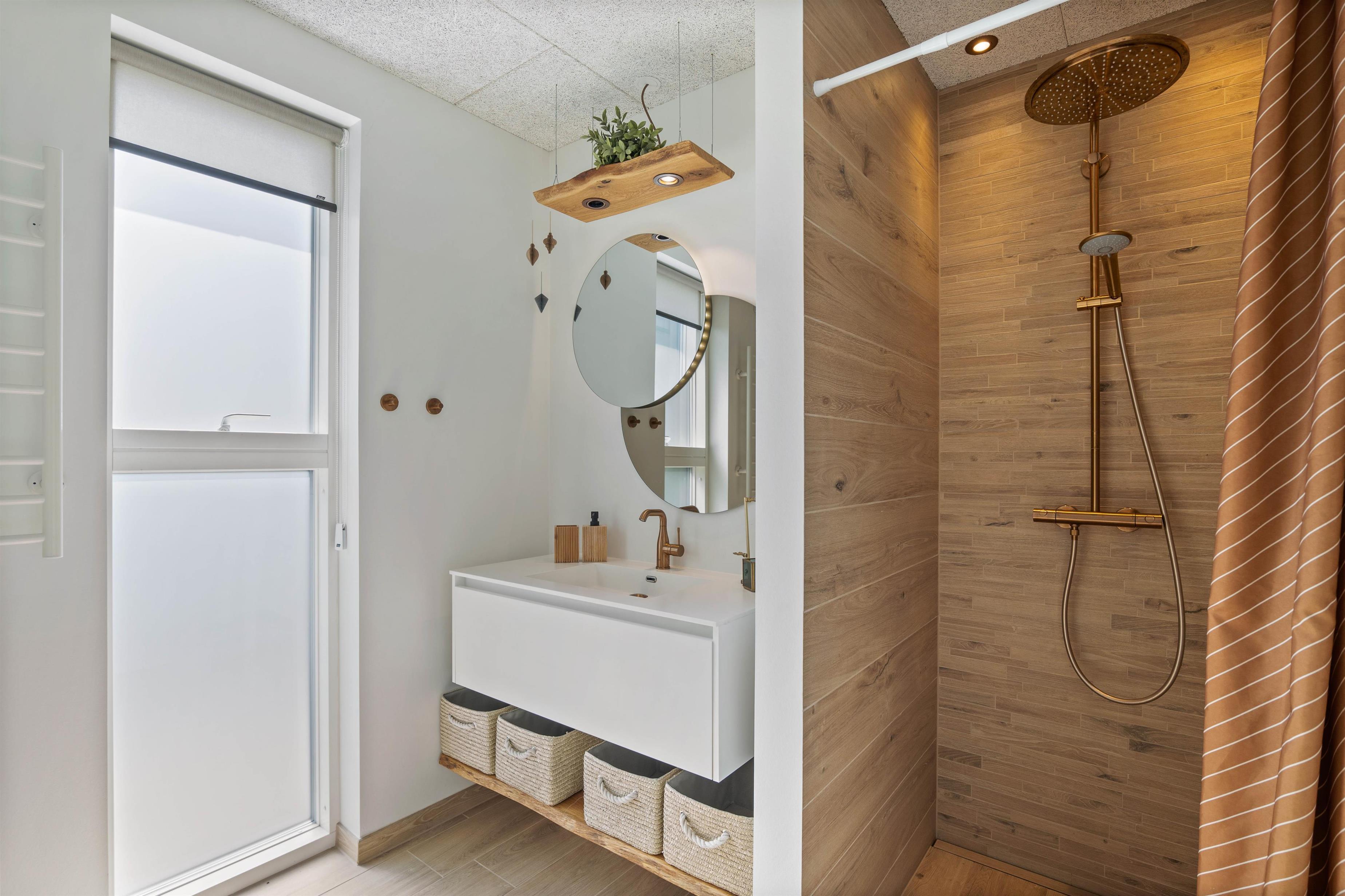 Når I efterhånden er ved at have brugt al jeres energi for dagen, kan I søge mod sommerhusets 5 soveværelser, der alle har en lys og moderne indretning. Når I står friske op næsten morgen, skal I ikke tænke på kø til badeværelset, for i dette sommerhus er der hele 3 badeværelser, der alle har gulvvarme.