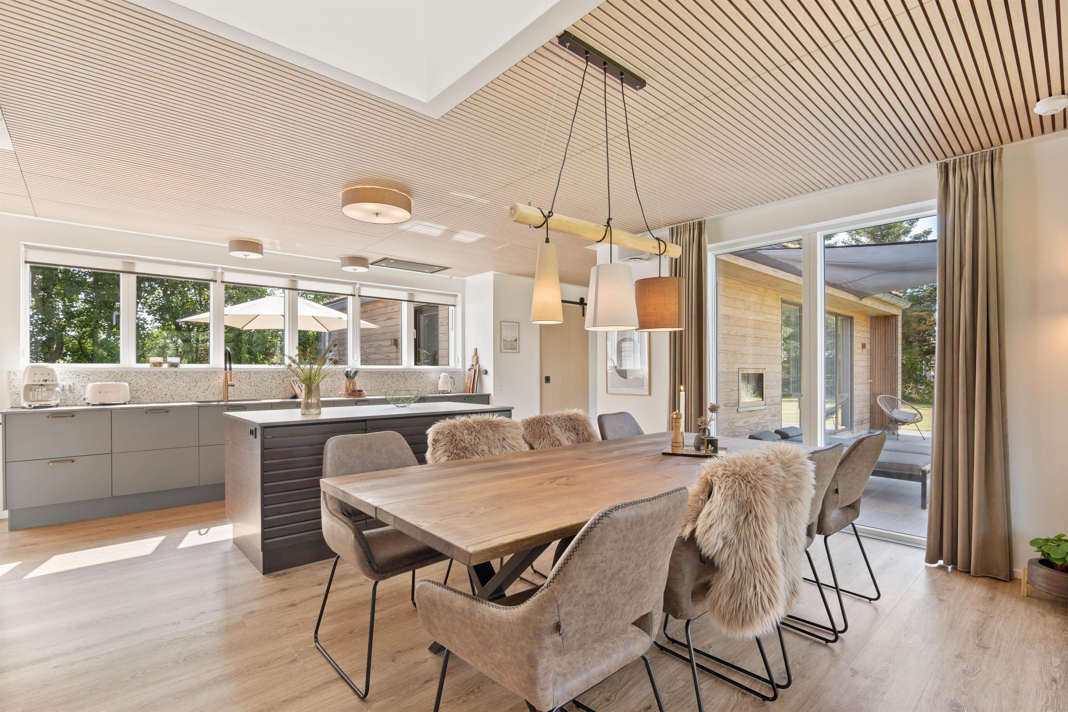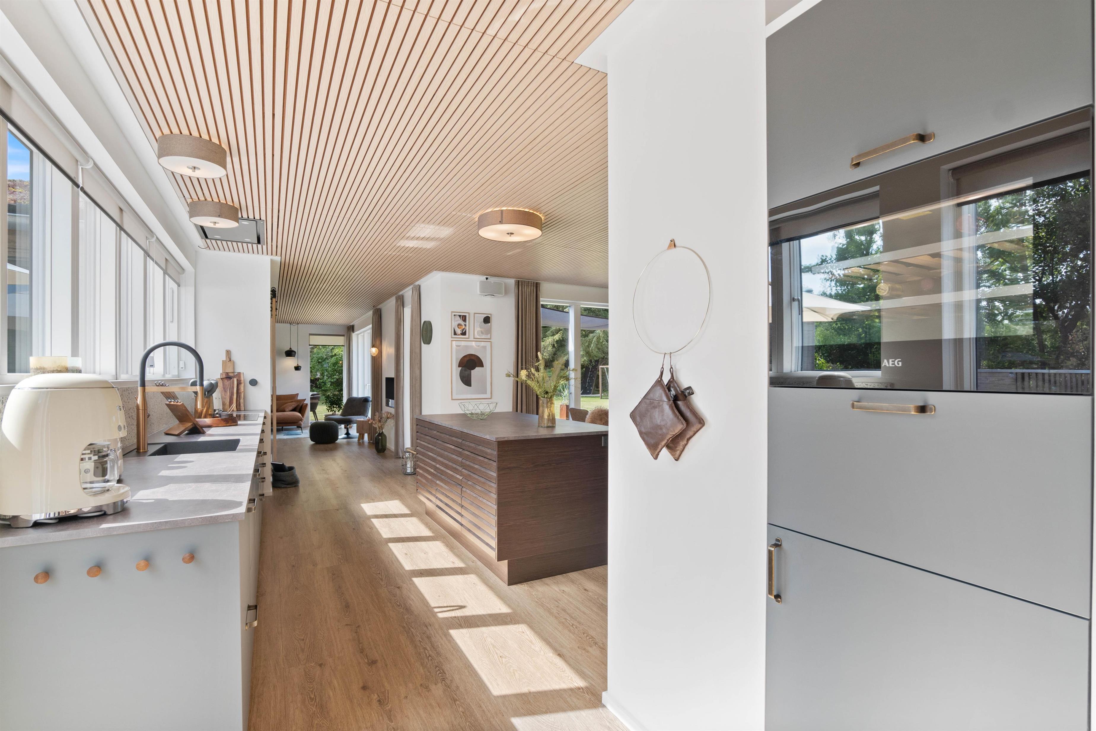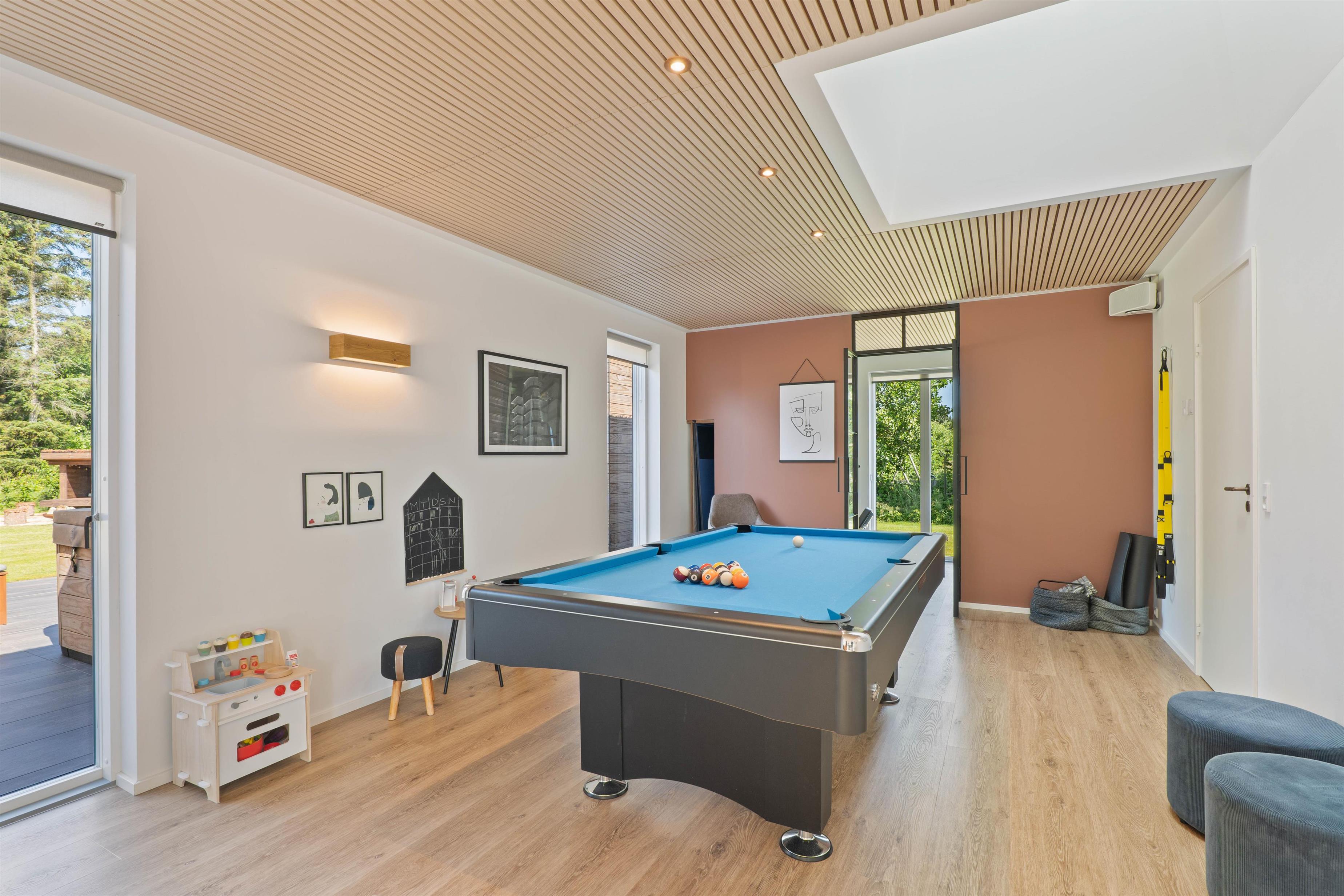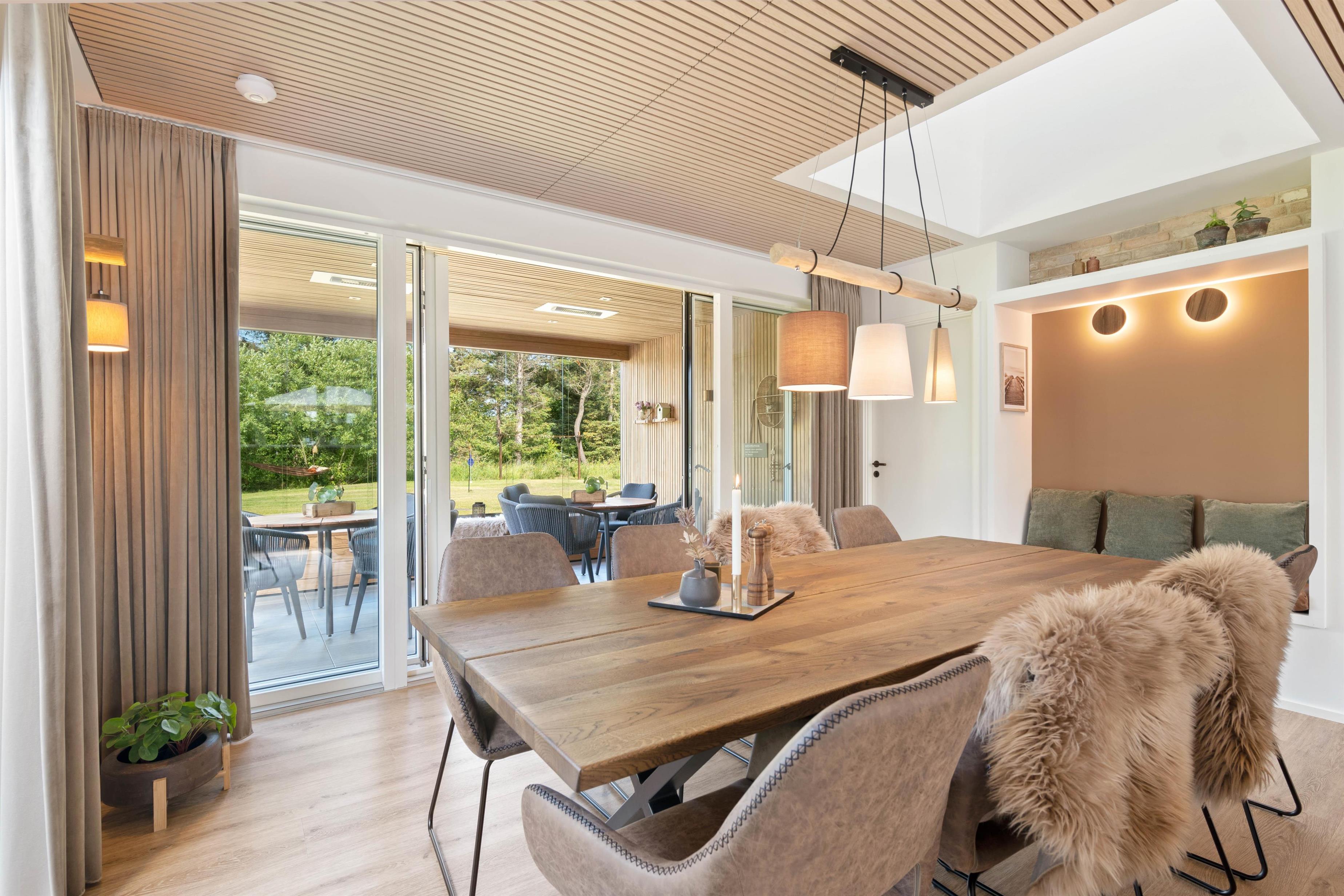 Foruden aktivitetsrum og fitnessrum er der i sommerhuset også et dejligt, lyst alrum, der forbinder køkkenet og spisepladsen med stuen, og hvor I helt sikkert vil tilbringe mange timer af jeres ferie med hele ferieflokken. Fra alrummet har I også et skønt udsyn til haven.