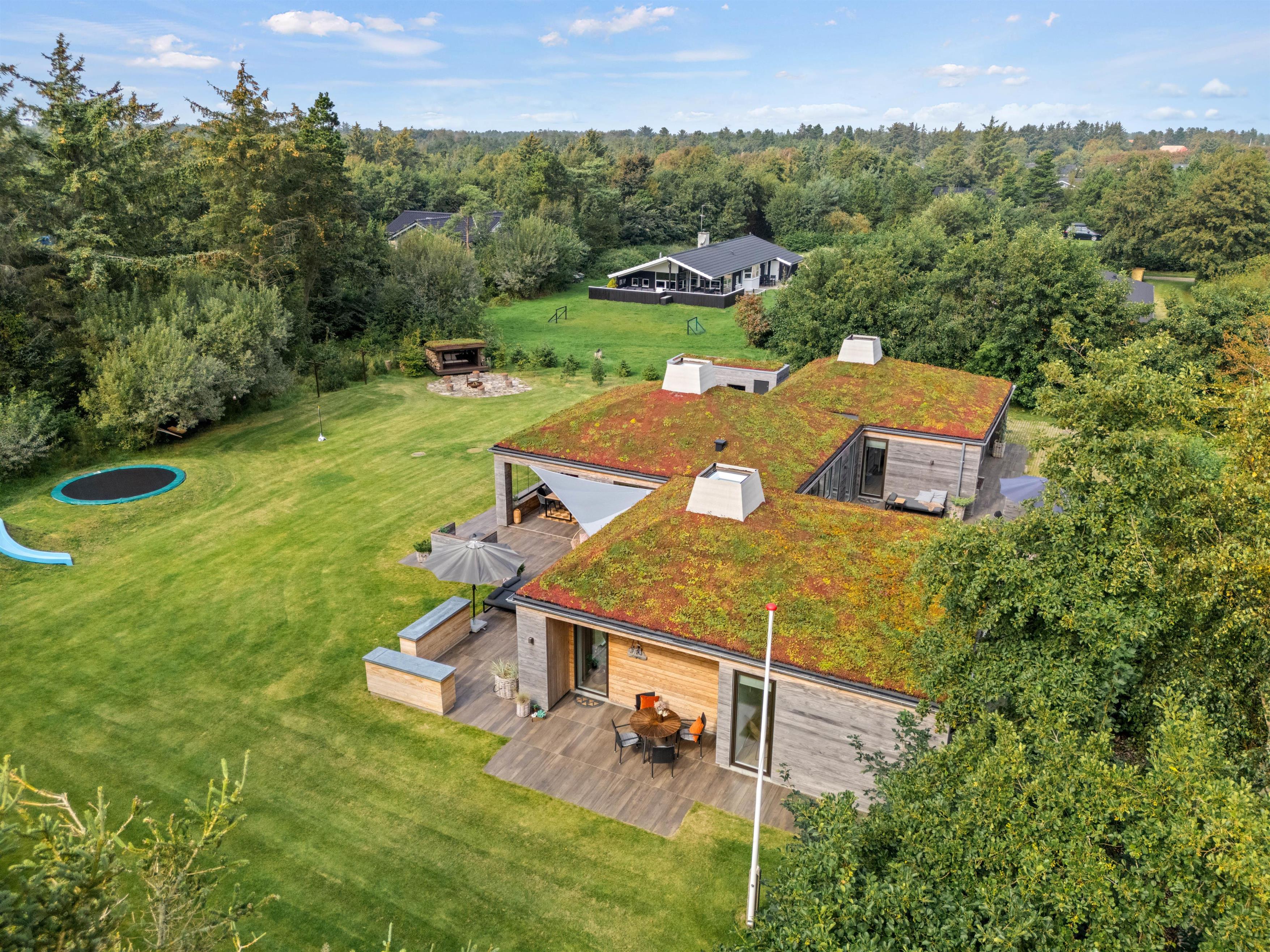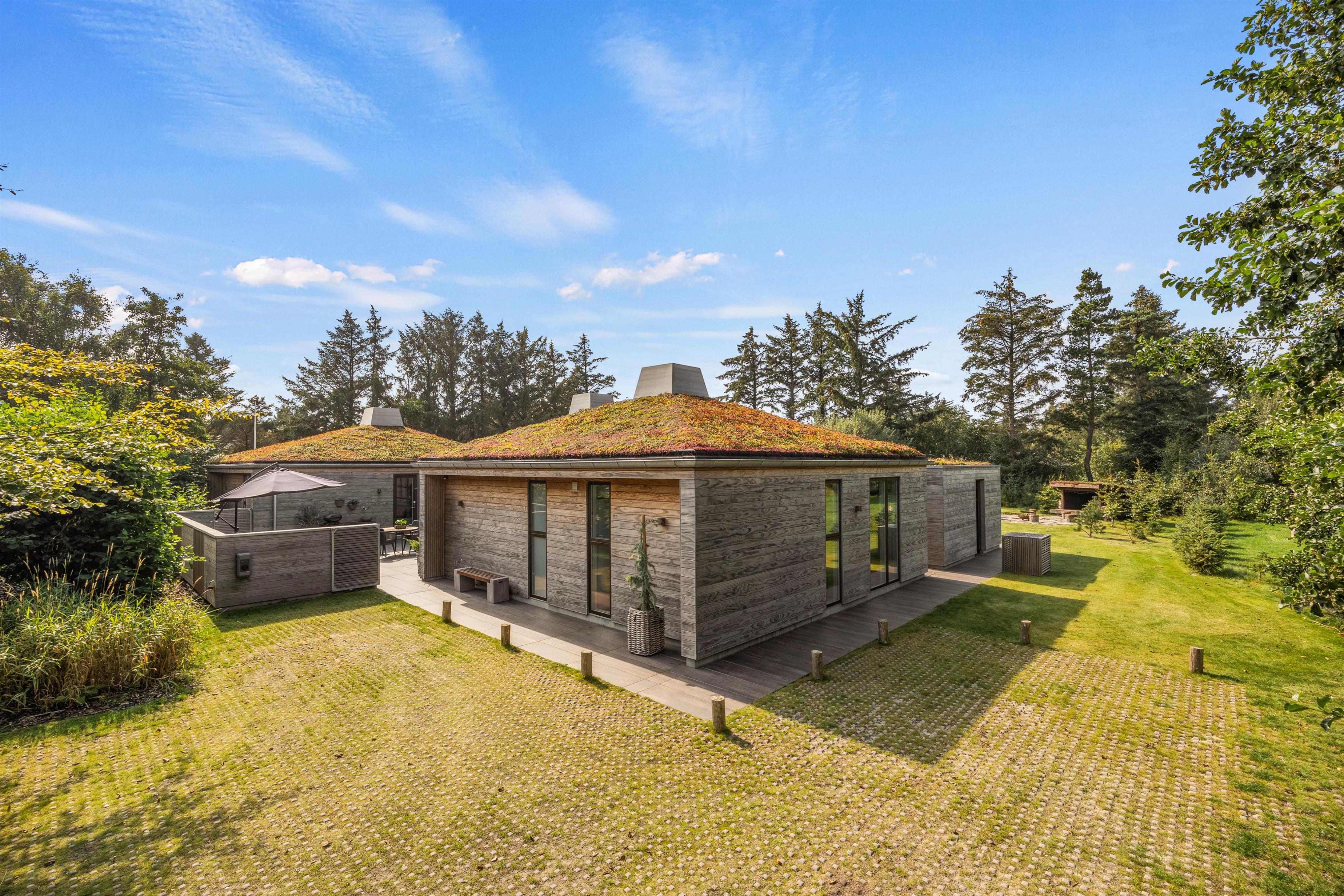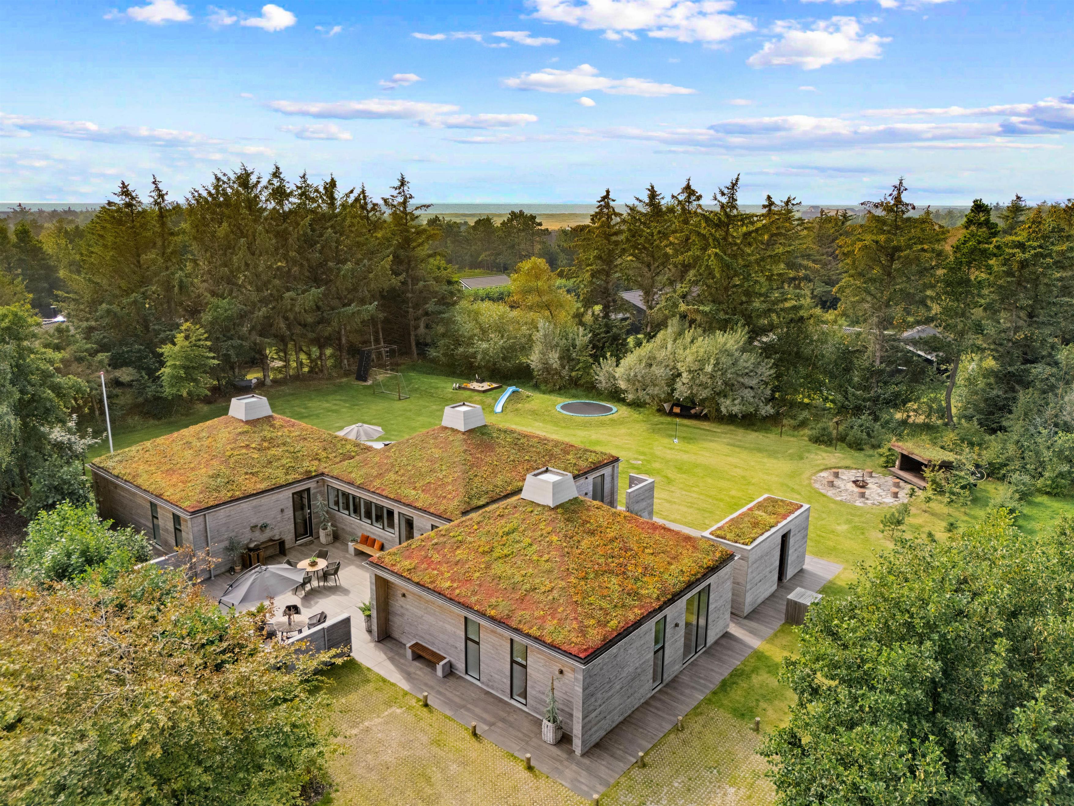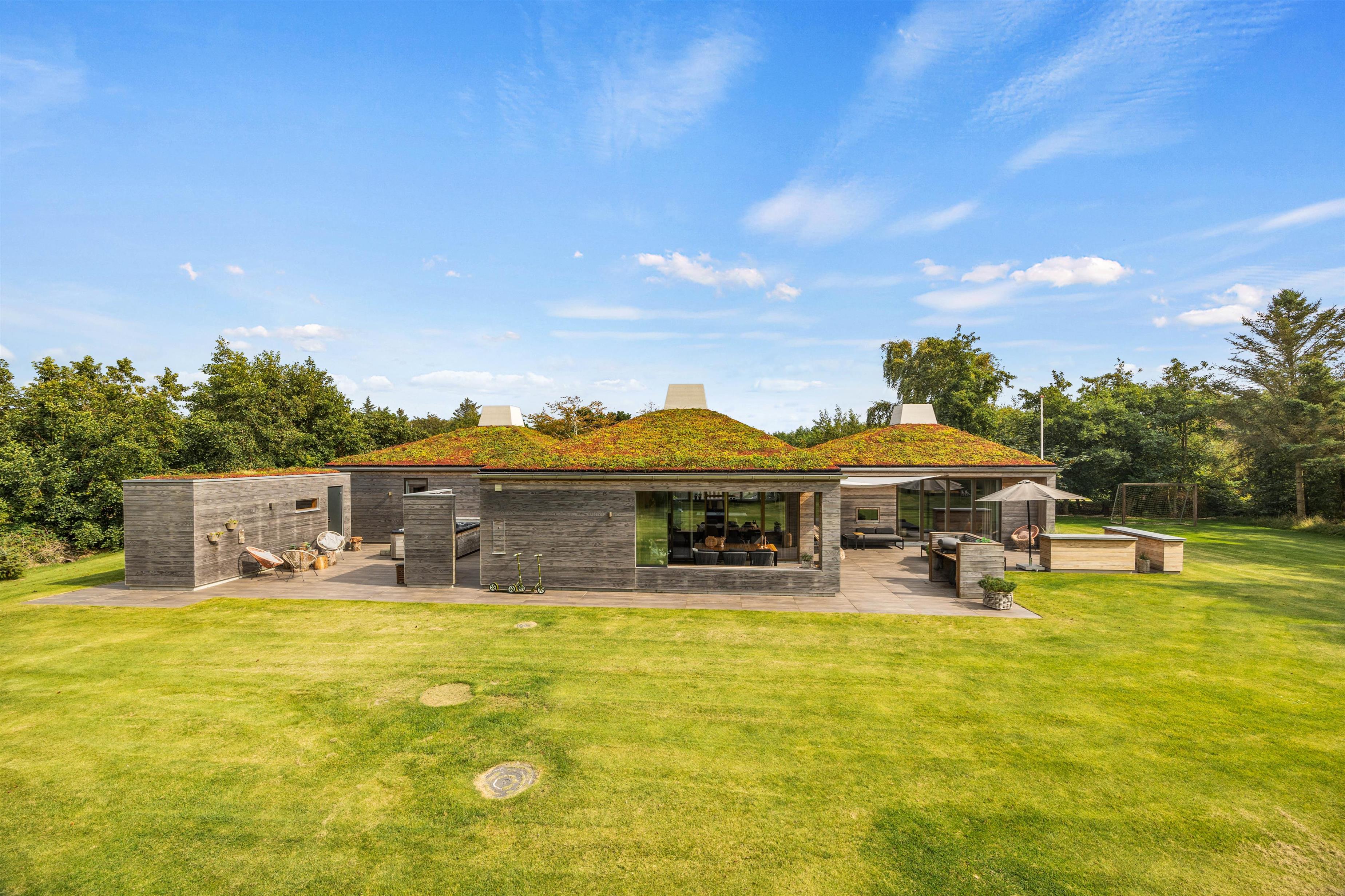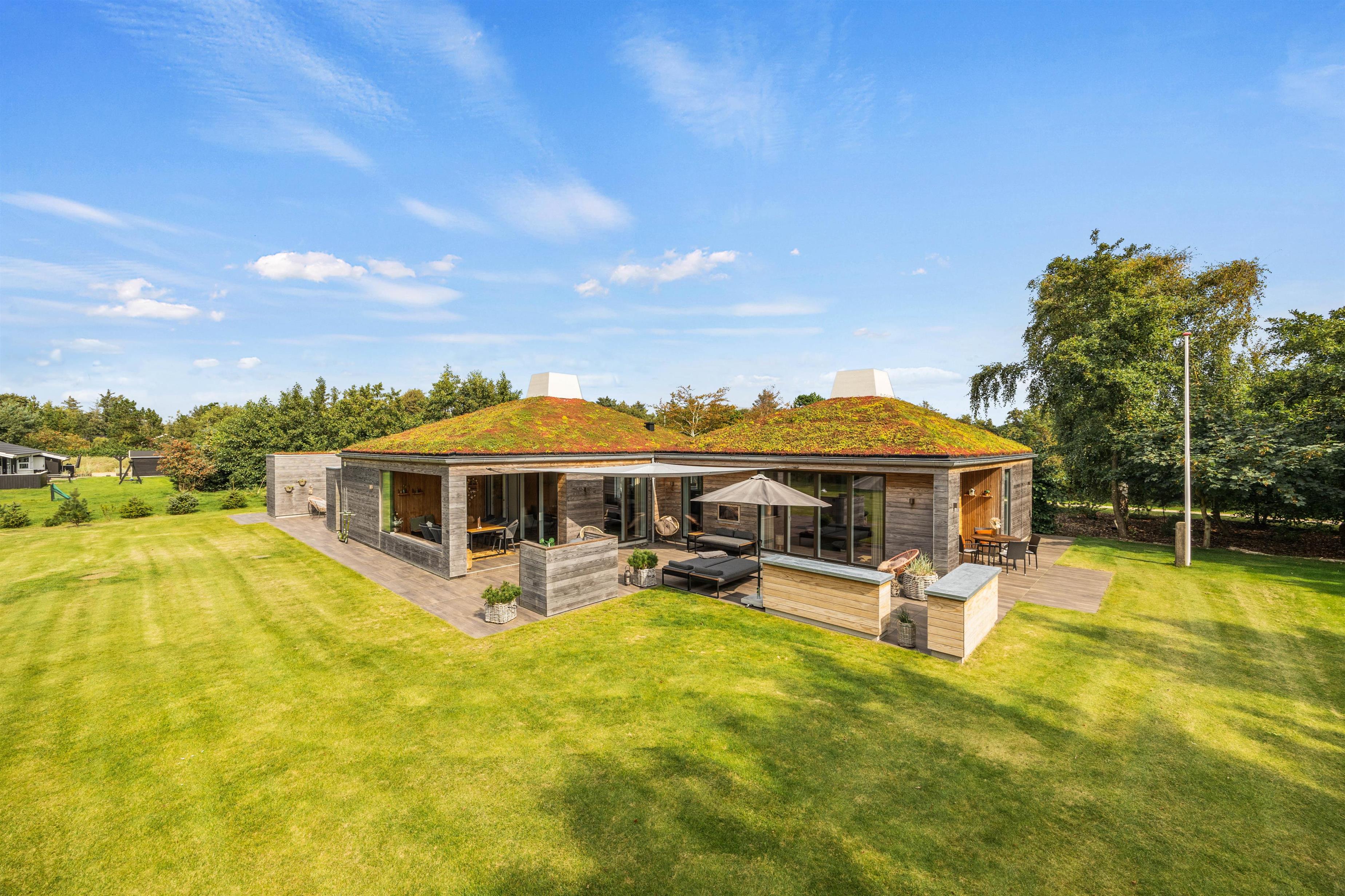 På Hans Thuesensvej 32 i hjertet af badebyen Blåvand møder jer dette helt unikke luksussommerhus. Foruden de mange lækre detaljer som fx udespa, infrarødsauna, fitness og aktivitetsrum fortryller sommerhuset også med de flotte naturmaterialer og sin helt unikke arkitektur, der er inspireret af de bornholmske træ-røgerier.