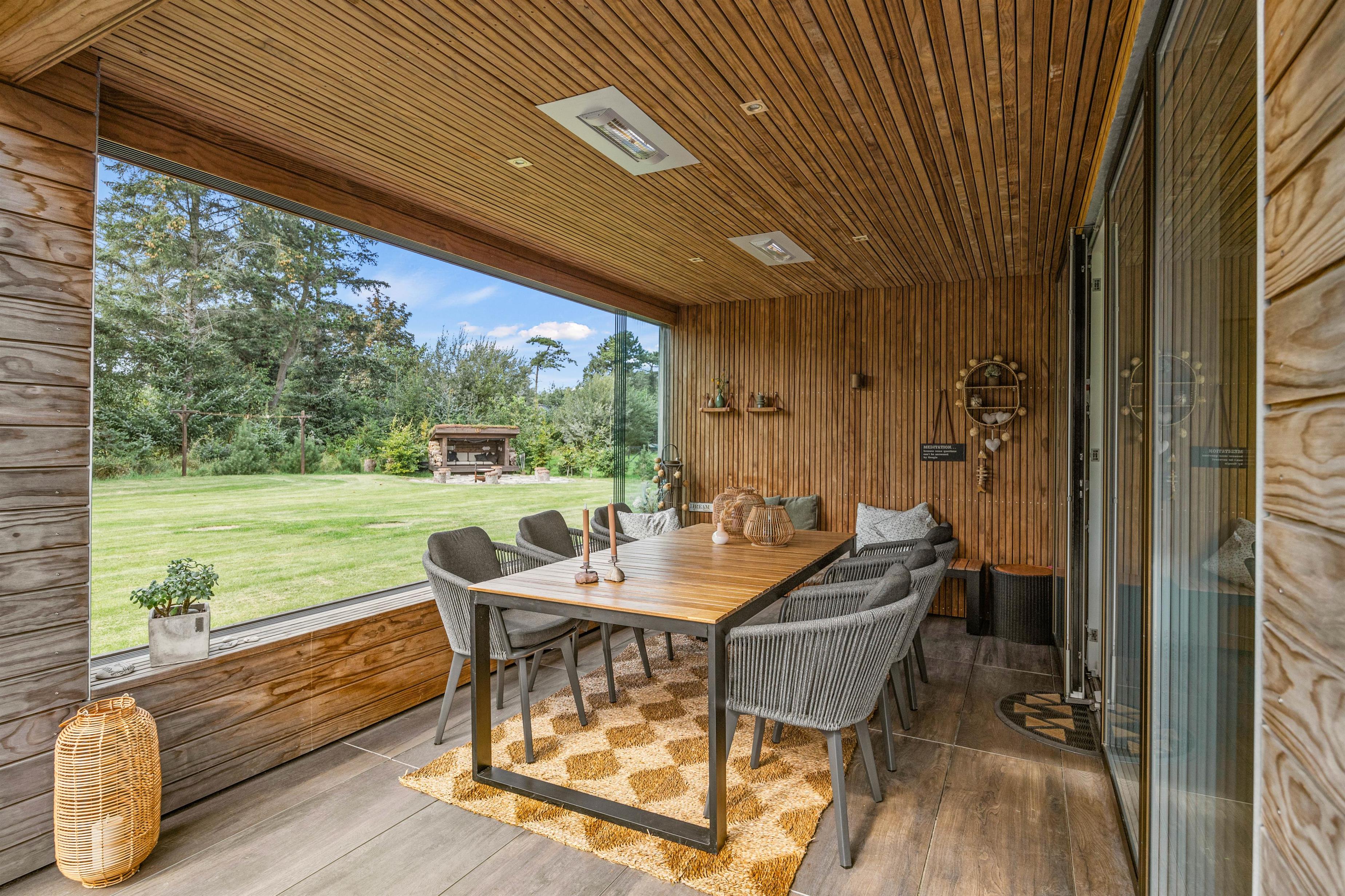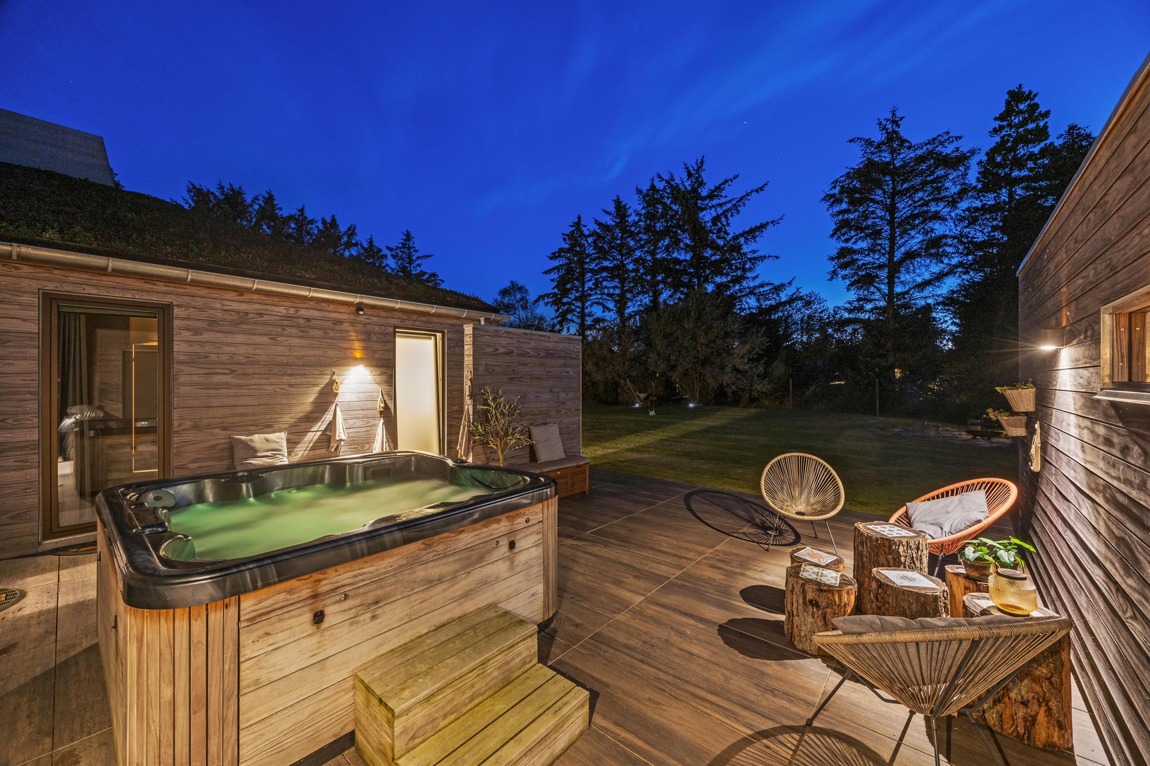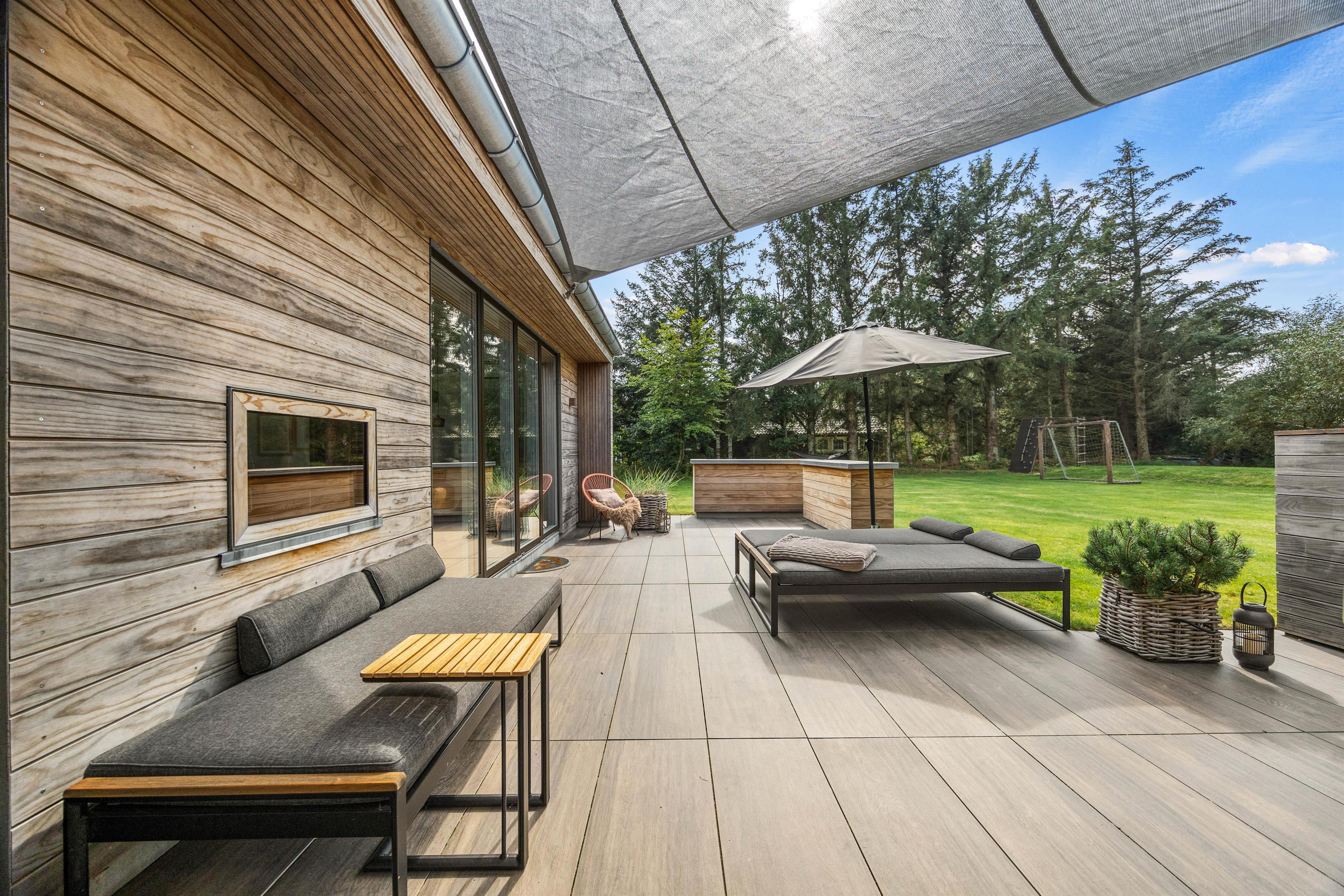 Stor terrasse med udespa, udesauna med infrarød varme og udendørs bruser