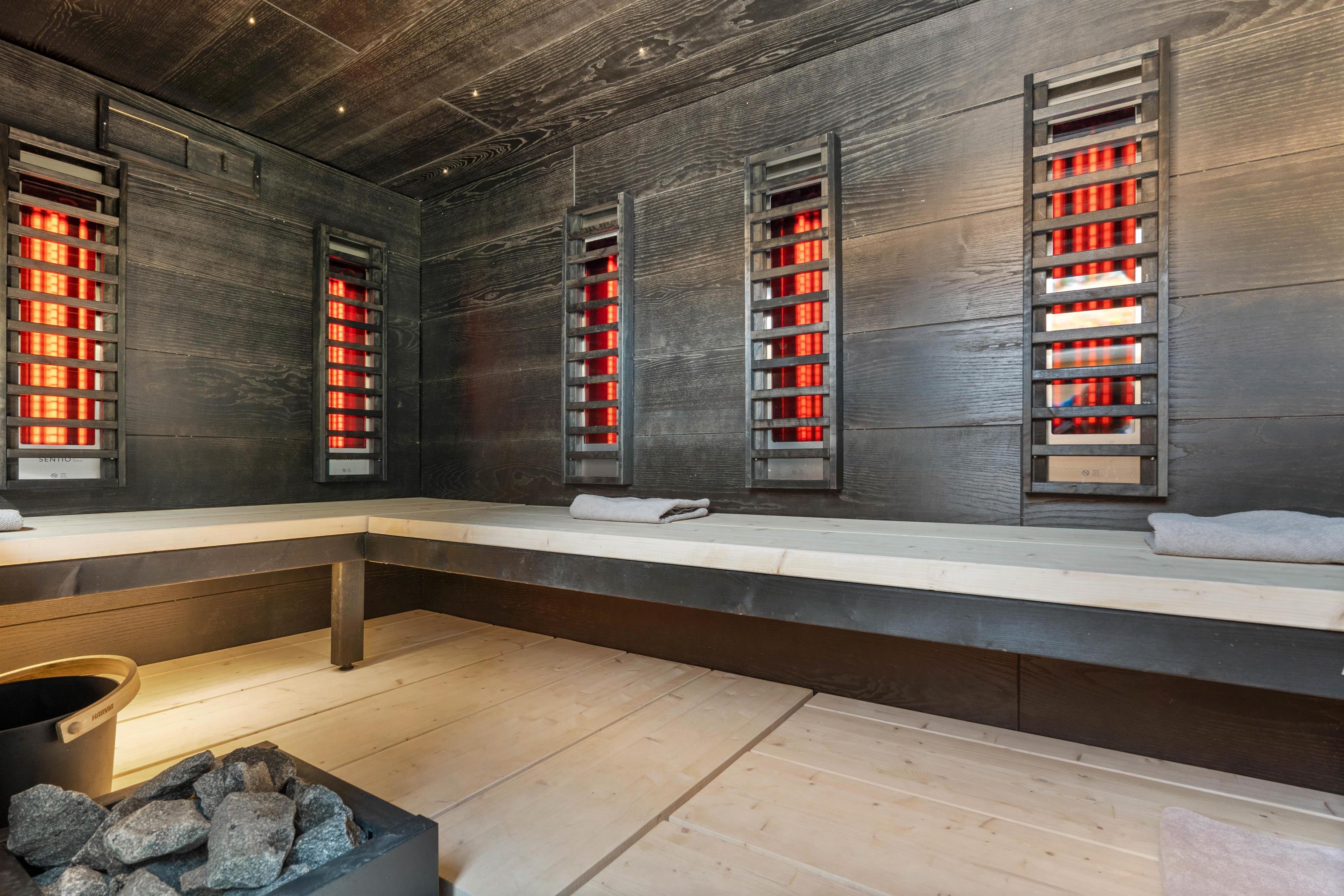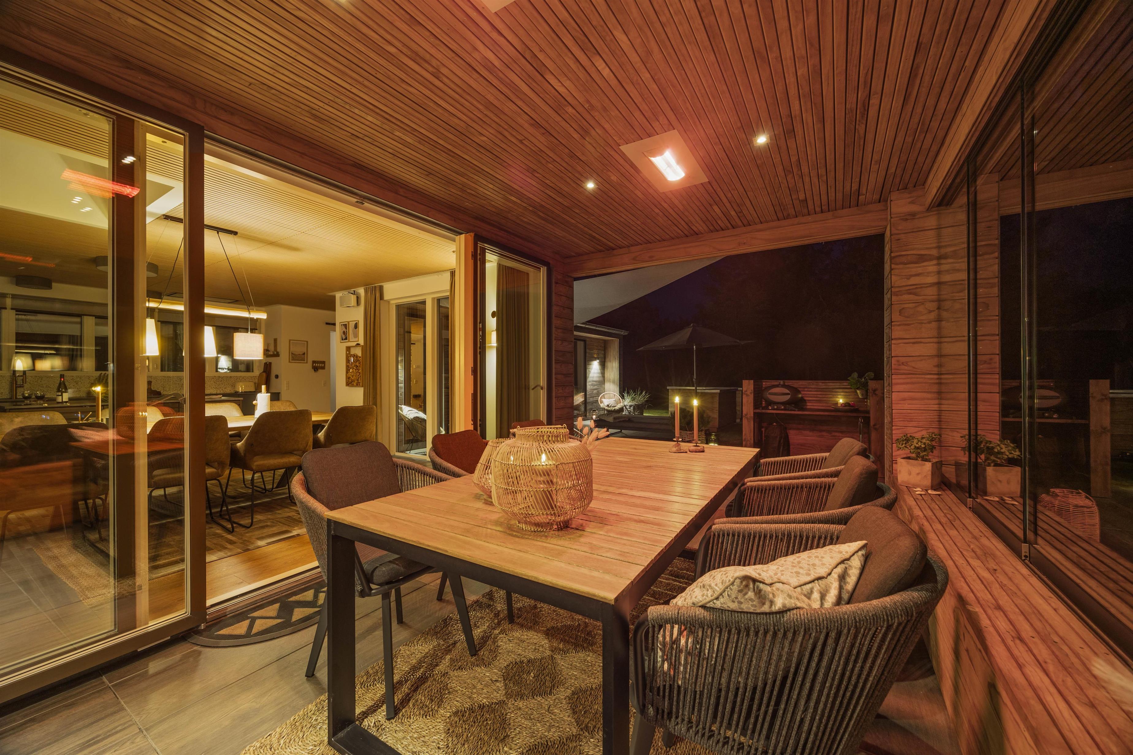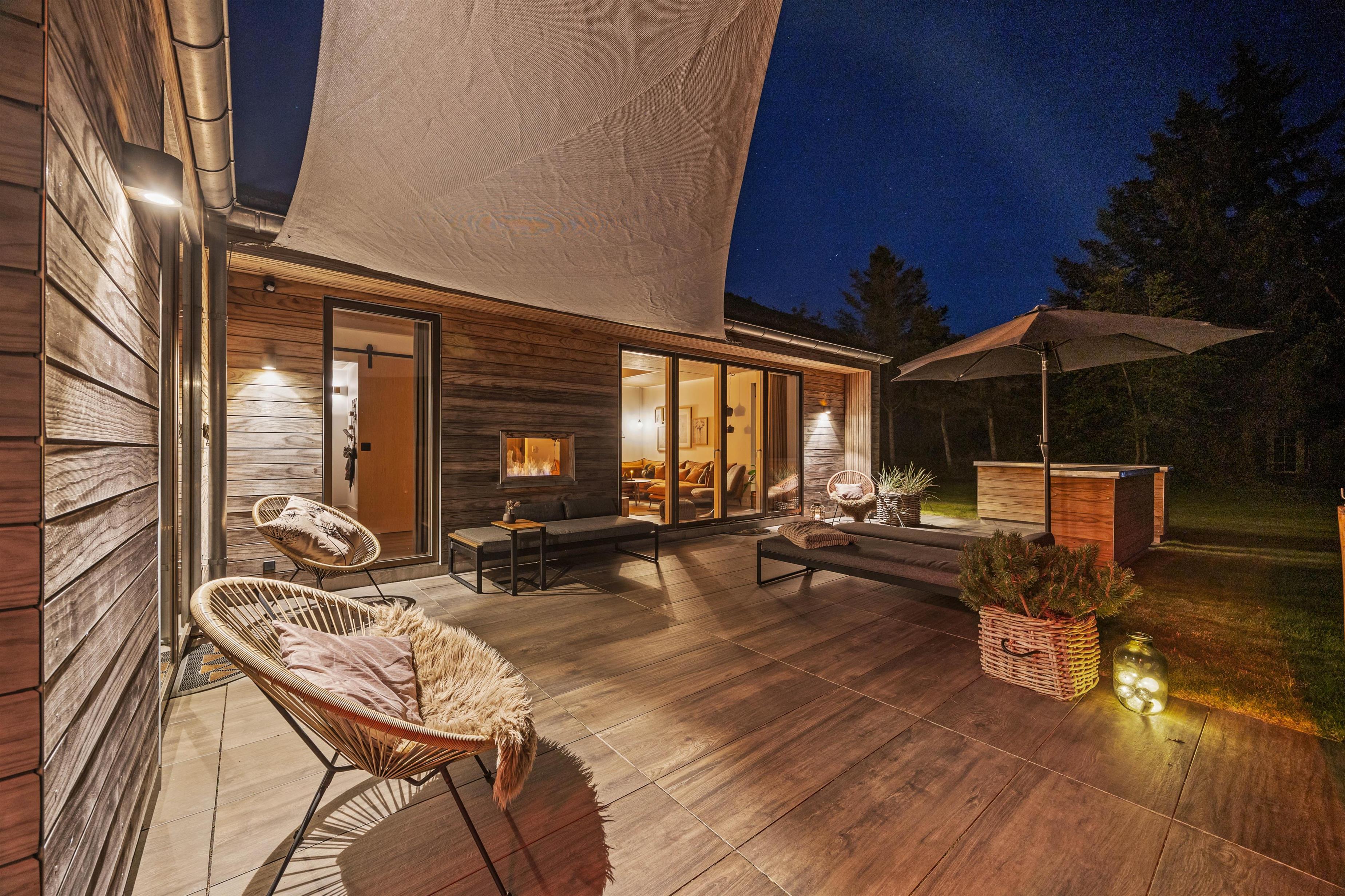 Stor terrasse med udespa, udesauna med infrarød varme og udendørs bruser