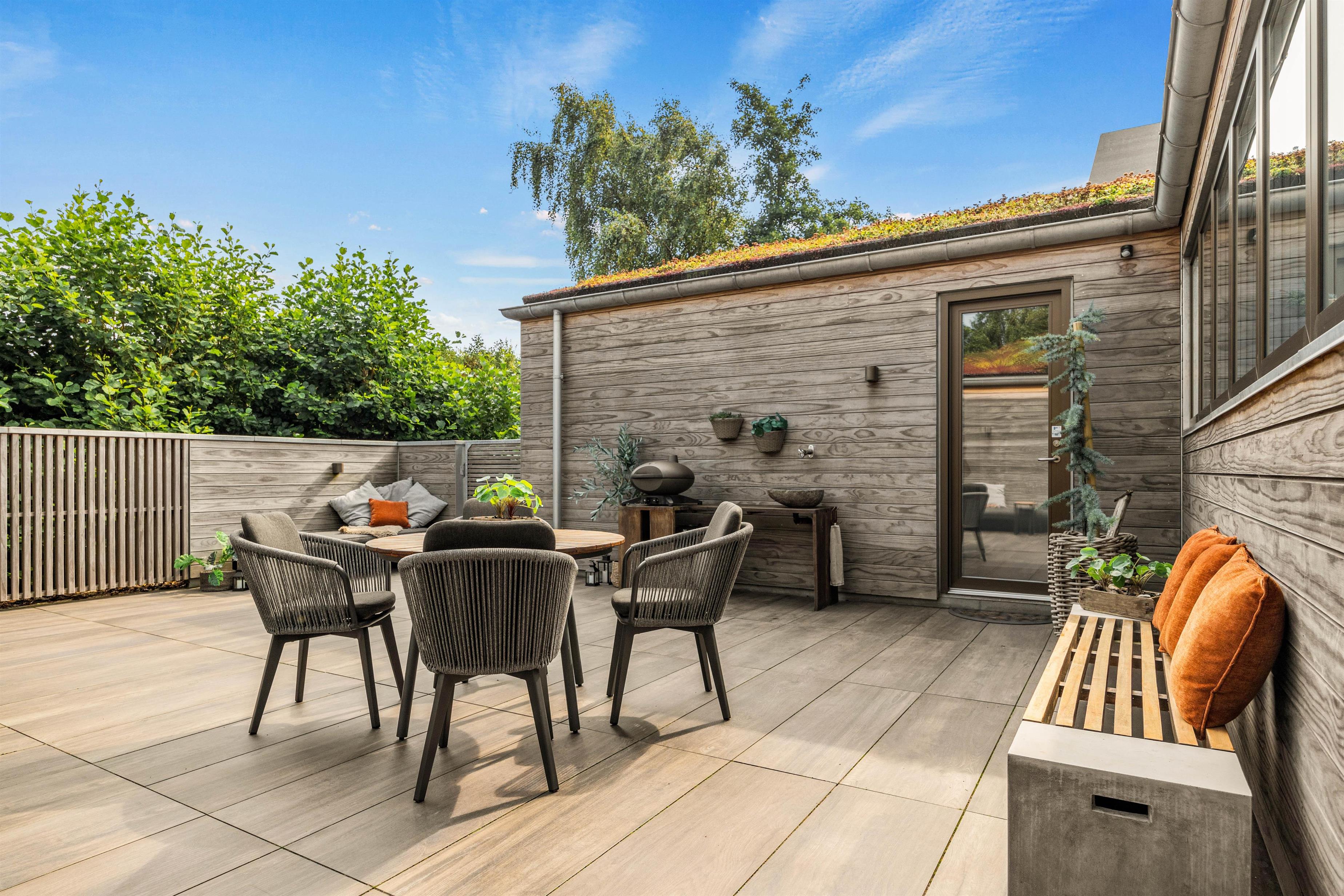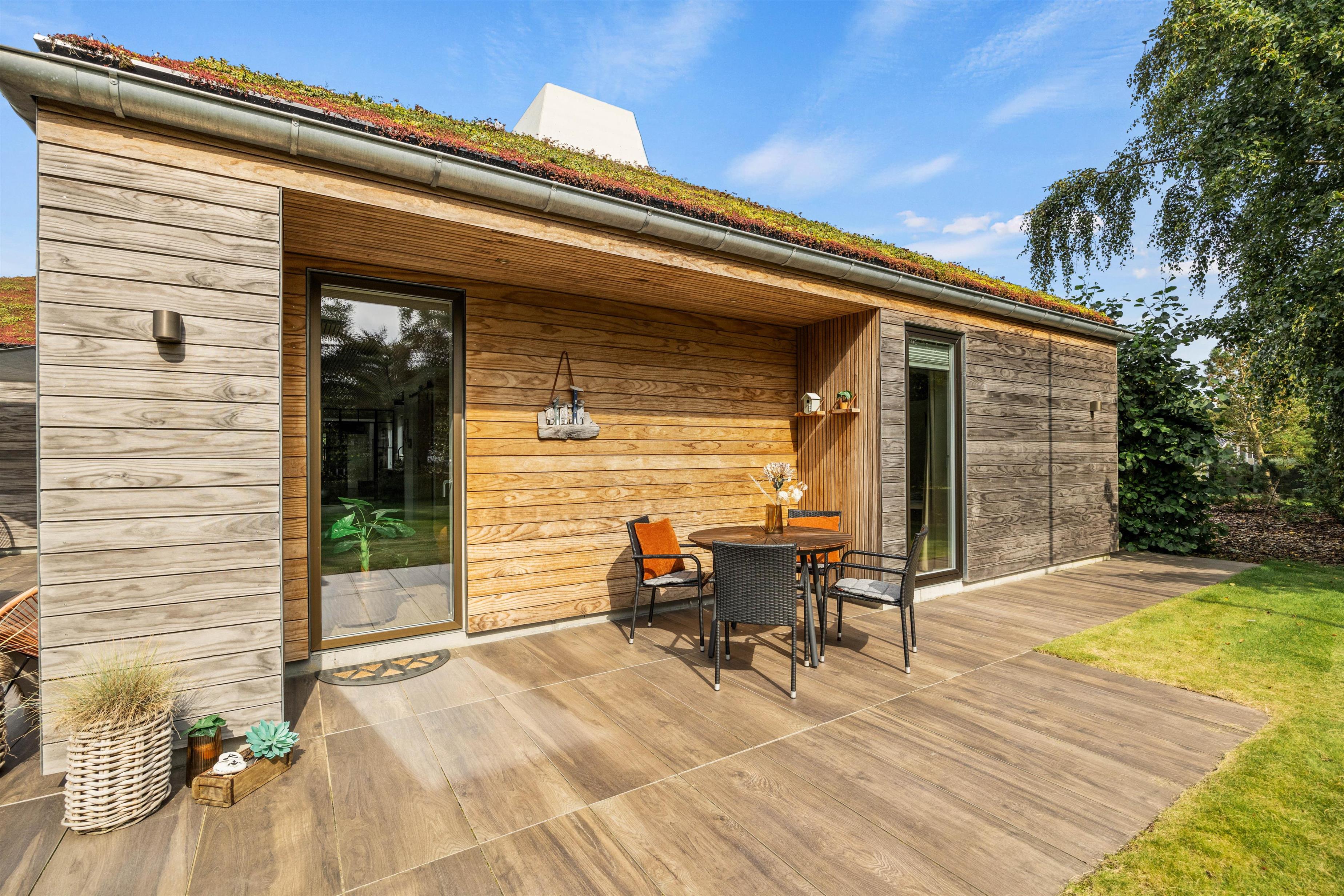 Det kommer blandt andet til udtryk i det organiske grønne sedum-tag, der ikke bare falder godt ind i naturen og giver øjet ro, men også understøtter biodiversitet og øger optaget af regnvand.