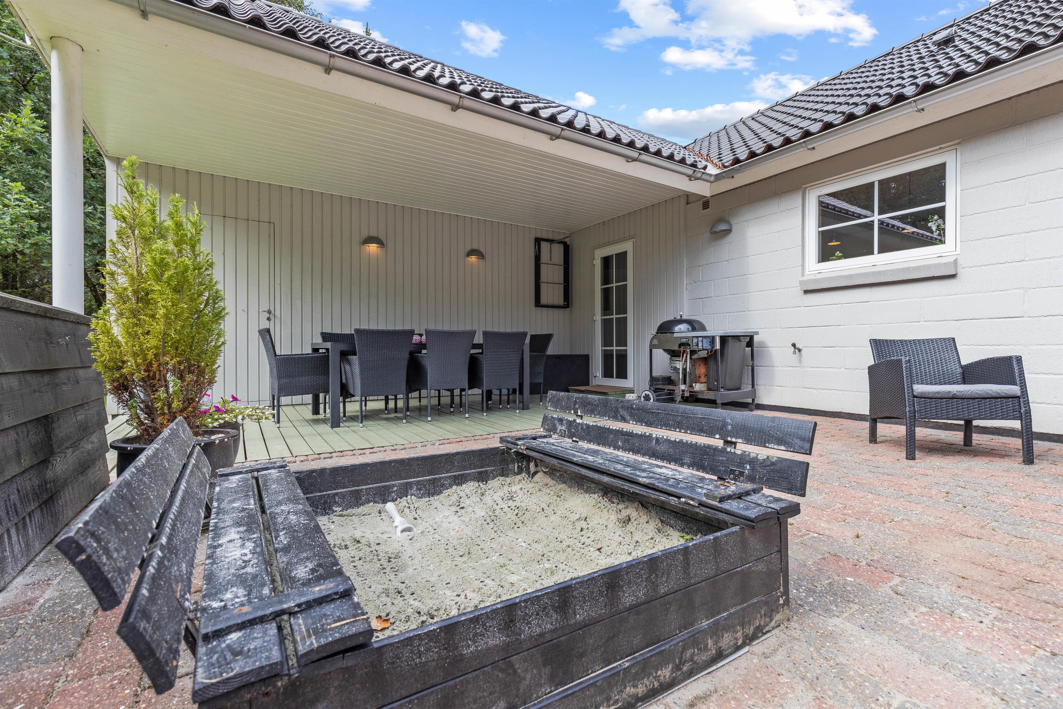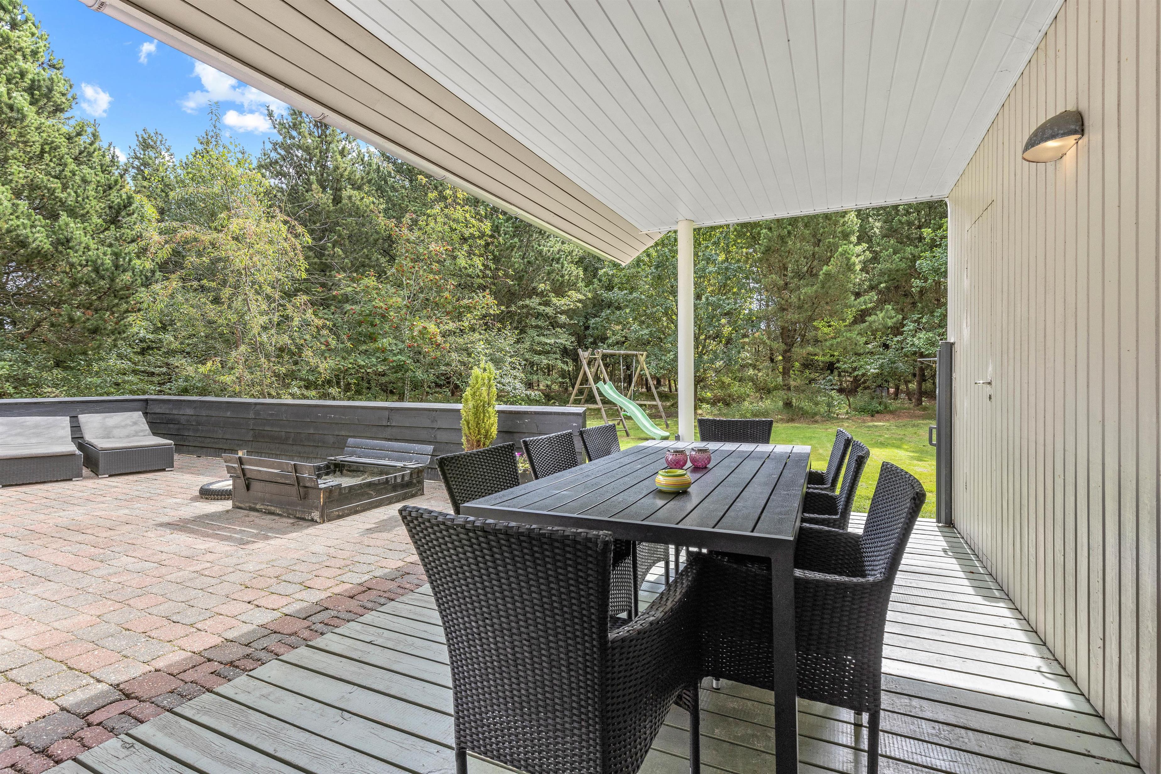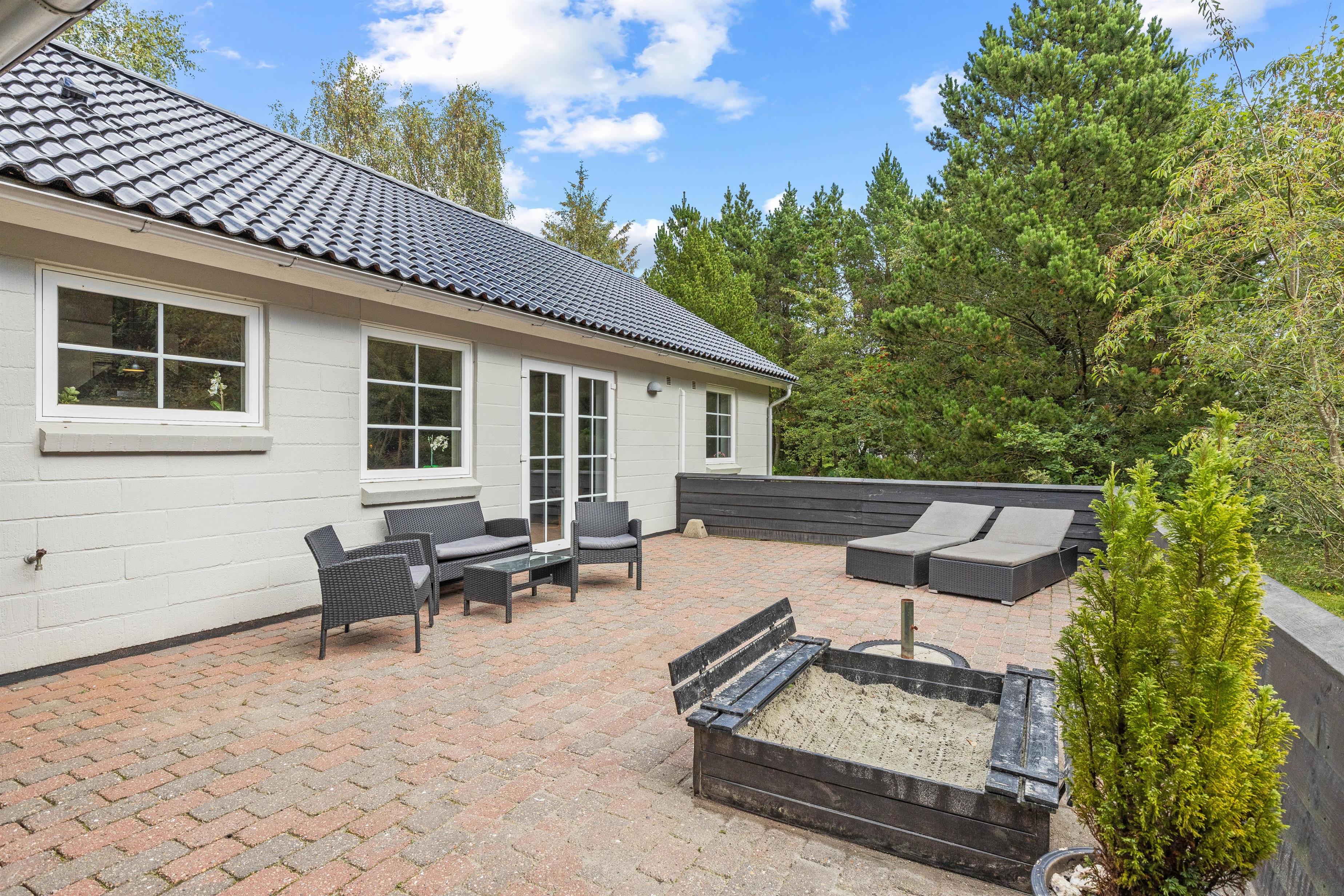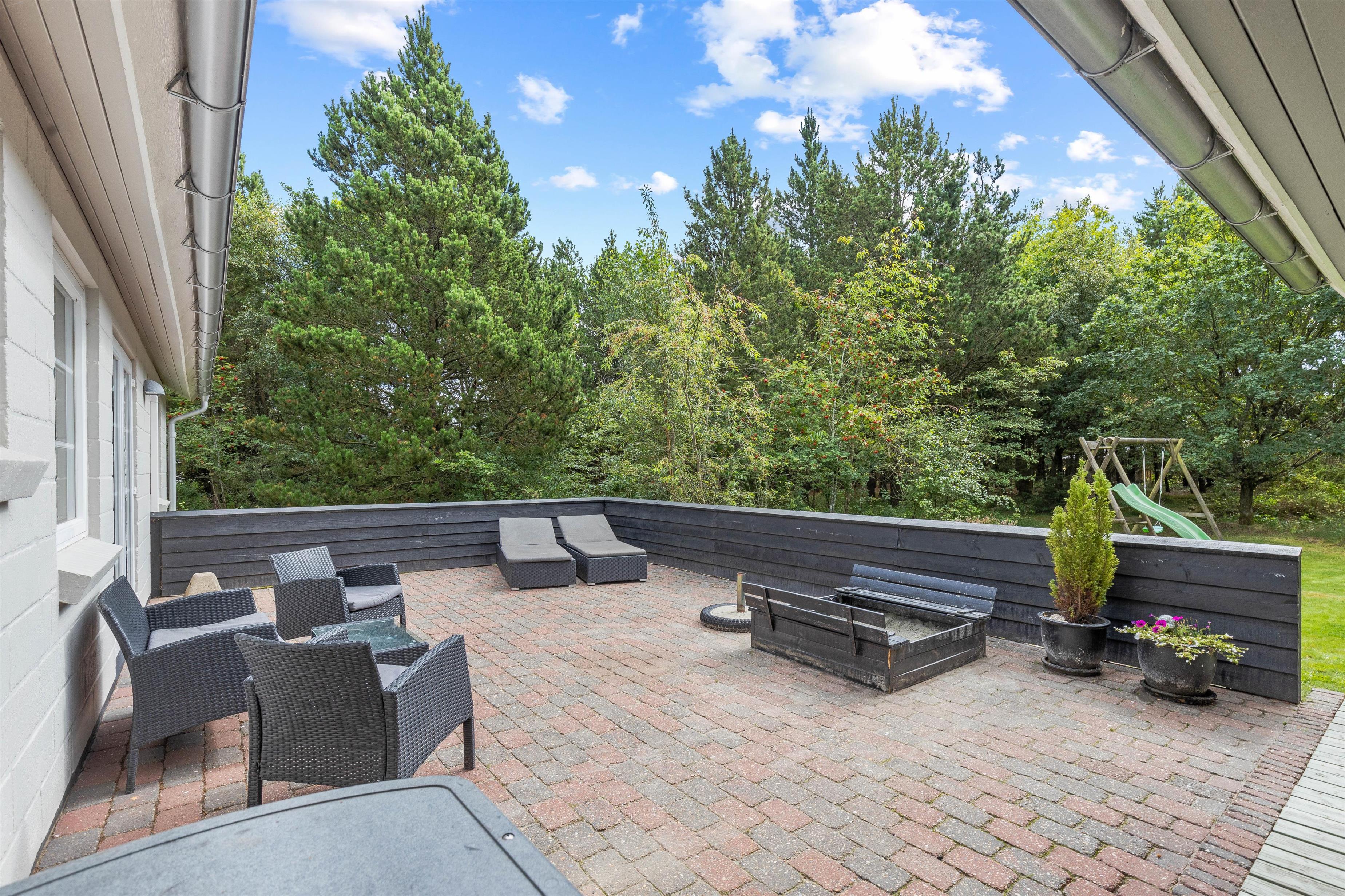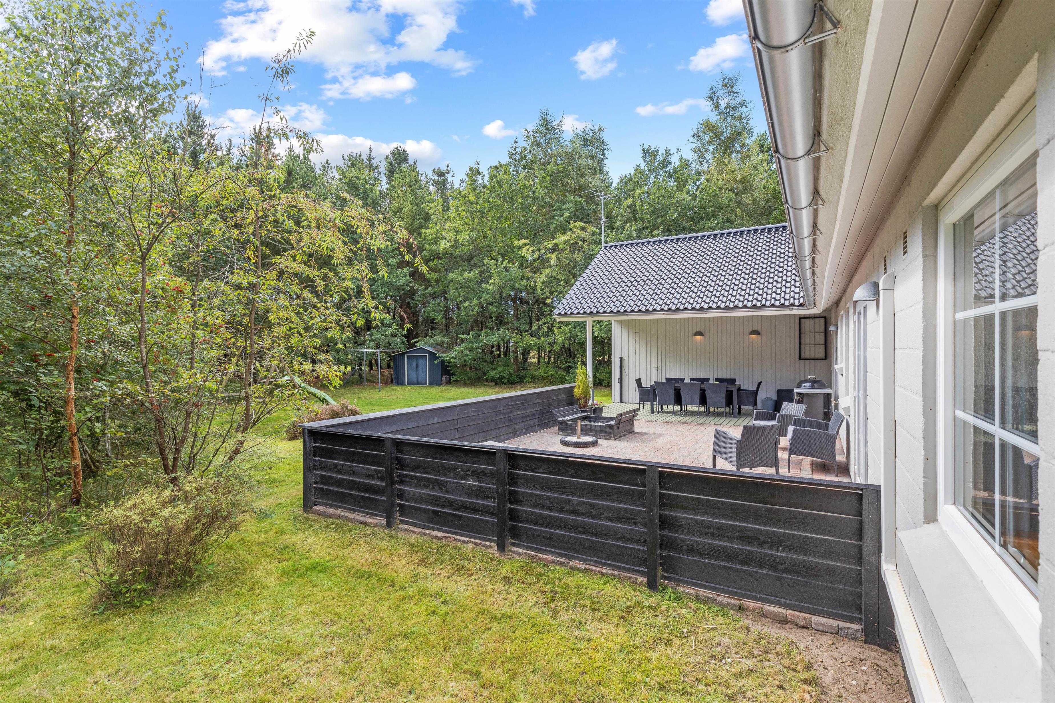Haven er velanlagt med masser af hyggelige kroge, og de store omkringlæggende træer afskærmer den store grund. På sydsiden af huset er den dejlige fliseterrasse, som er afskærmet og delvist overdækket. Her kan man tilbringe dagene med at spise morgenmad om morgenen, læse en bog i løbet af dagen, nyde wienerbrød sammen om eftermiddagen og runde aftenen af med en hyggelig grillaften, mens man tilbereder aftensmaden på grillen. I mellemtiden kan børnene boltre sig på den ca. 2700 m² store naturgrund.