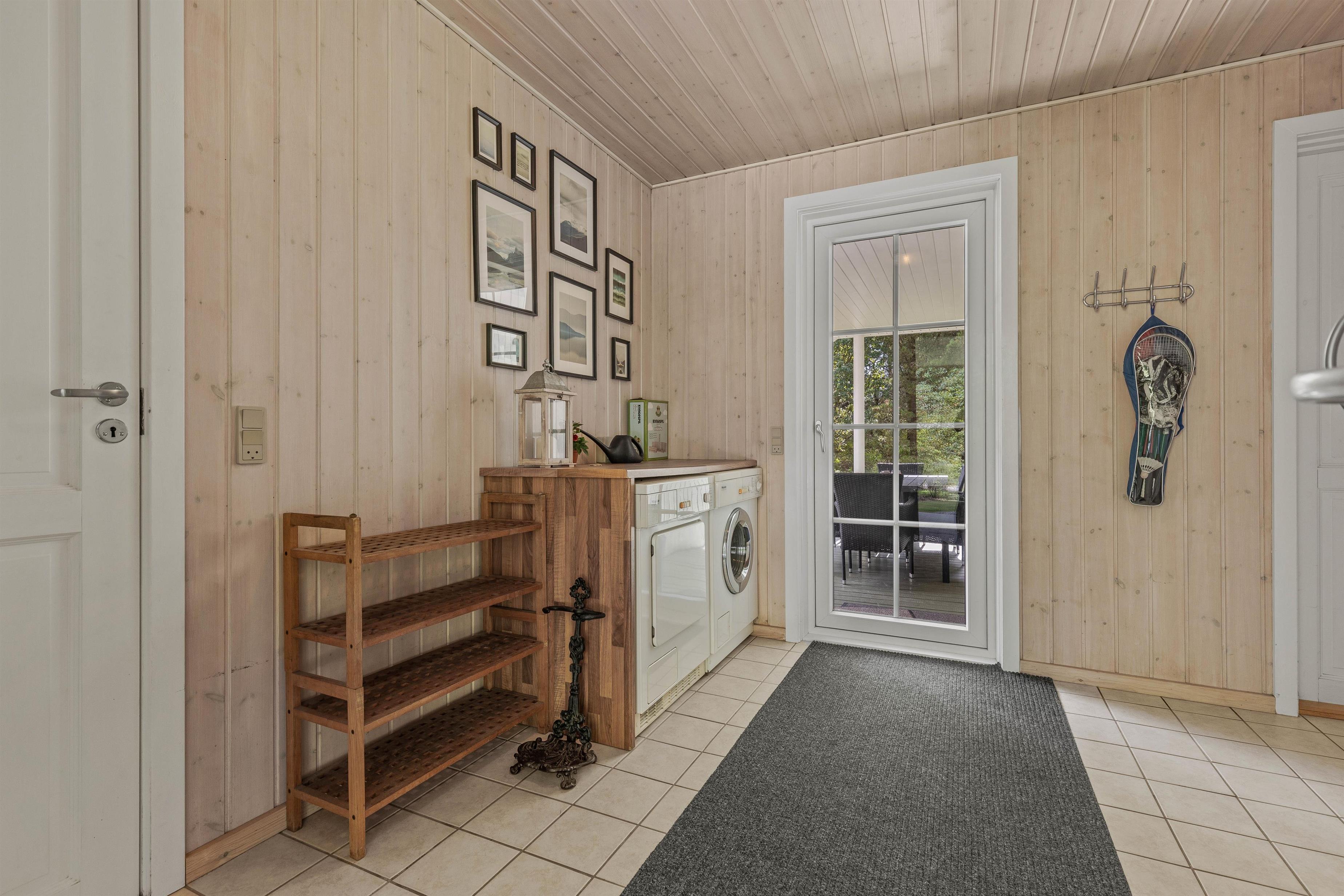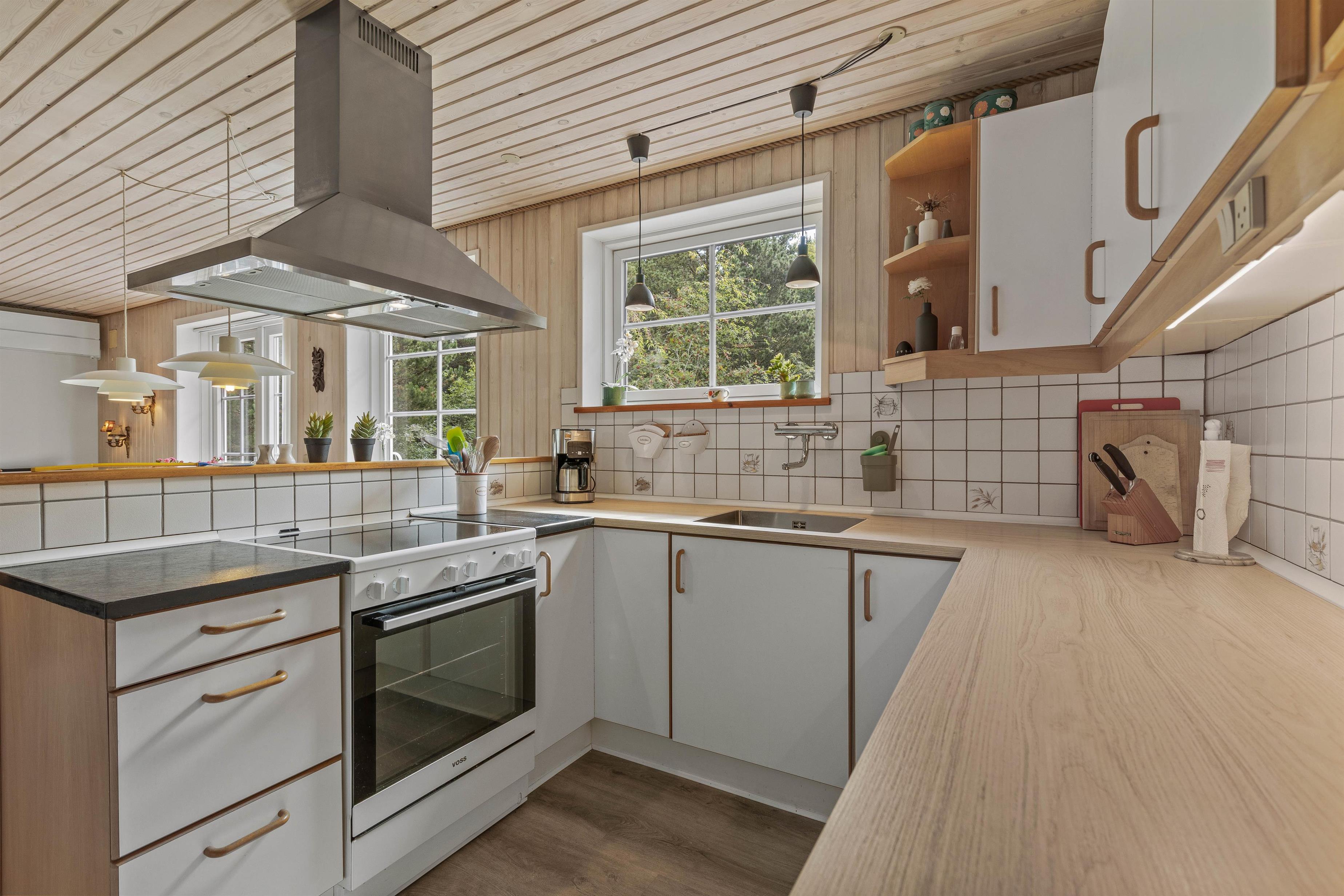 Sommerhusets alrum udgør jeres store samlingspunkt på ferien. Her kan I være sammen om at lave mad i køkkenet, spille spil omkring bordet eller streame film i tv’et vha. et Chromecast. På de regnfulde dage kan I tænde op i den knitrende brændeovn, som fuldender feriestemningen. Praktisk er her også en energibesparende varmepumpe, der holder energiforbruget nede og sørger for et behageligt indeklima. Fra spisestuen er der direkte udgang til terrasse og have.
