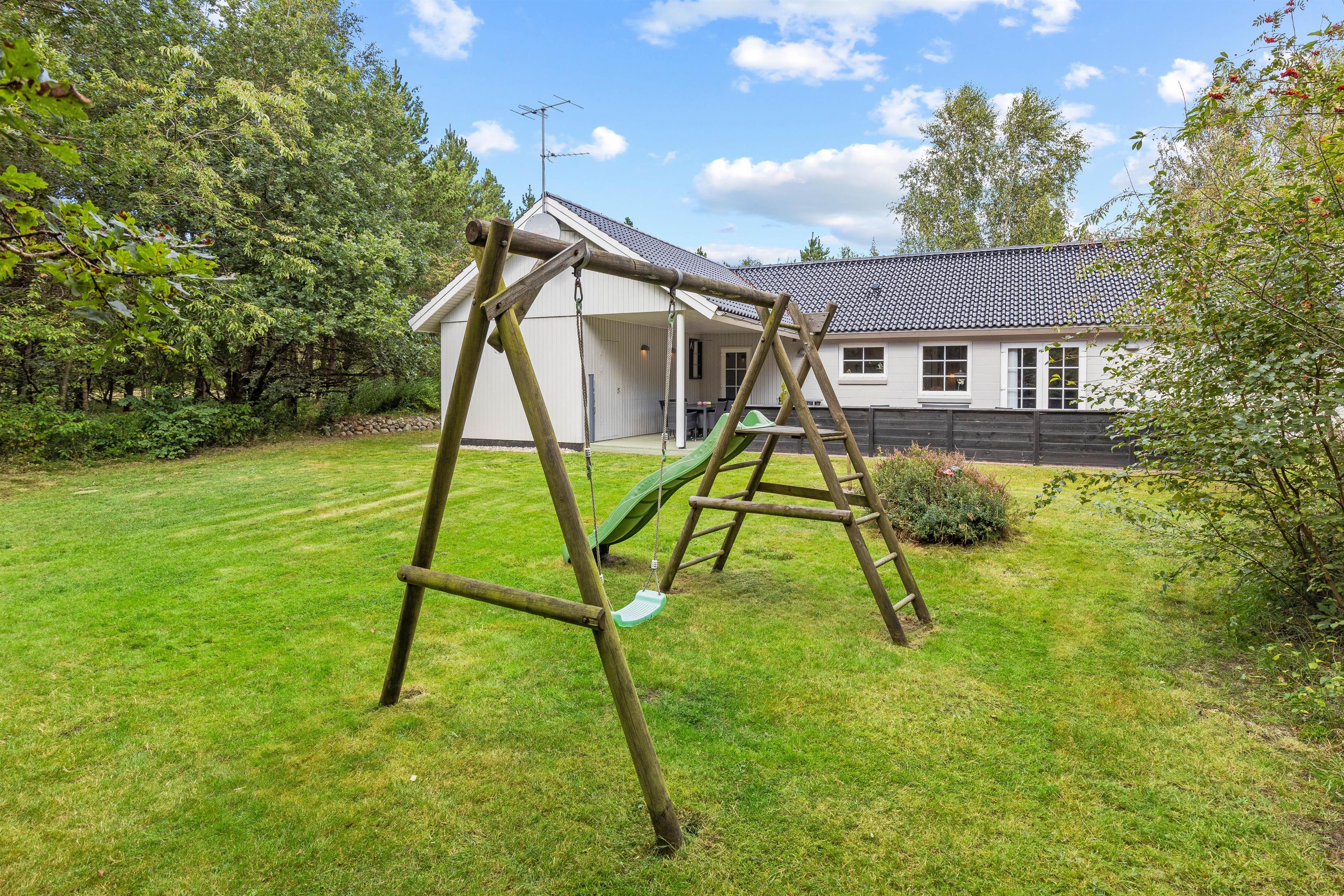 Den flade græsplæne er perfekt til alt fra kongespil til fodbold, mens her også findes en sandkasse, gynger og ruchebane til de mindste.