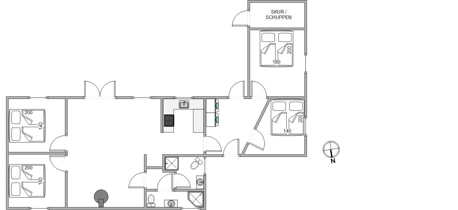 I det 115 kvadratmeter praktiske sommerhus på Ved Heksebjerg 16 i Blåvand bliver I budt inden for af den hyggelige indretning, der er med til at skabe den helt rette ferieatmosfære. Her er plads til otte gæster plus en hund. Her er en praktisk rumfordeling med et fint bryggers og soveafdeling i begge ender. Her venter jer fire gode og rummelige soveværelser, hvor I kan få jeres skønhedssøvn. Når I står op næste morgen, slipper I for at fryse jeres tæer takket være gulvvarmen på badeværelserne.