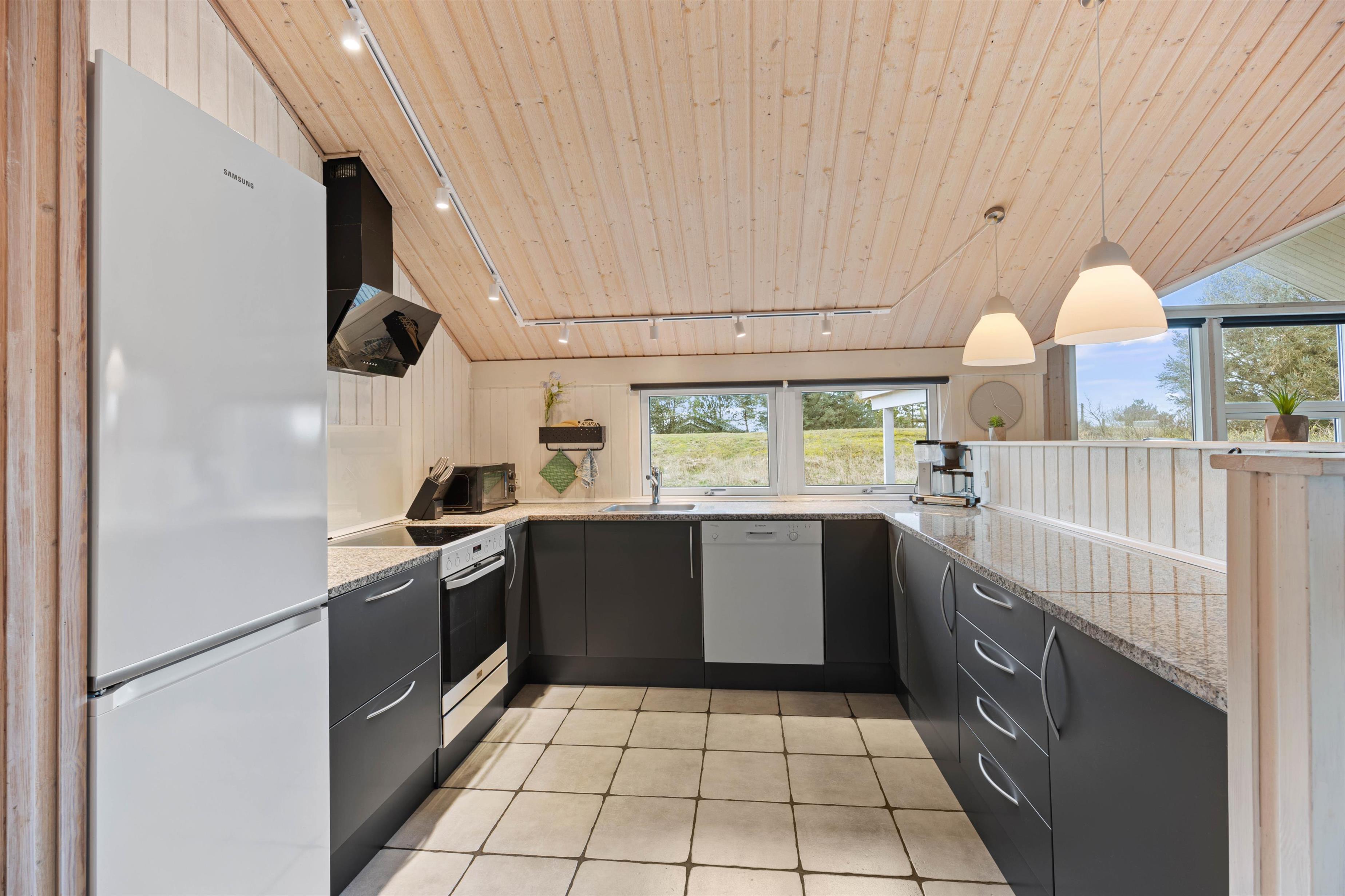 Når I træder inden for i sommerhuset på Krogsande 36 i Blåvand, vil I opleve en moderne indretning, som I straks vil finde jer godt tilpas i på ferien. I feriehuset er der lyst, højt til loftet og et godt lysindfald, der tilsammen skaber den helt rette ferieatmosfære.