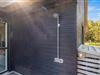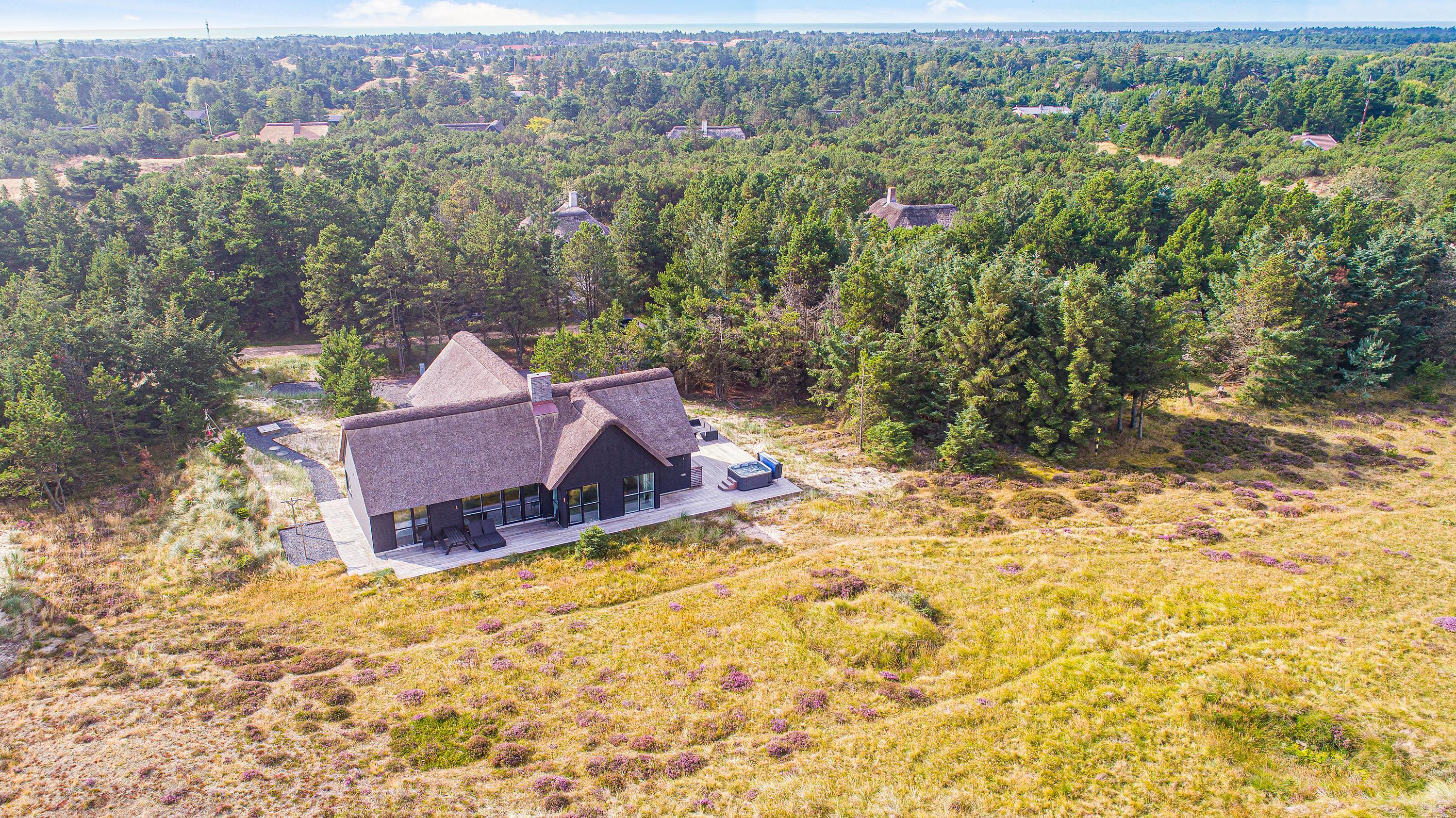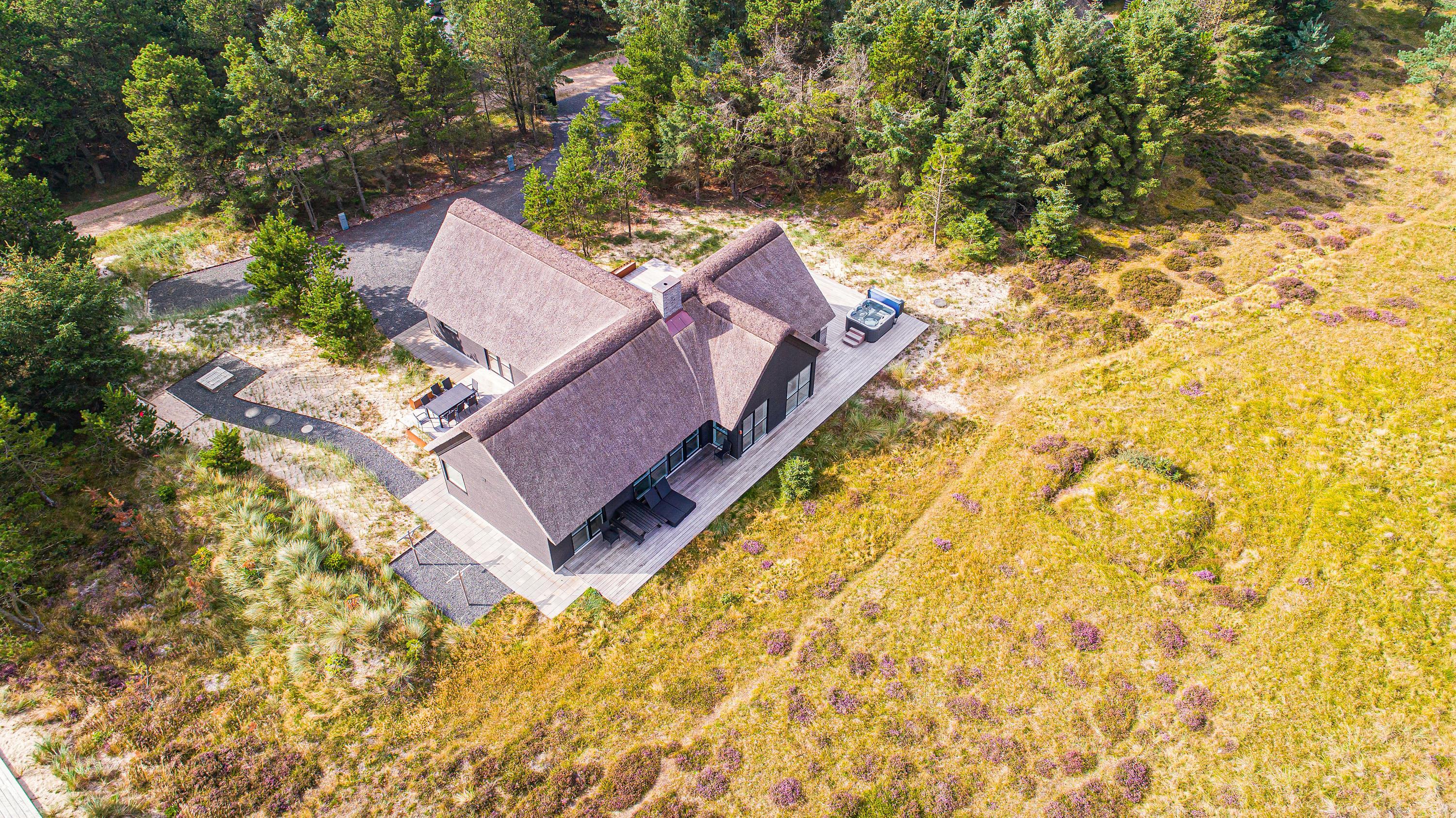 Den luksuriøse stil fortsætter udenfor. Her står et stort udendørs spabad på terrassen klar til at give jer de skønneste wellnessoplevelser under åben himmel, mens I kan nyde panoramaudsigten til det uberørte hedelandskab. Et lille ekstra på terrassen er udendørsbruseren, hvor I kan få jer en skyller i det fri eller hurtigt få fødderne rene for sand efter en strandtur. Udebruseren er kun til rådighed fra 1. april til 31. oktober.