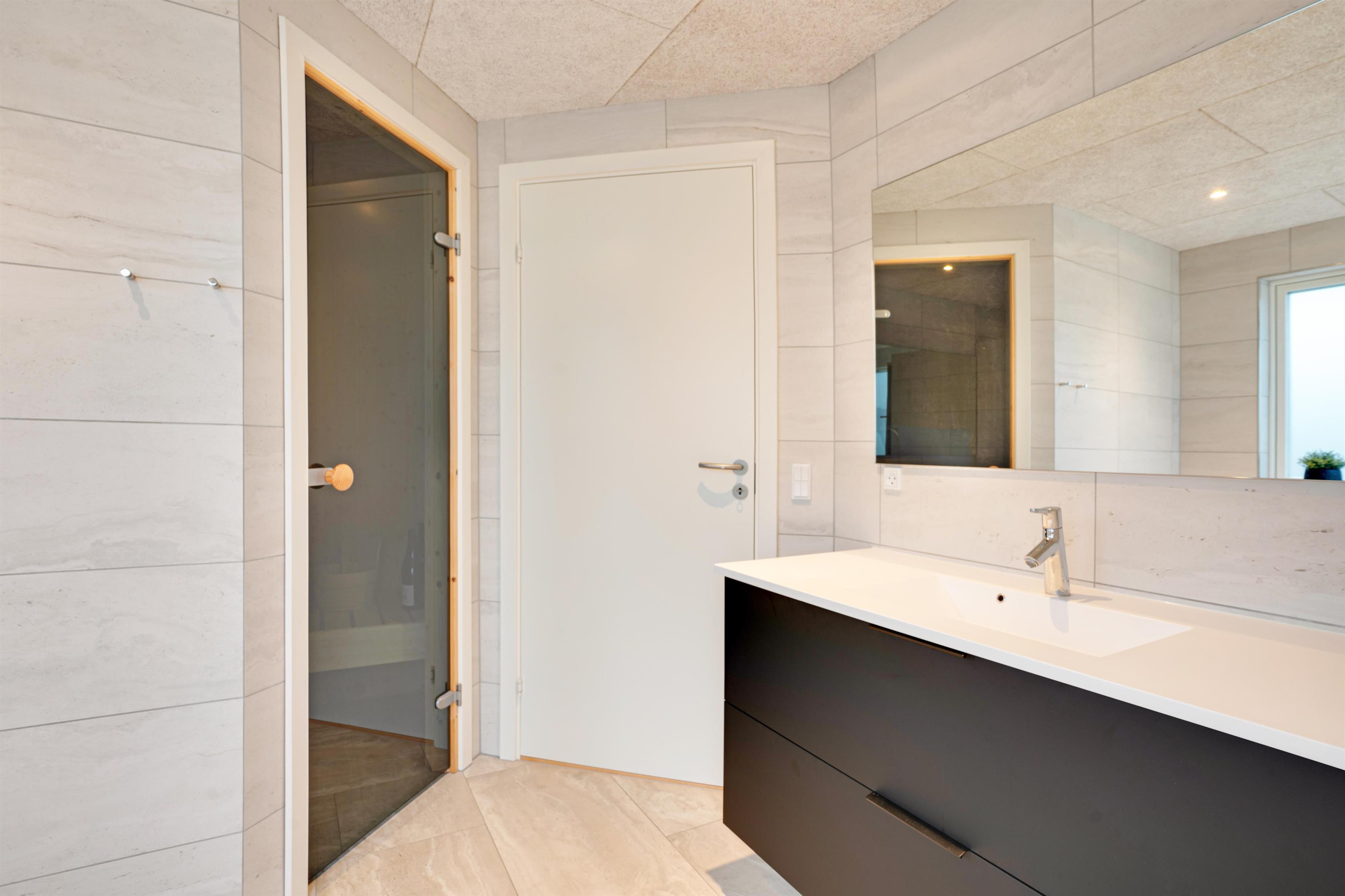På Kallesmærskvej 32 er der dømt masser af luksus og velvære på ferien. Indvendigt får I blandt andet et stort wellnessbadeværelse, hvor der både er adgang til sauna og spabad – den perfekte destination efter en gåtur i den friske vestenvind.