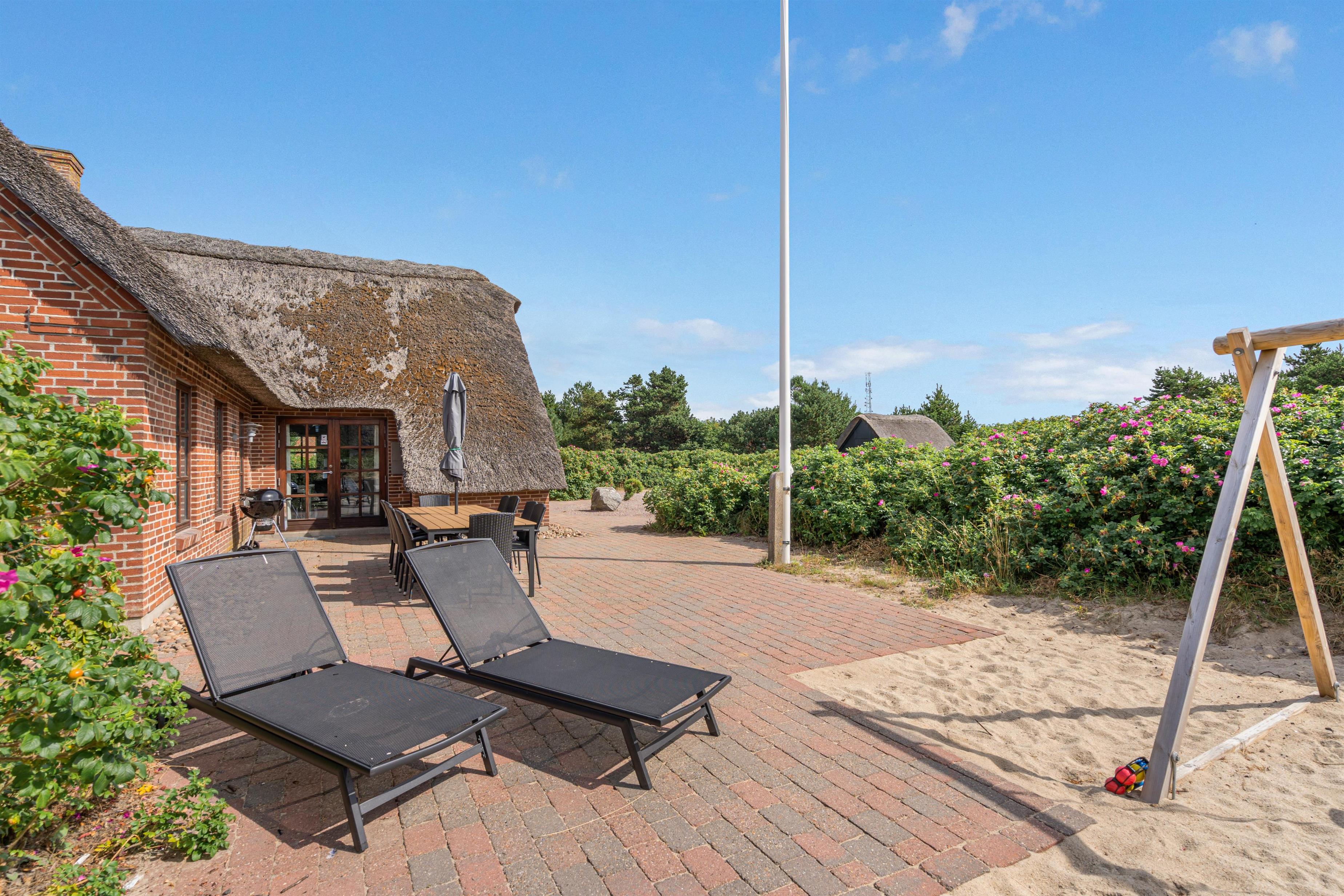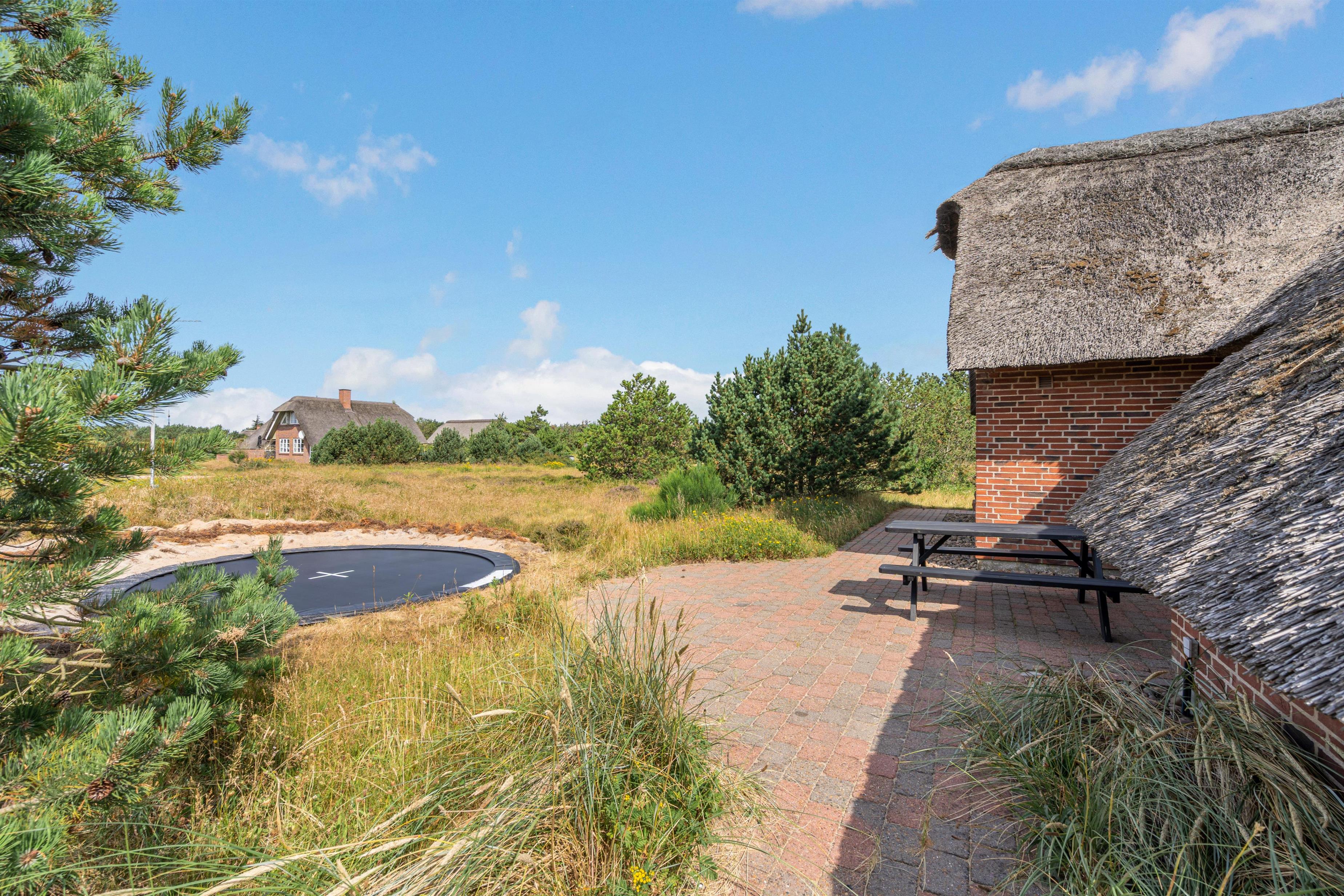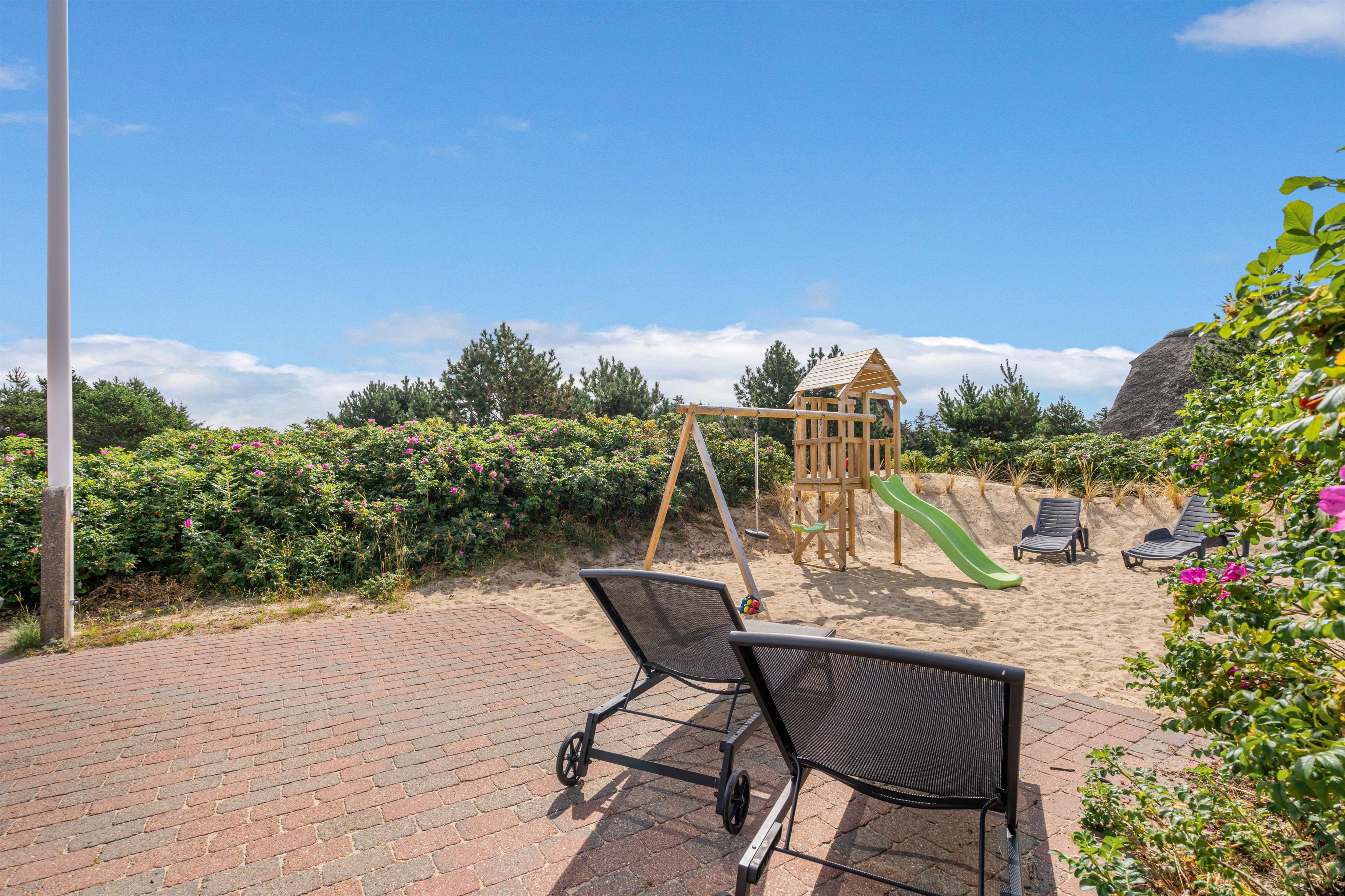 Der er selvfølgelig også tænkt på feriens yngste gæster. Til børnene er der et stort, lækkert sandområde med legetårn og gynger samt en trampolin bag feriehuset, hvor de kan tilbringe mange timer med leg.
