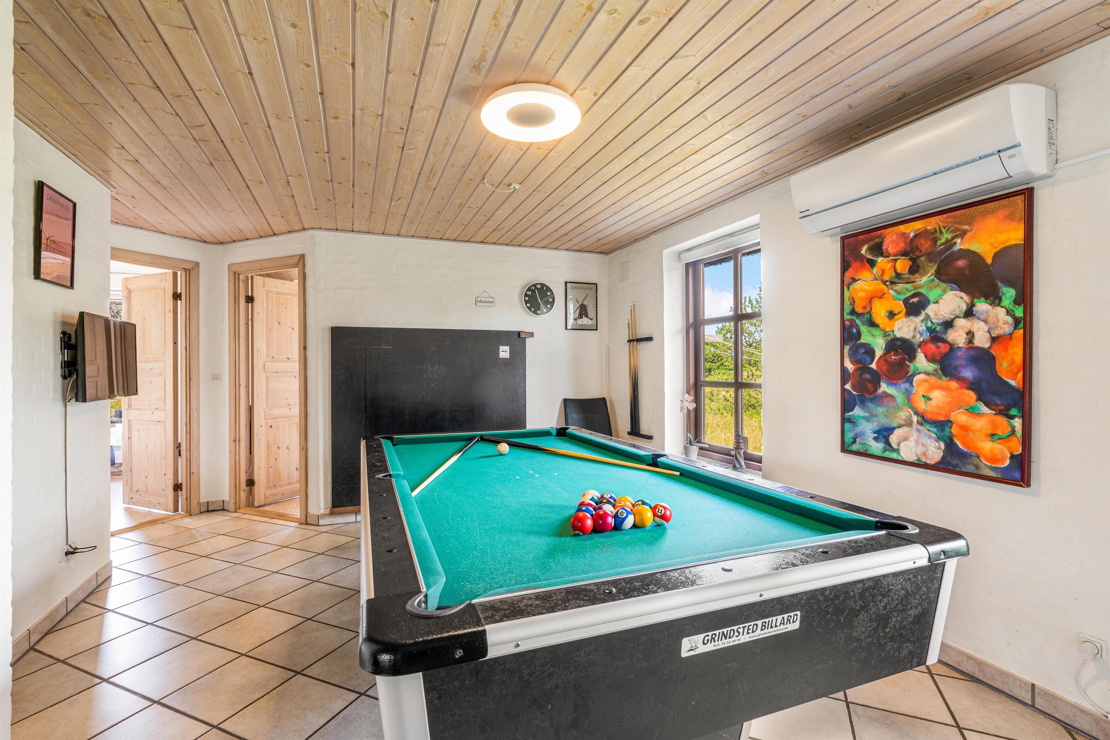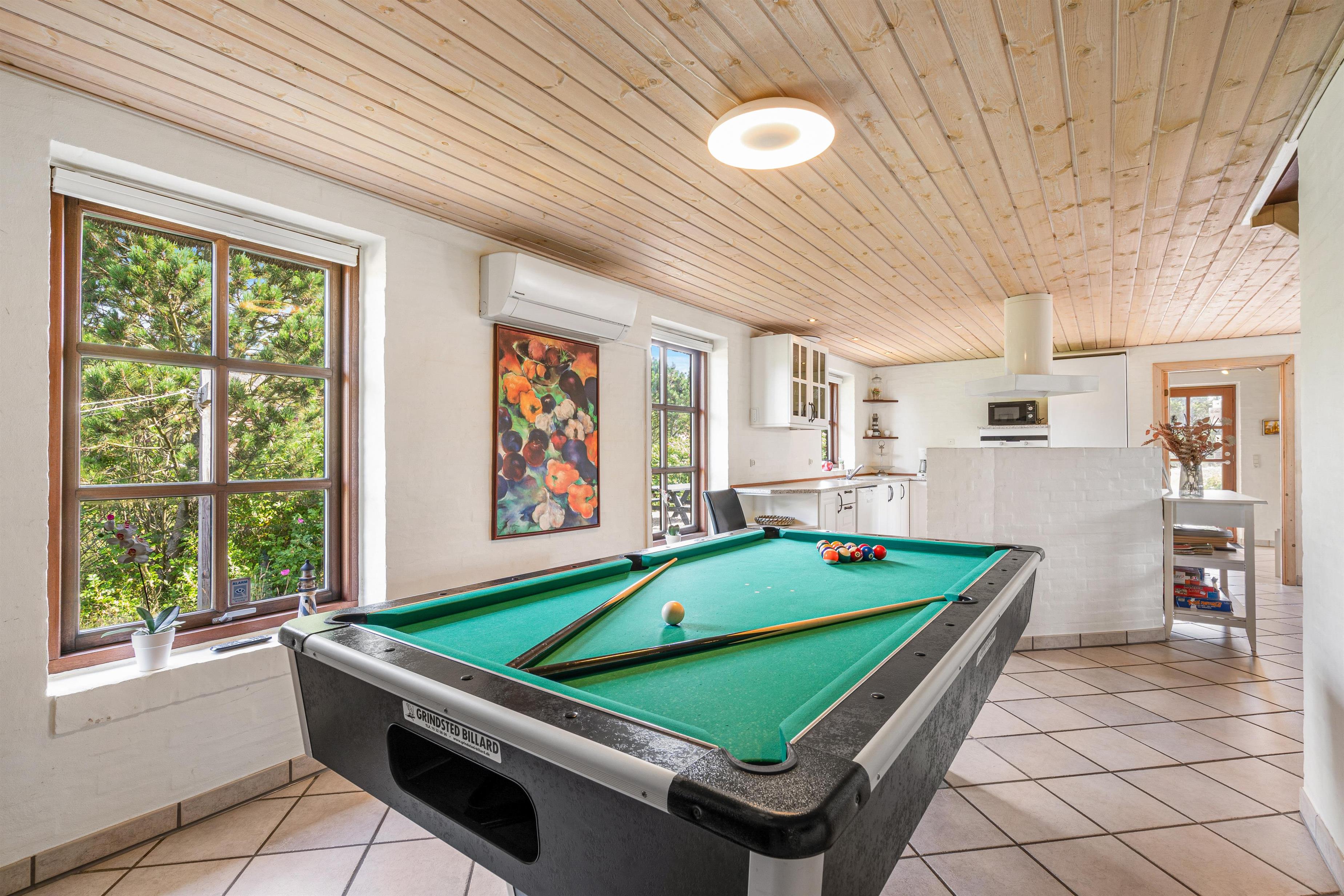 I sommerhuset vil I opleve en hyggelig indretning, hvor I hurtigt vil føle jer hjemme. Her er der lagt op til mange skønne feriestunder for hele ferieflokken, som I blandt andet kan tilbringe i alrummet i stueetagen.