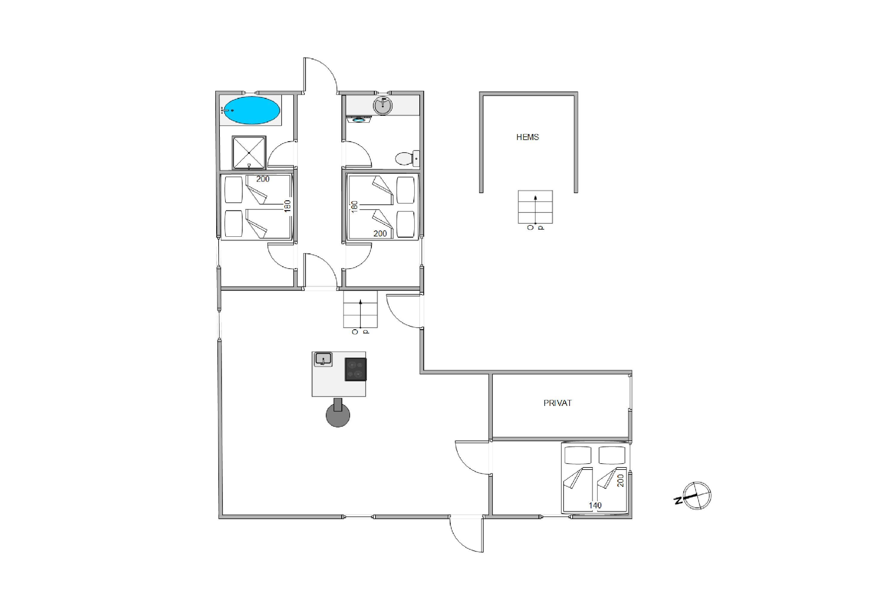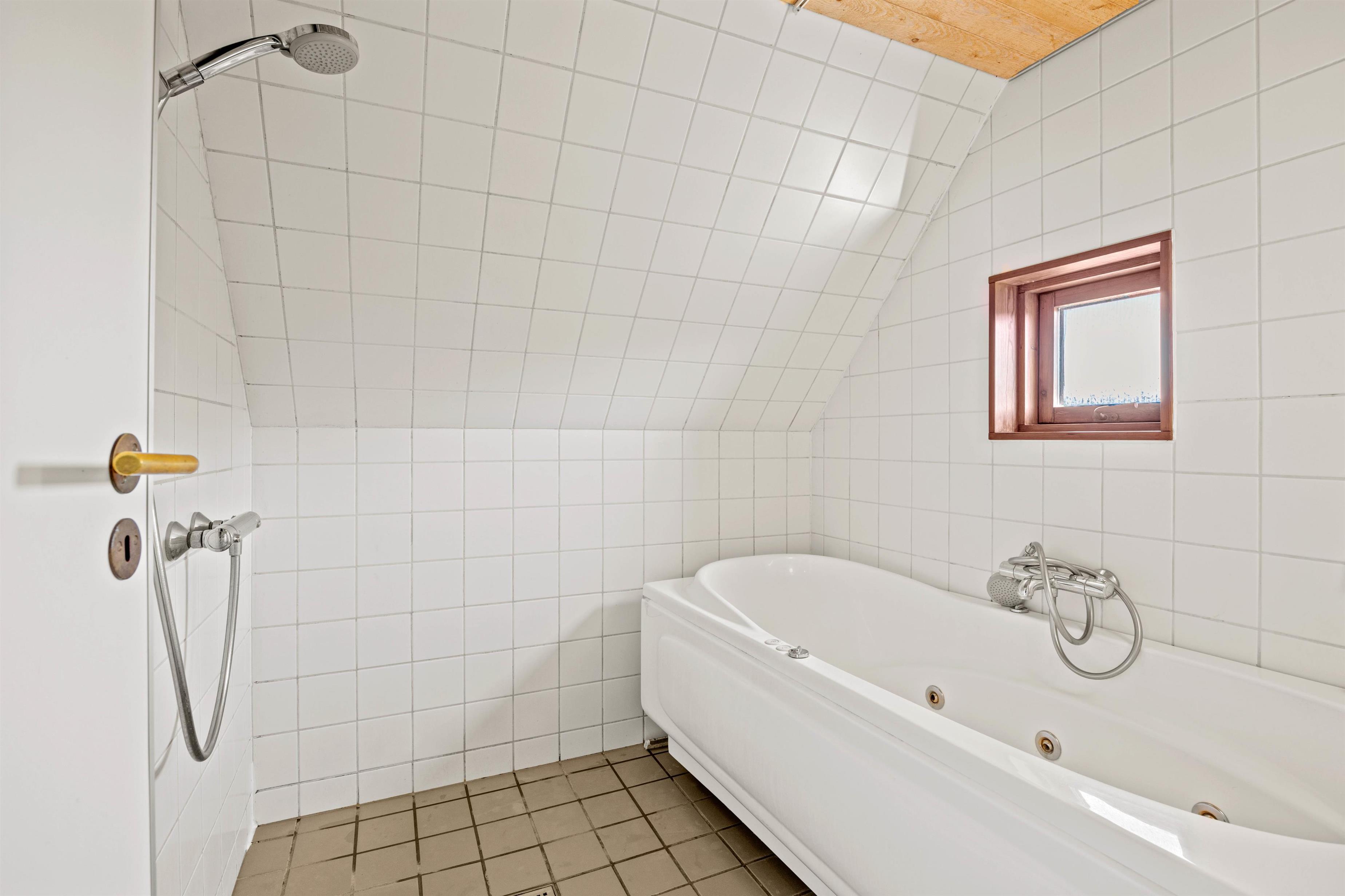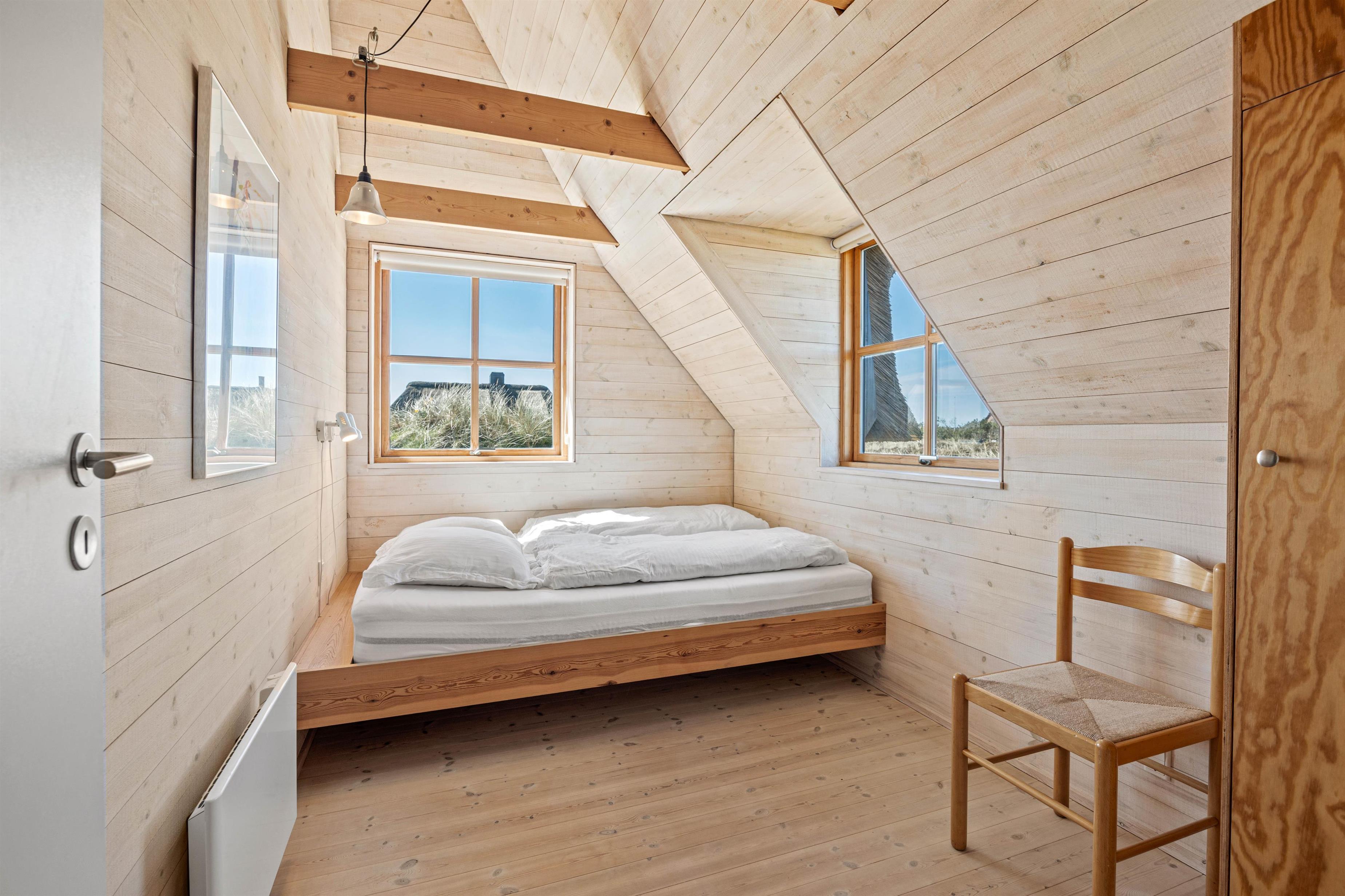 Badeværelset er opdelt med et separat rum, hvor spabad til to personer og bruseniche findes, begge med gulvvarme for ekstra komfort. Toilet og håndvask ligger i et separat rum. Tre soveværelser giver plads til en god nats søvn, hvor I kan lade batterierne op efter en dag ved havet eller på opdagelse i området.