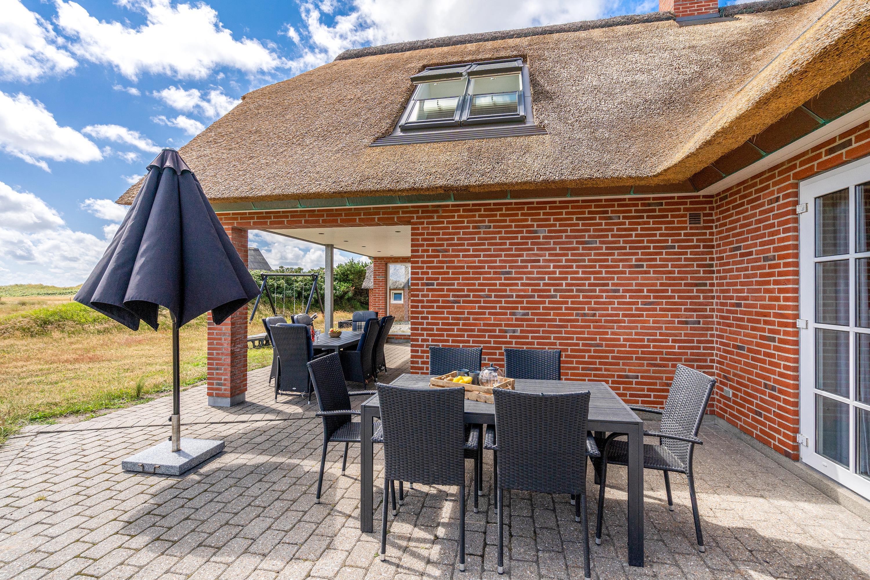 Ferieboligen er tilbygget og renoveret i 2020. I stueplan er der en stor overdækket terrasse med udgang direkte fra spisestuen. Derudover er der adgang til solrige terrasser med havudsigt direkte fra både køkken, spisestue og wellness-afdeling. På terrassen kan familien samles om grillen og sammen tilberede dagens måltider, ligesom der også er plads til afslapning på solsengene - med havets bølgeskvulp som behagelig baggrundsmusik.