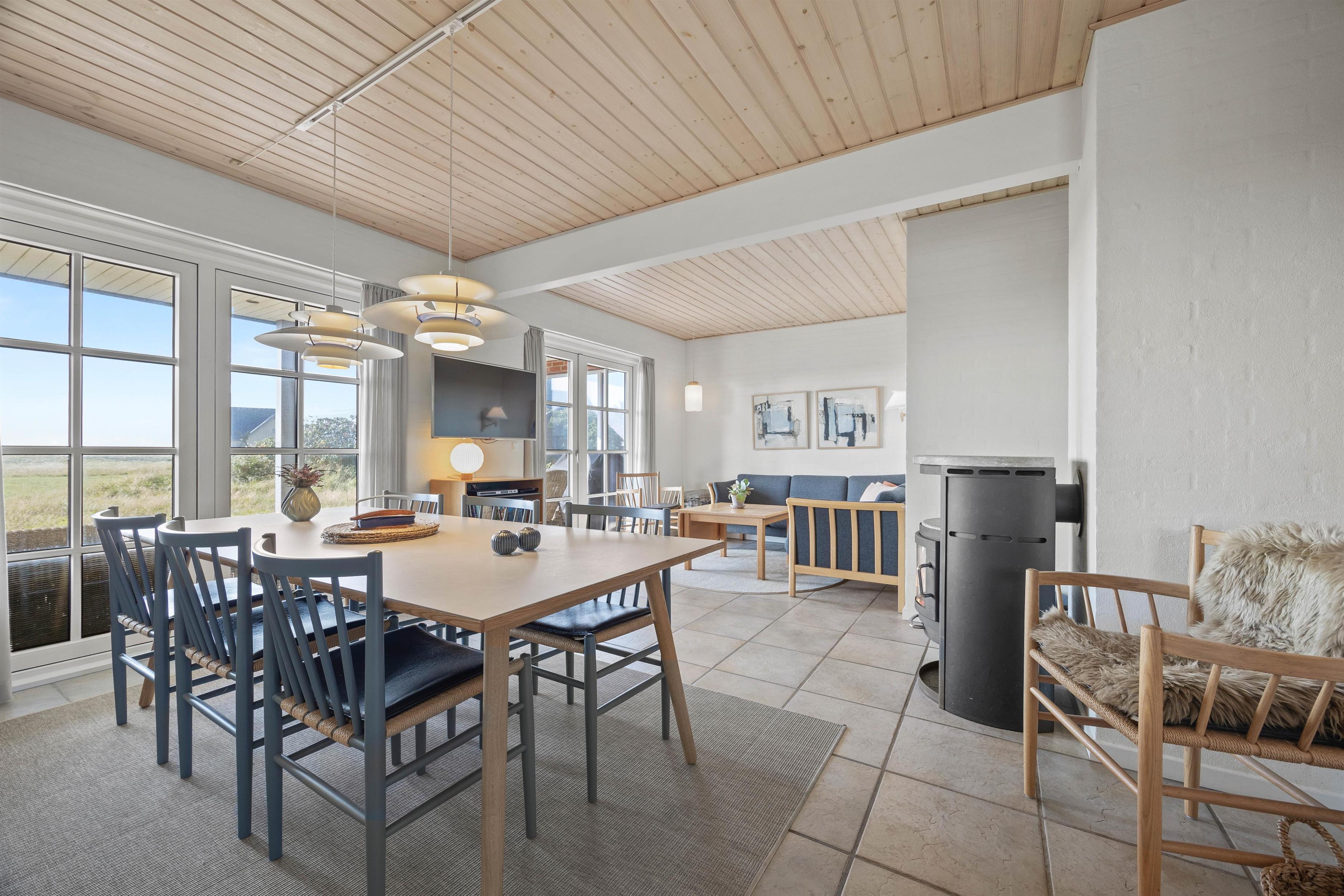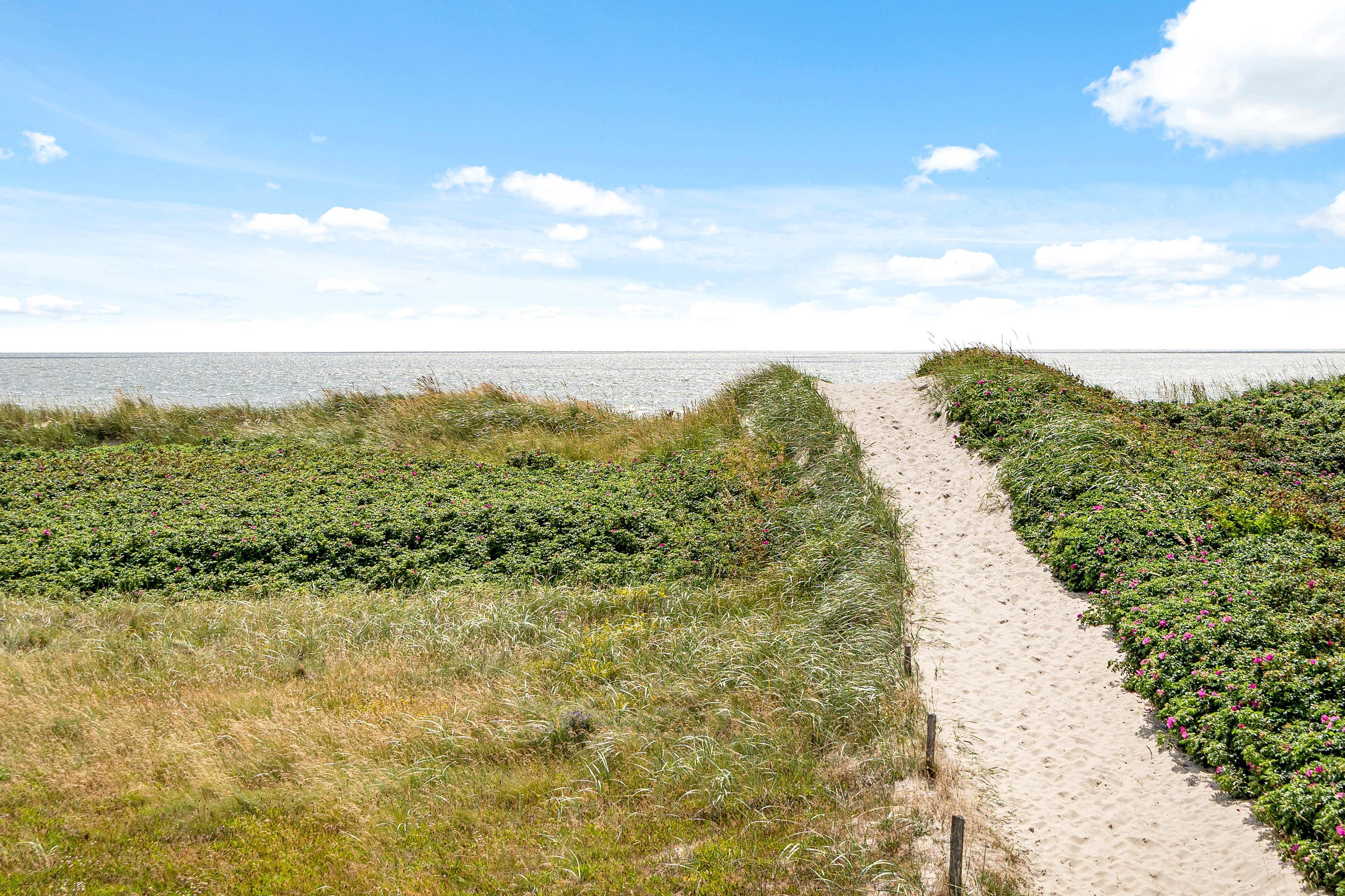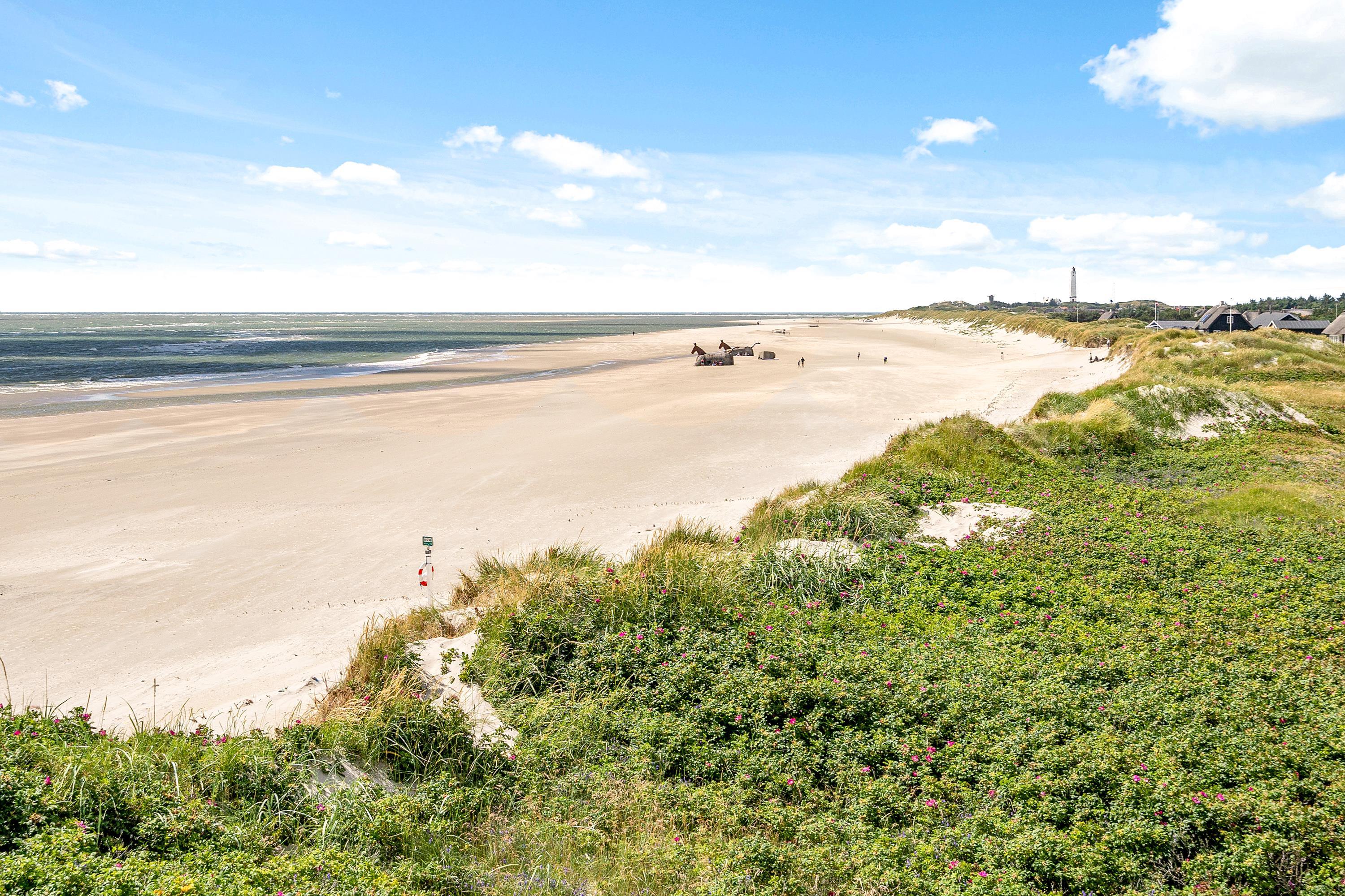 Her har I chancen for at tilbringe ferien i første klitrække helt ned til lækker hvid sandstrand og med frit udsyn over Vesterhavet. I kan fra sommerhuset iagttage skibene på havet eller gå direkte via egen privat sti til stranden. Her kan man hurtigt komme ned og få en morgendukkert - eller måske gå en frisk tur langs stranden til Danmarks vestligste punkt med Blåvandshuk Fyr, hvor dagen kan afsluttes med at nyde den smukke solnedgang, når solens sidste stråler forsvinder i havet.