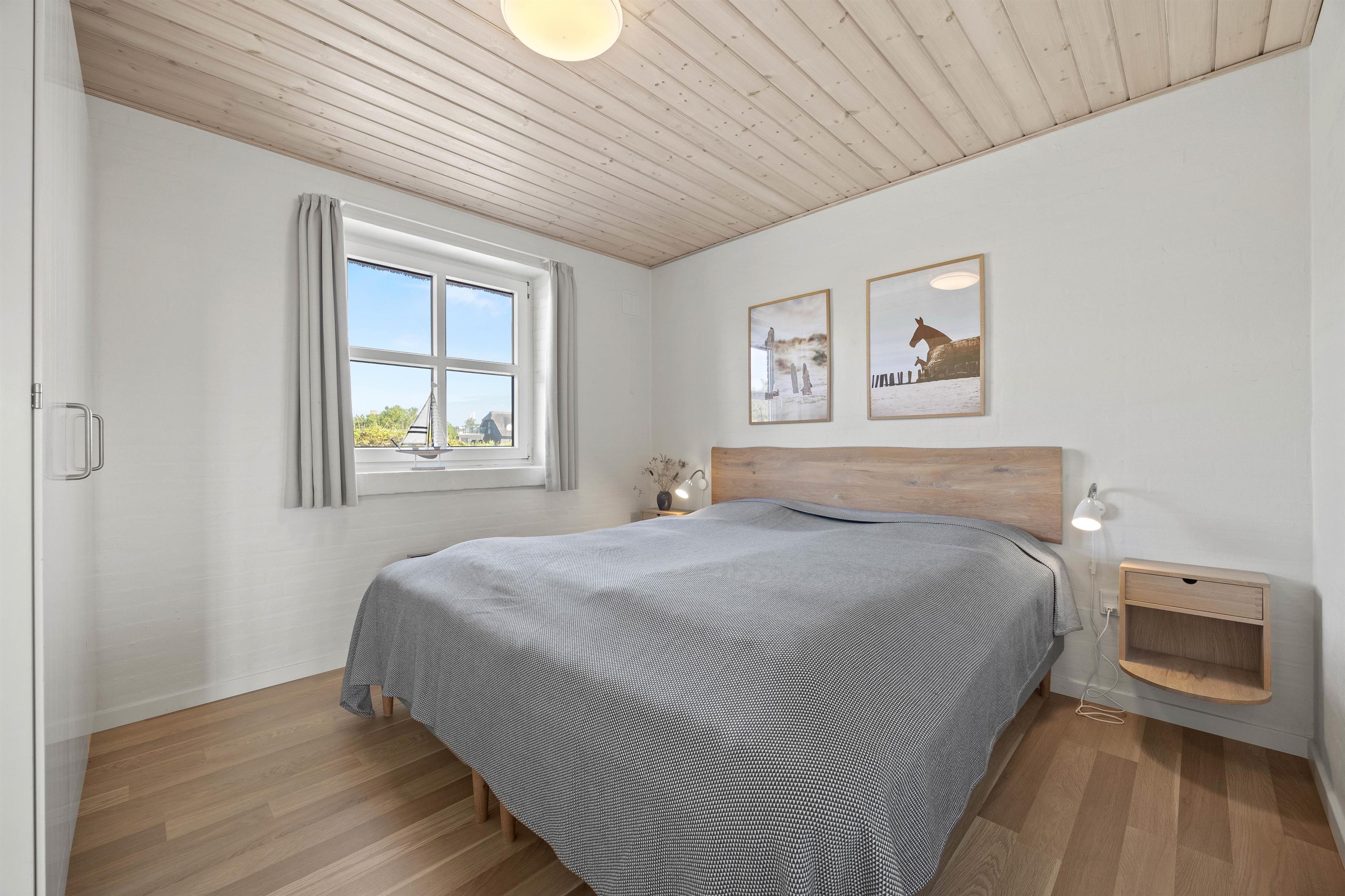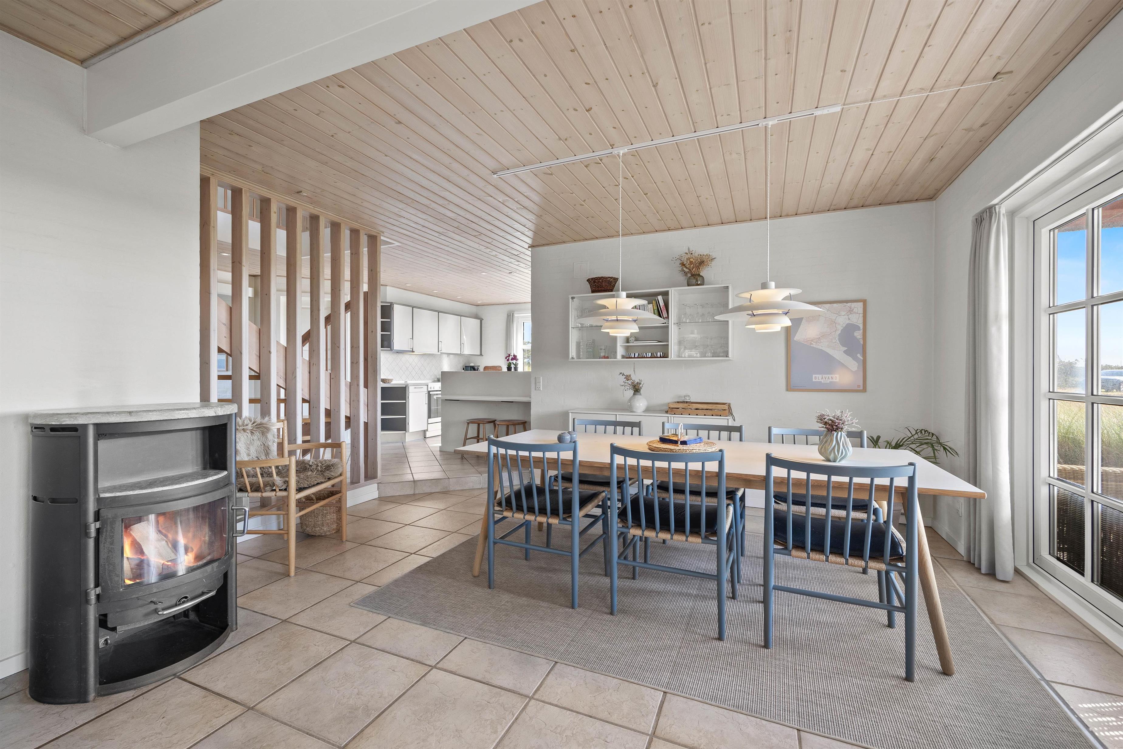 I sommerhuset finder I 3 rummelige soveværelser med komfortable dobbeltsenge, rigelig skabsplads og mørklægningsgardiner. Køkkenet er veludstyret og så stort, at alle kan hjælpes om madlavningen. Spisestuen er udstyret med brændeovn, og der er udsigt ud over den store grund med både sandkasse og gynge til børnene.