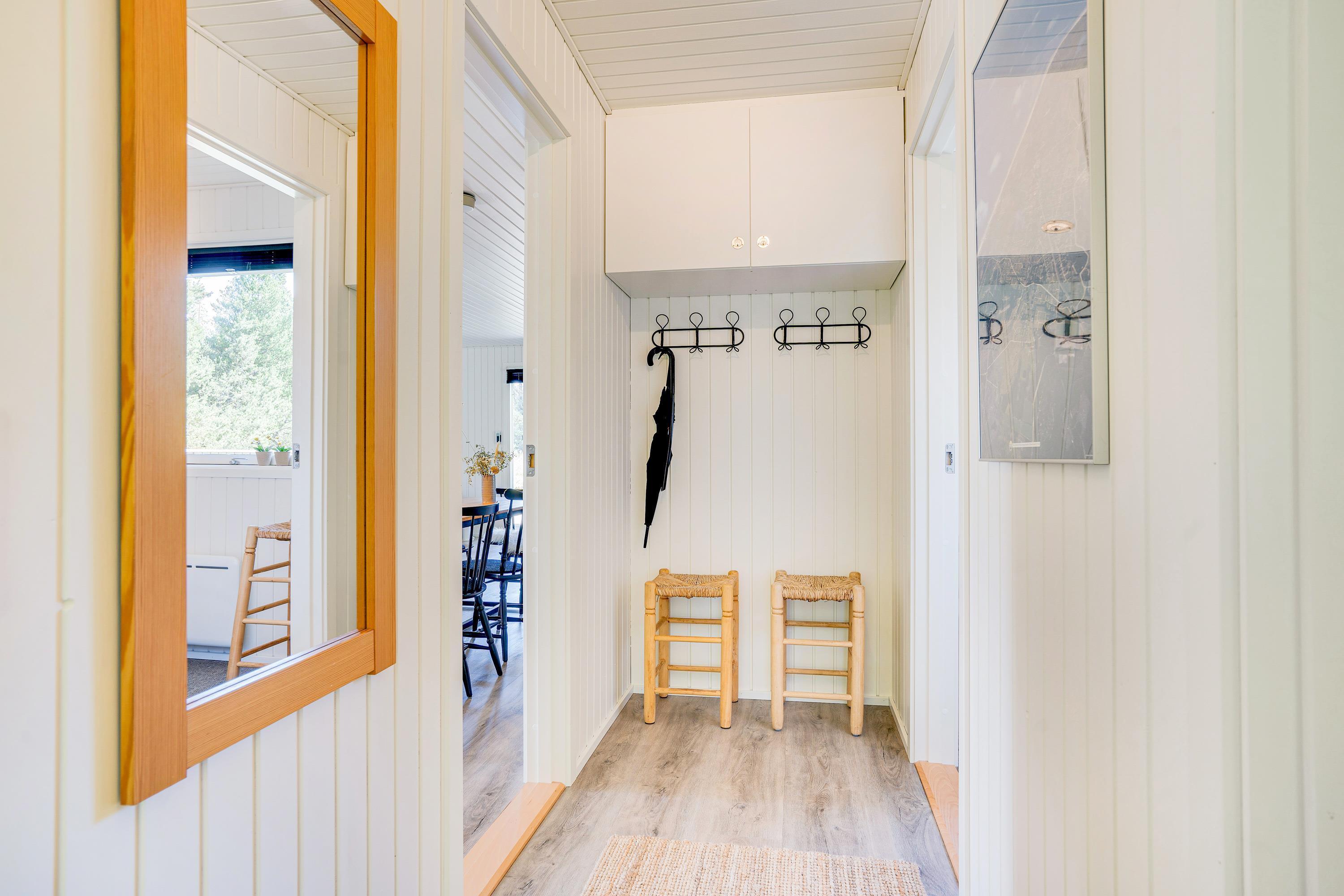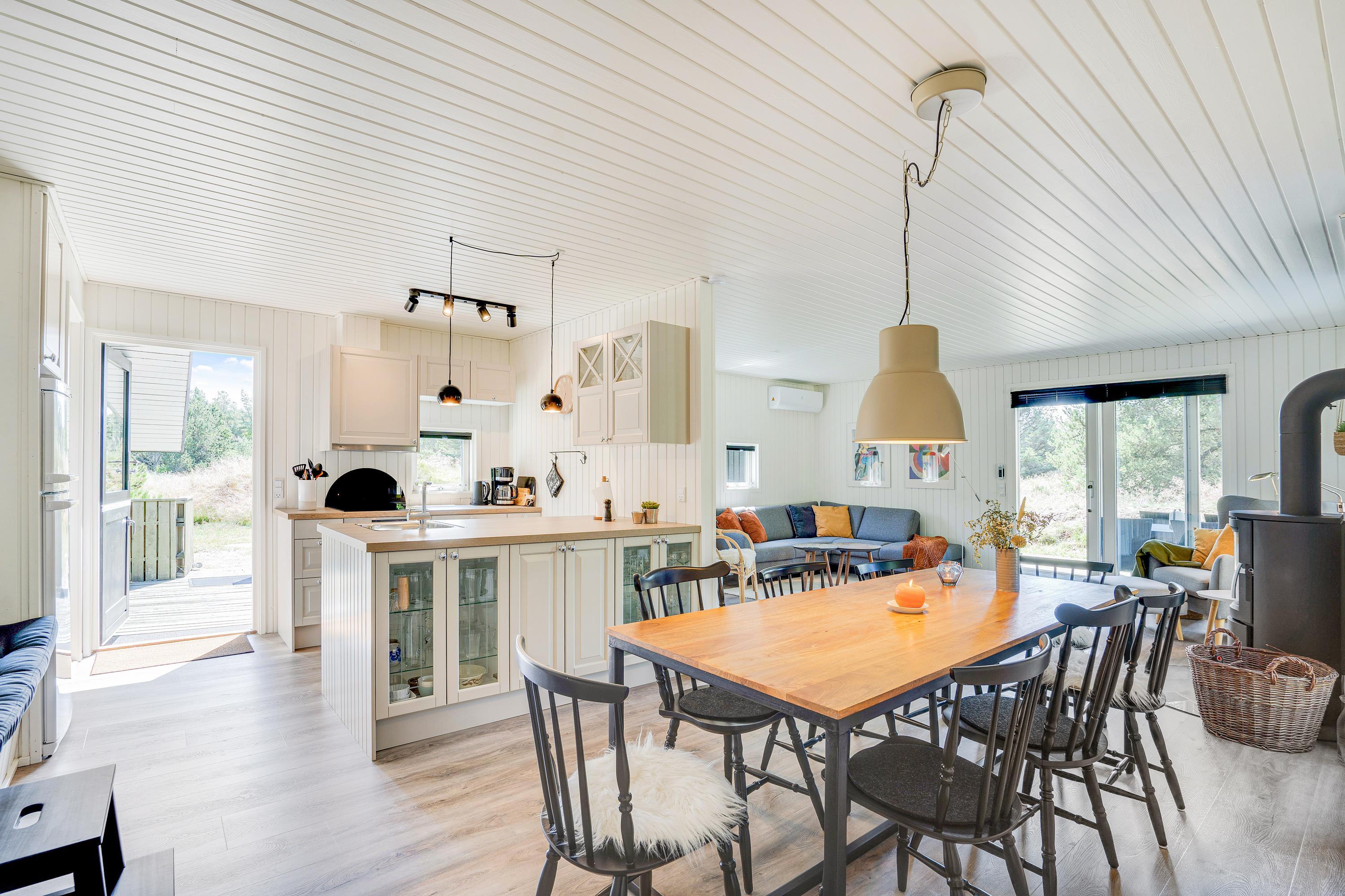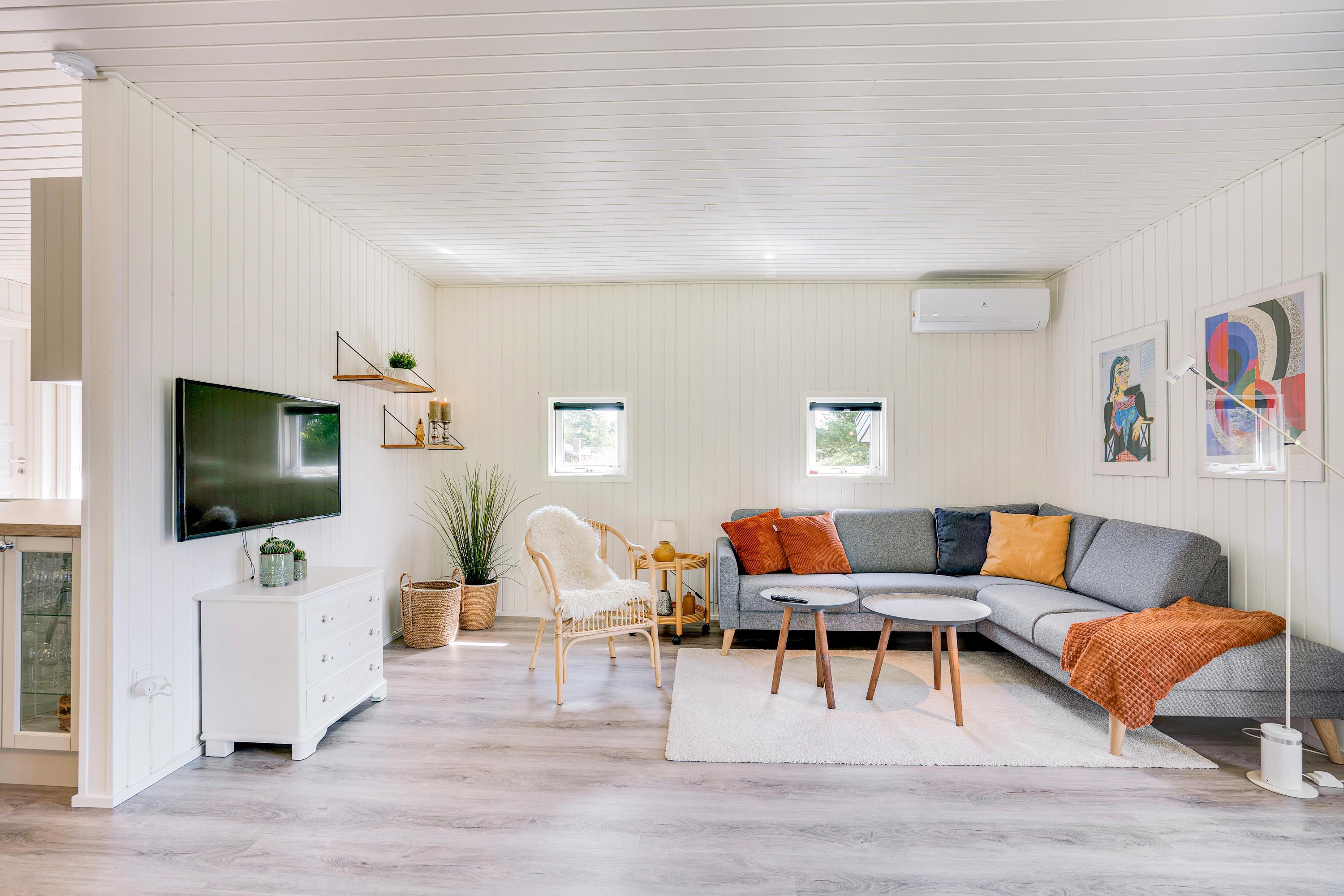 Det klassiske træsommerhus byder på skønne detaljer både inde og ude. Rummene er hyggeligt indrettet med lyse farver og der er tænkt på komforten fx med en lækker hjørnesofa og en lænestol med læselys ved brændeovnen - det perfekte sted en et par times afslapning med en god bog eller en varm kop te.