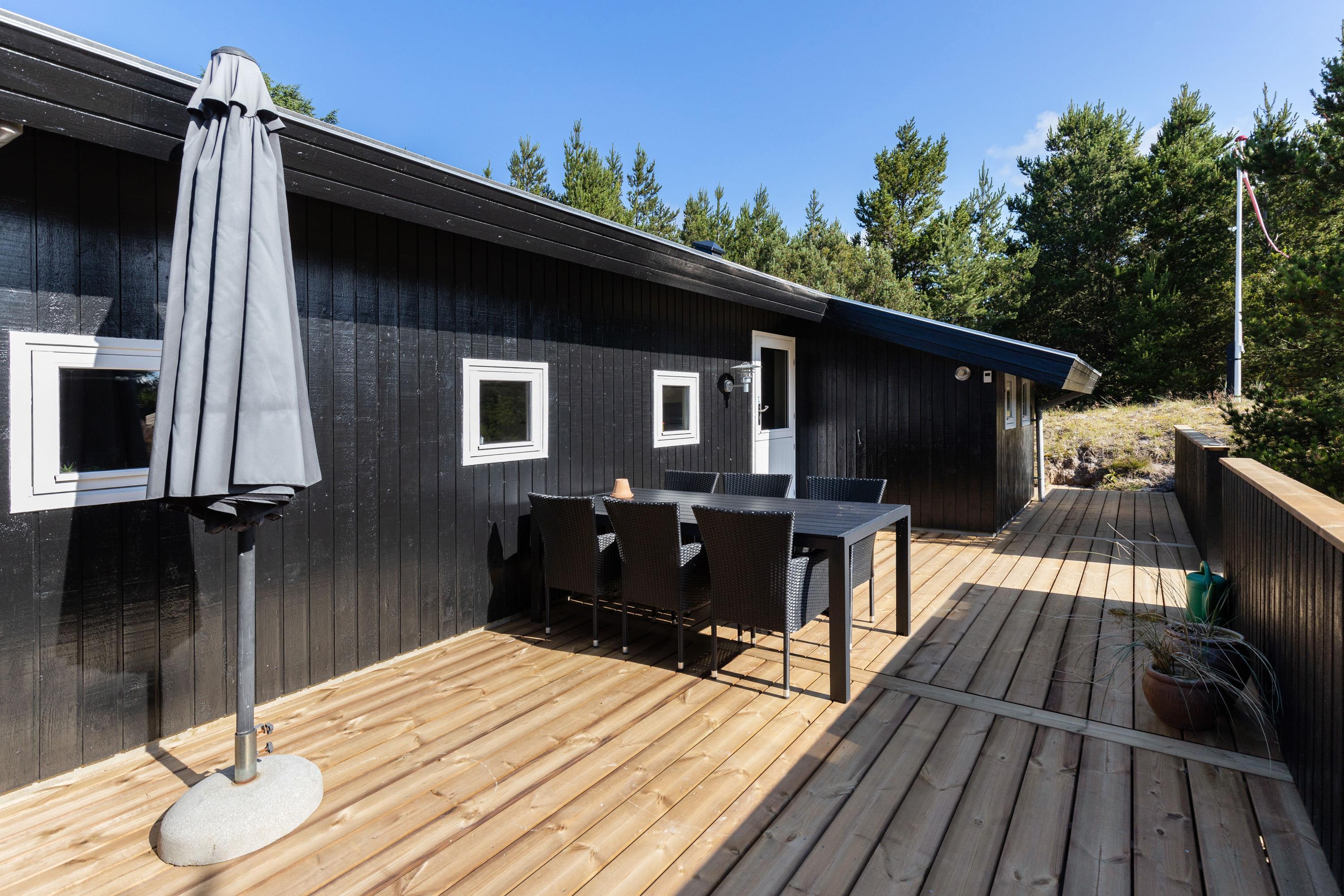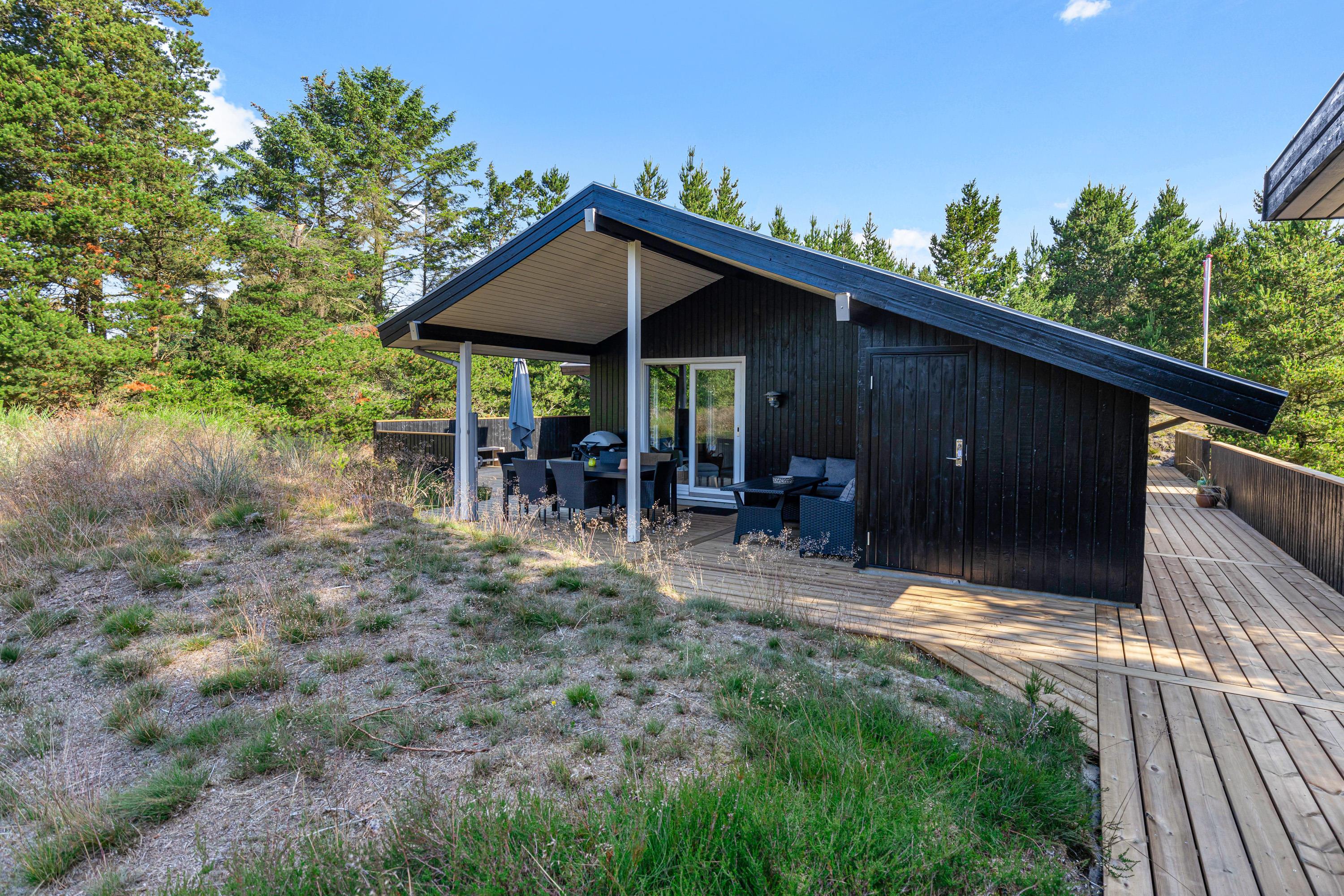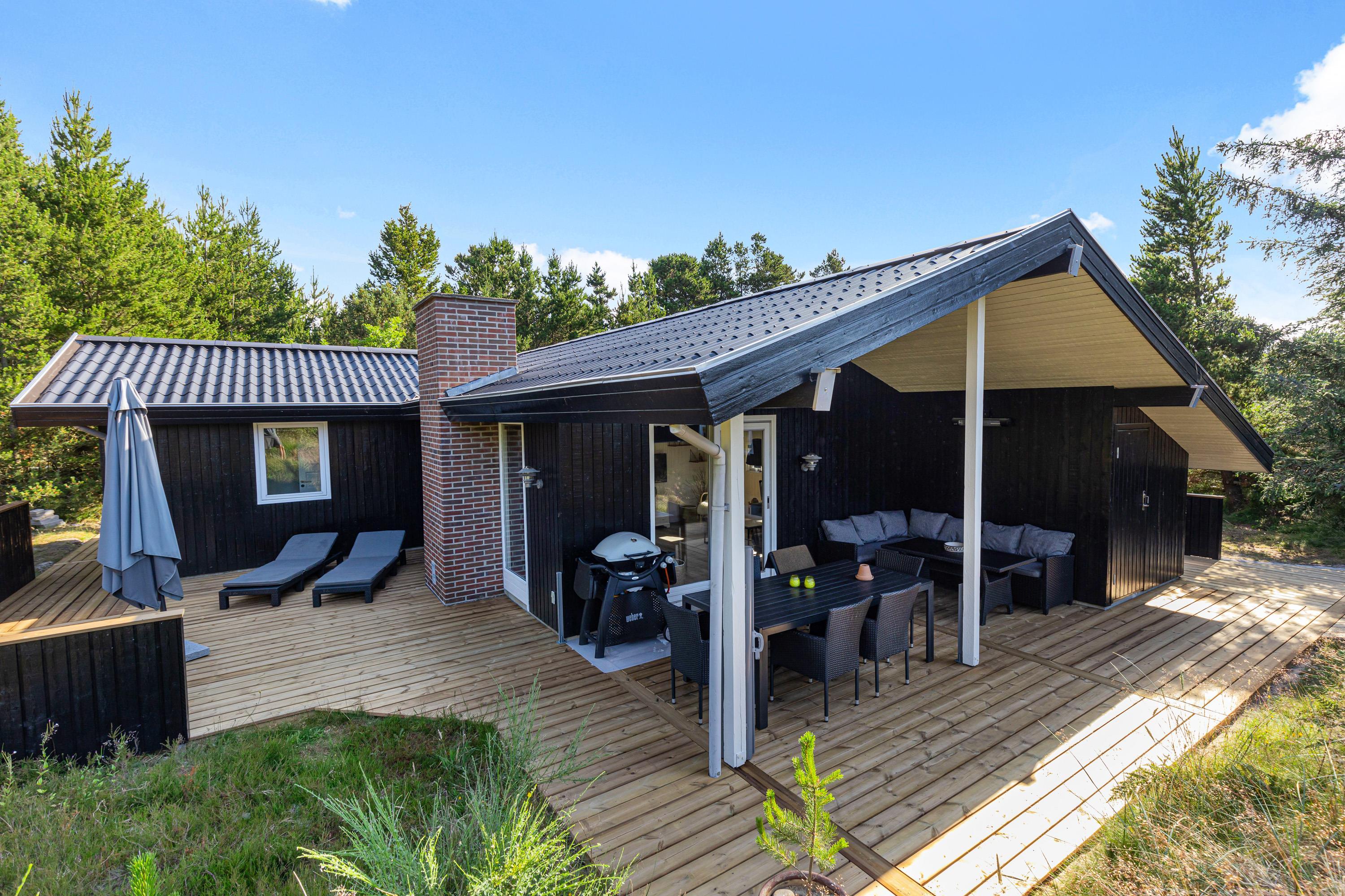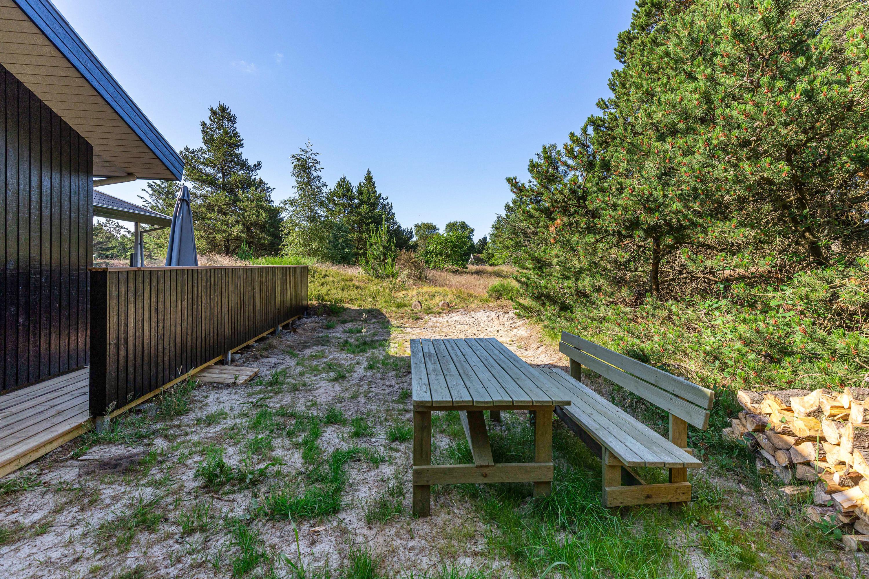 Rundt om feriehuset finder I flere skønne hyggekroge, hvor I kan slå jer ned og nyde udelivet og naturen i fulde drag. Mens børnene går på opdagelse og leger på den spændende naturgrund, kan du tage plads på en liggestol og lukke øjnene et øjeblik, mens du lytter til fuglekvidder og trækker de friske luft og træernes duft helt ned i maven.