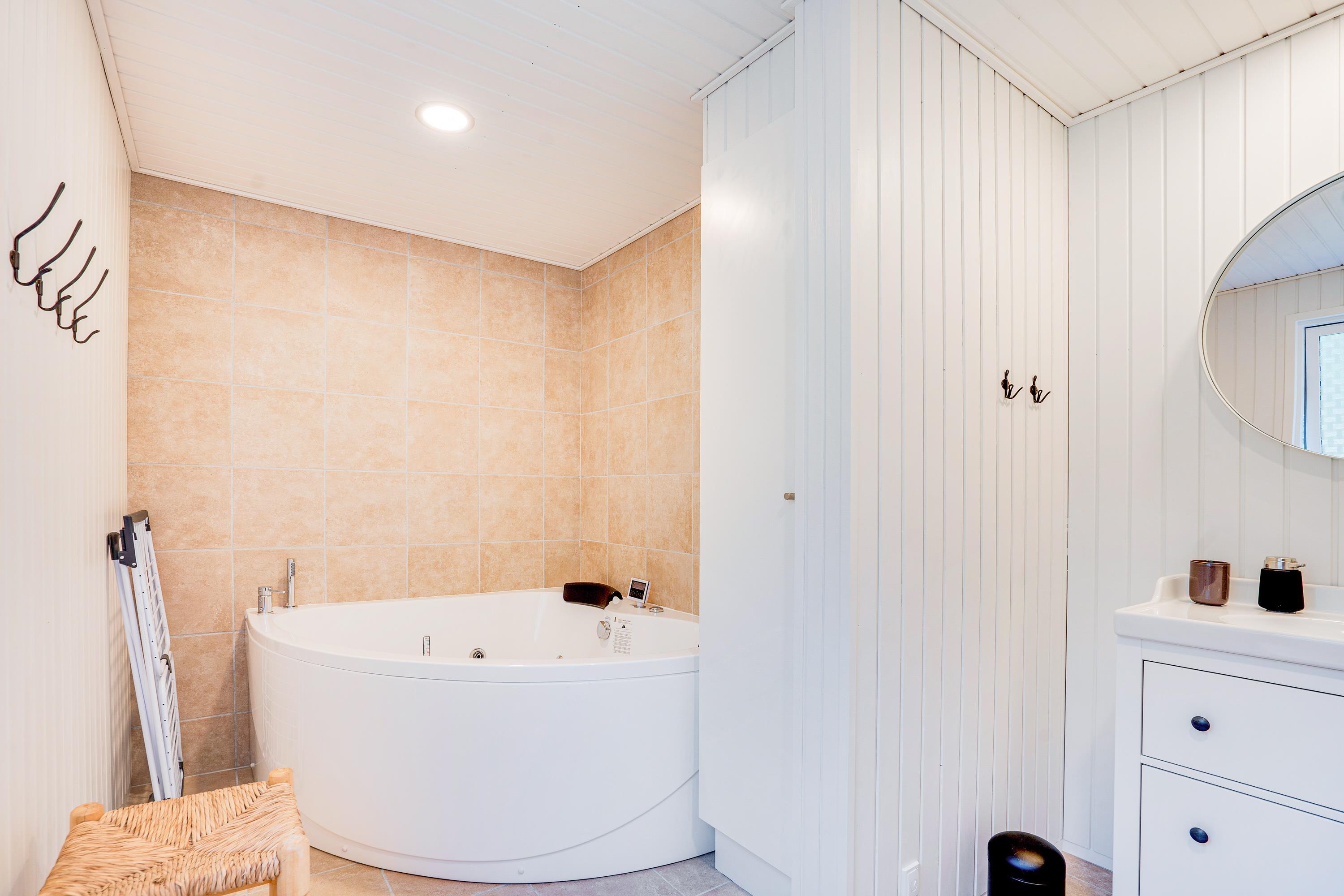 Sommerhuset byder i øvrigt også på en moderne og energibesparende varmepumpe, der foruden at skåne feriebudgettet sørger for et godt og behageligt indeklima året rundt.