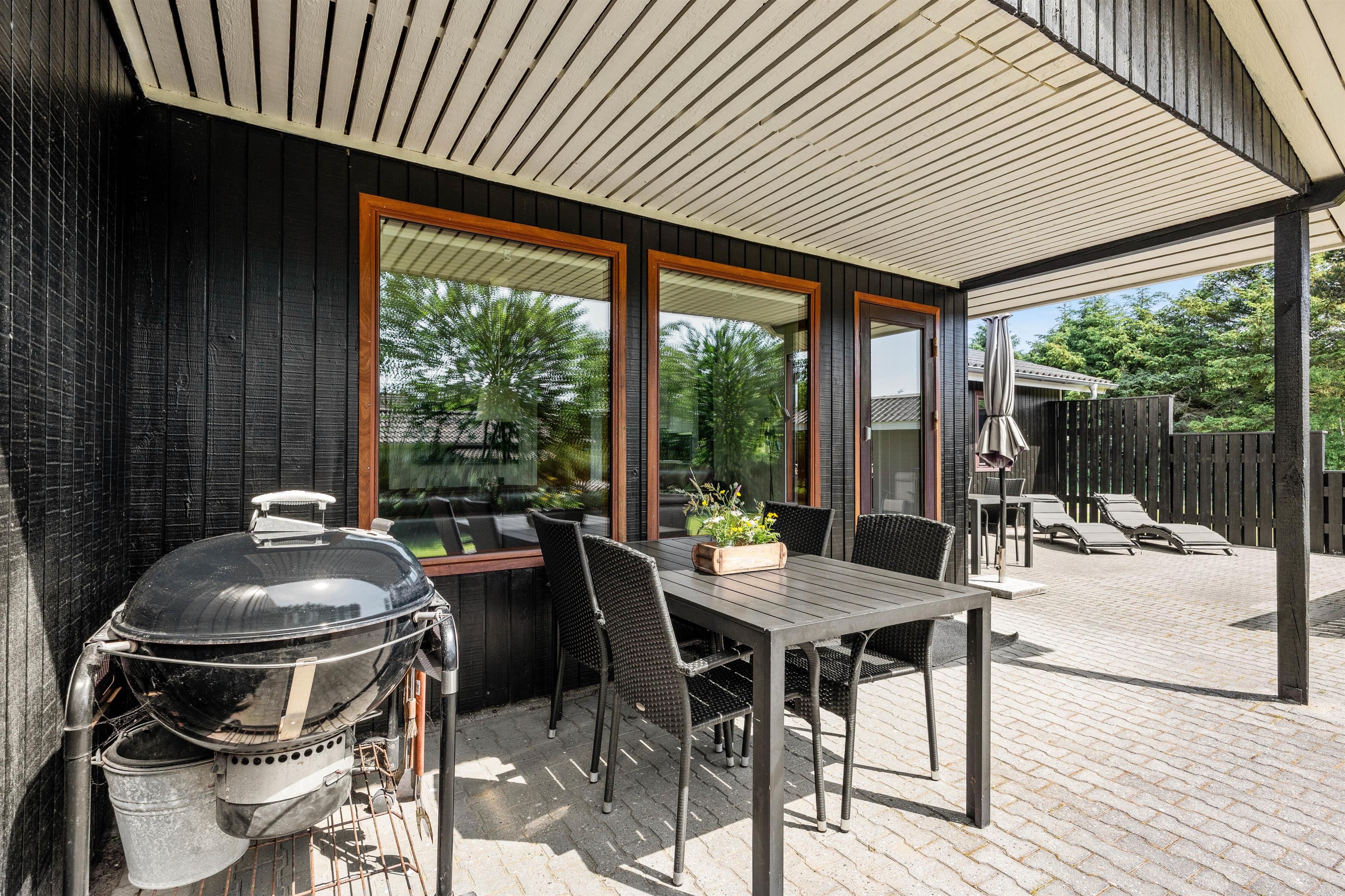 Der er en fin balance mellem inden- og udendørs aktiviteter ved dette sommerhus. I kan slappe af på den åbne eller overdækkede terrasse i komfortable havemøbler, mens kulgrillen indbyder til hyggelige madoplevelser, som I kan mødes omkring, når dagen lakker mod enden. Nyd en kold, lokal øl eller et glas køligt vin over god mad og planlæg næste dags aktiviteter.
