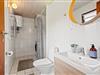 Badeværelset er praktisk indrettet med både vaskemaskine og tørretumbler til vask og tørring af feriegarderoben. Her kan I friske jer op med et brusebad og skylle sandet af kroppen eller blive klar til en ny dags oplevelser.