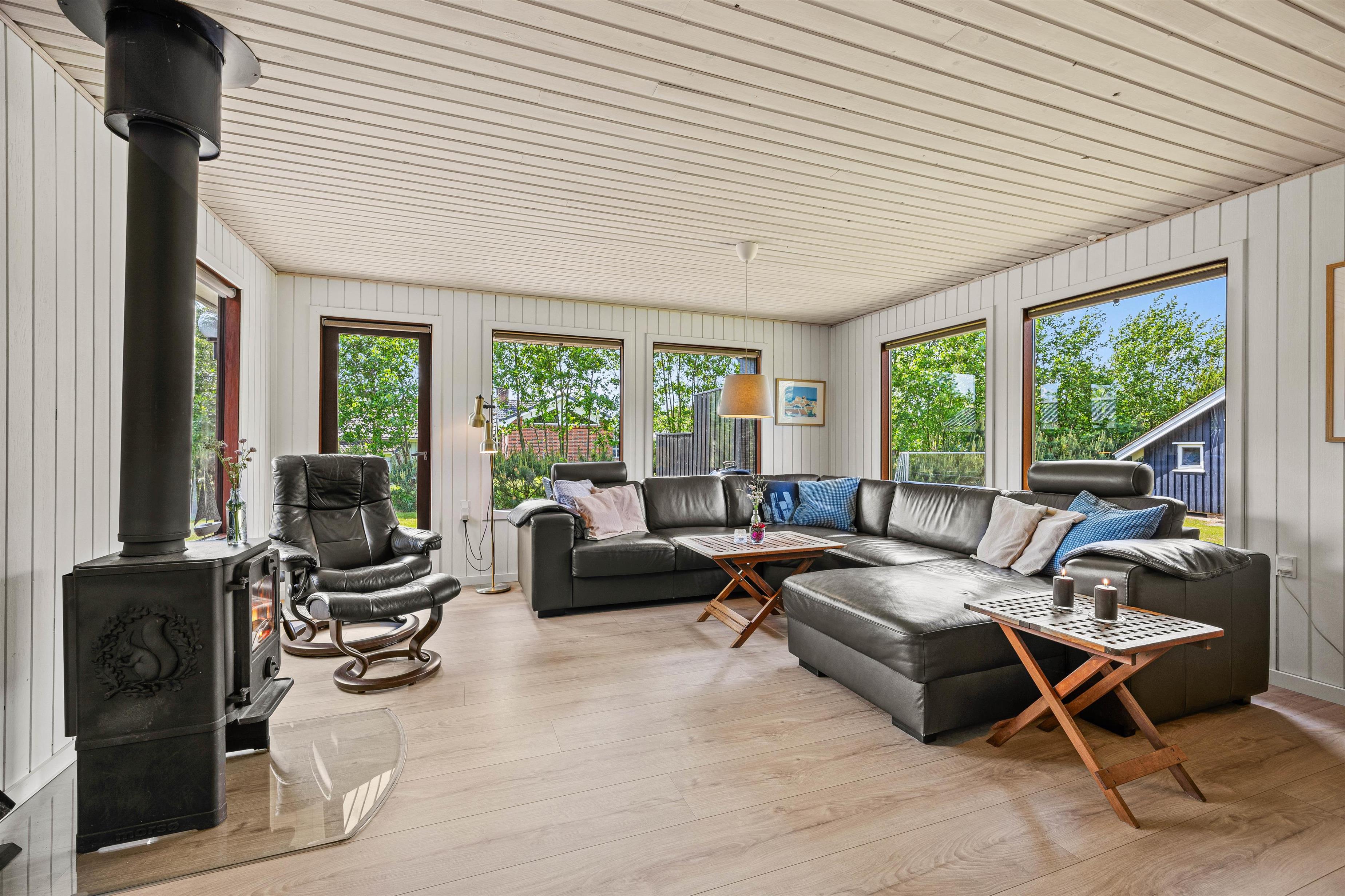 Husets centrale samlingspunkt er uden tvivl foran brændeovnen i stuen, der skaber en varm og hyggelig atmosfære på kolde dage, og med varmepumpen sikres det perfekte indeklima uanset årstiden, så I altid vil kunne hygge jer i stuen uden at fryse om fødderne. Der er plads til op til seks personer fordelt på et dobbeltværelse og fire enkeltsenge i de tre soveværelser.