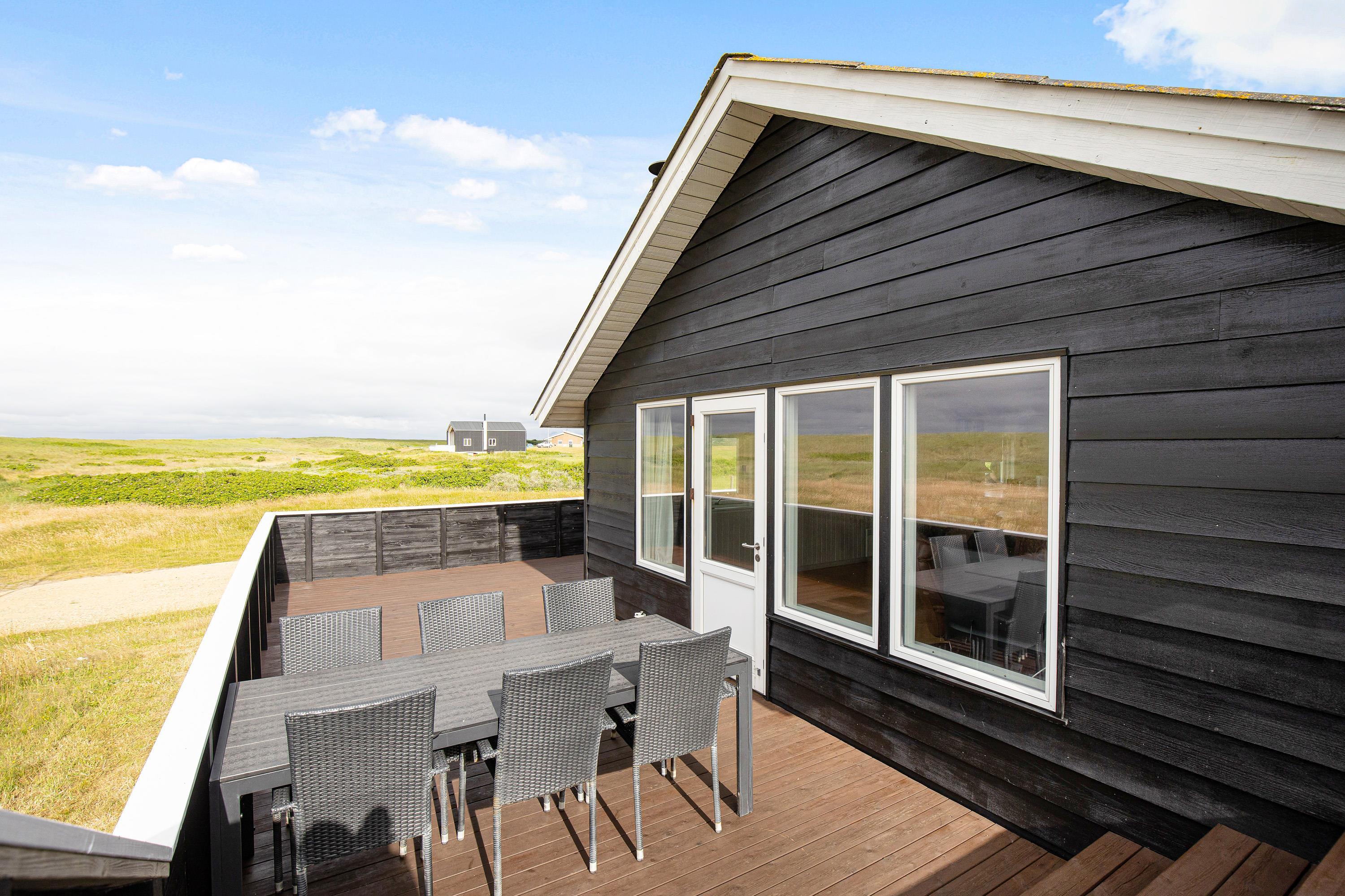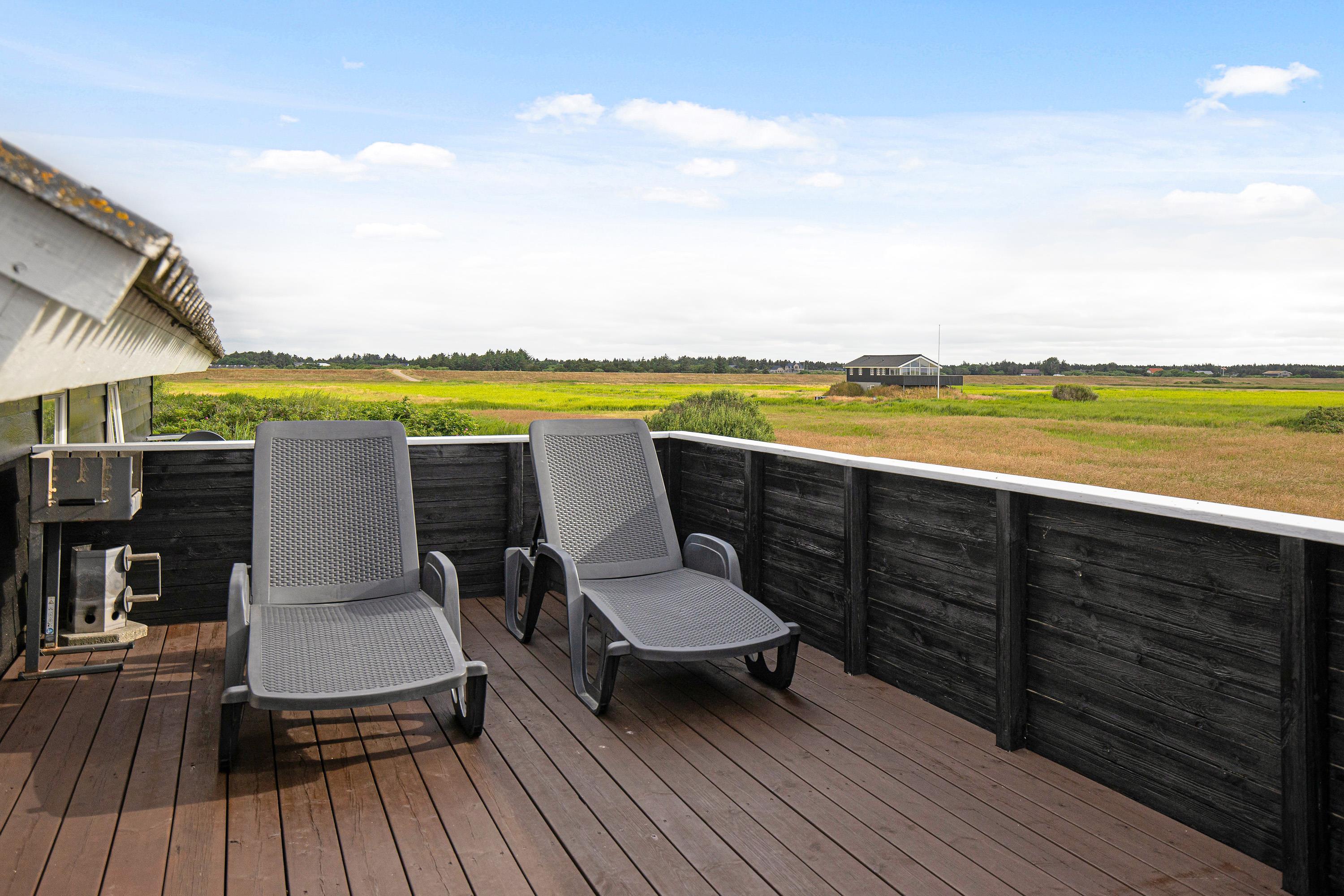 Nyd livet på terrassen, læn jer tilbage i liggestolene og lad omgivelserne virke på jer. Her er højt til himlen, hvor skyerne hurtigt trækker forbi, en drage måske danser eller havfugle trækker forbi. Dertil lyden af lærkernes sang over det smukke klitlandskab, mågernes hæse skrig og bølgerne, der bryder på stranden.